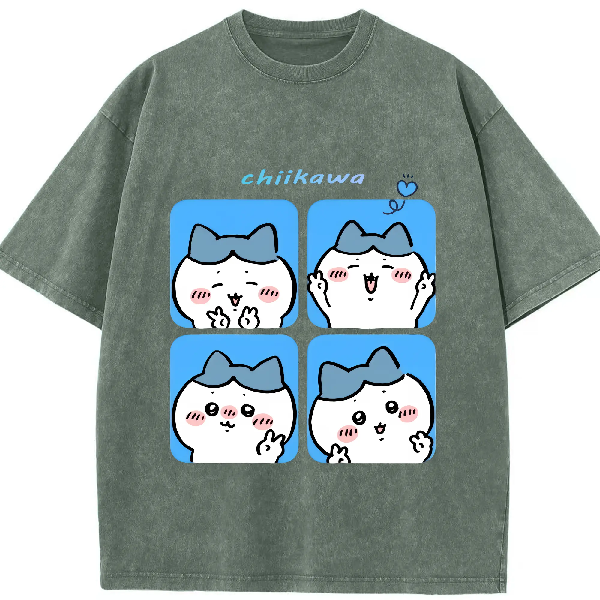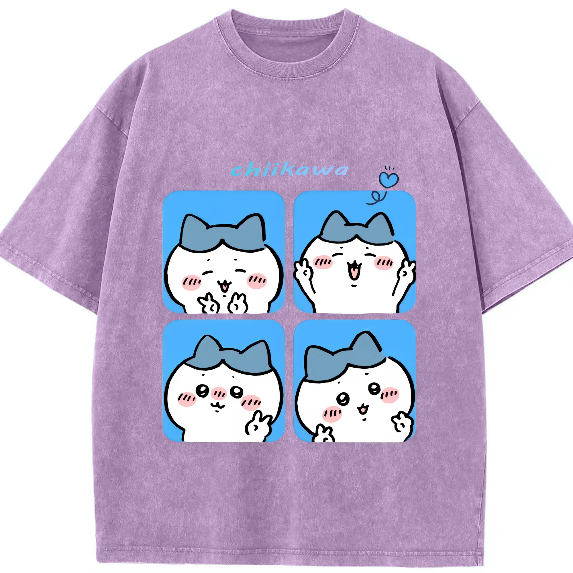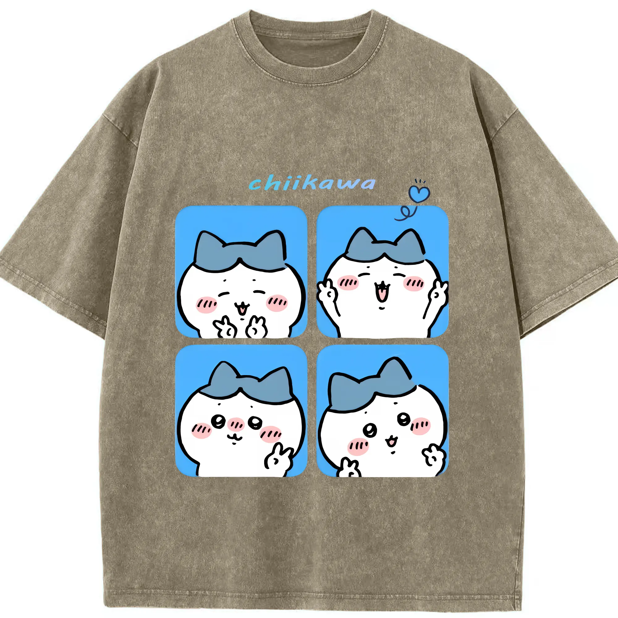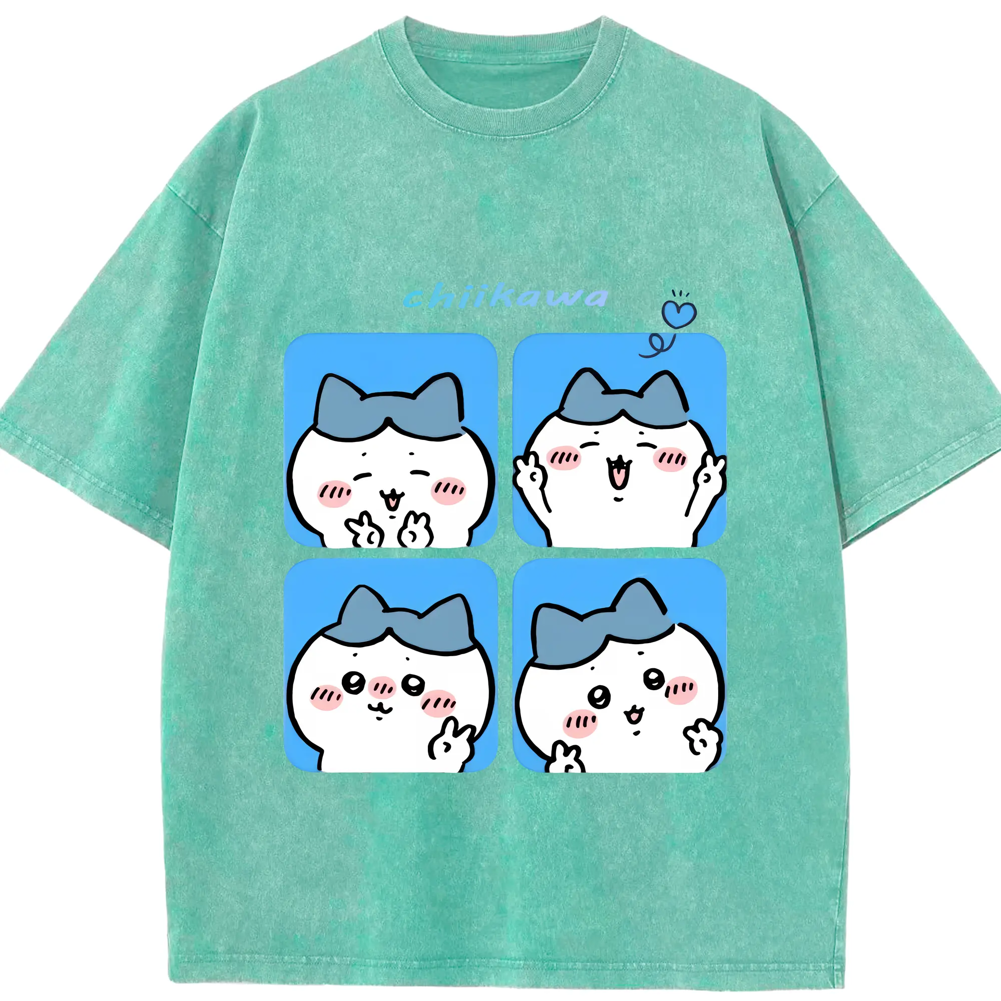 ちい が わ グッズ ハチワレ - 綿100% ヴィンテージ風 半袖Tシャツ ・ 背面プリント ・ 柔らか肌触り ・ 通気性 快適 ・ スポーツ カジュアル 外出用