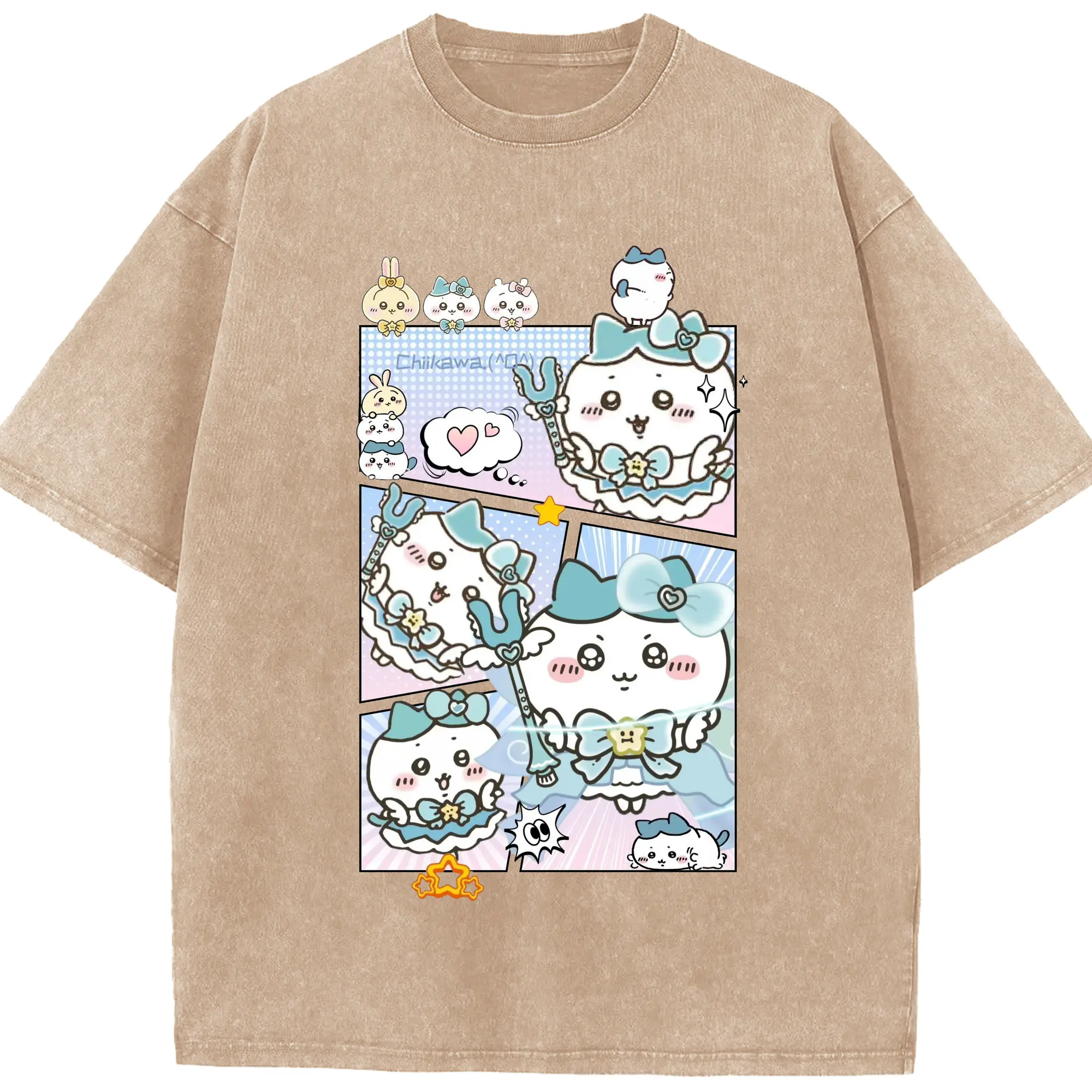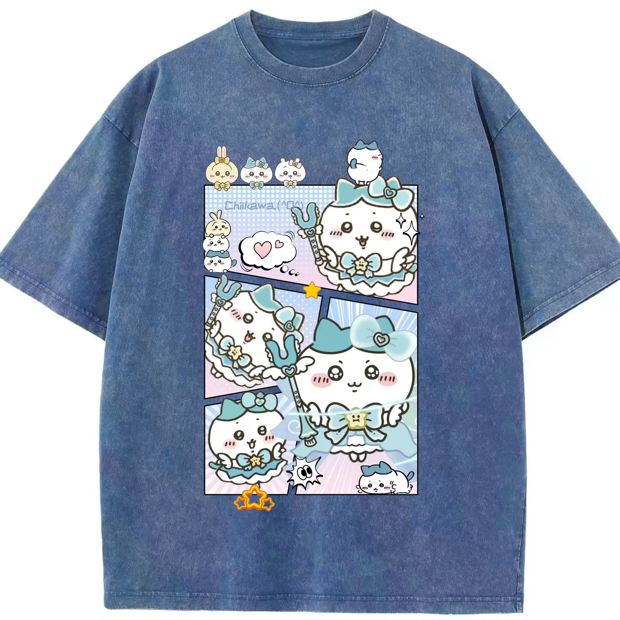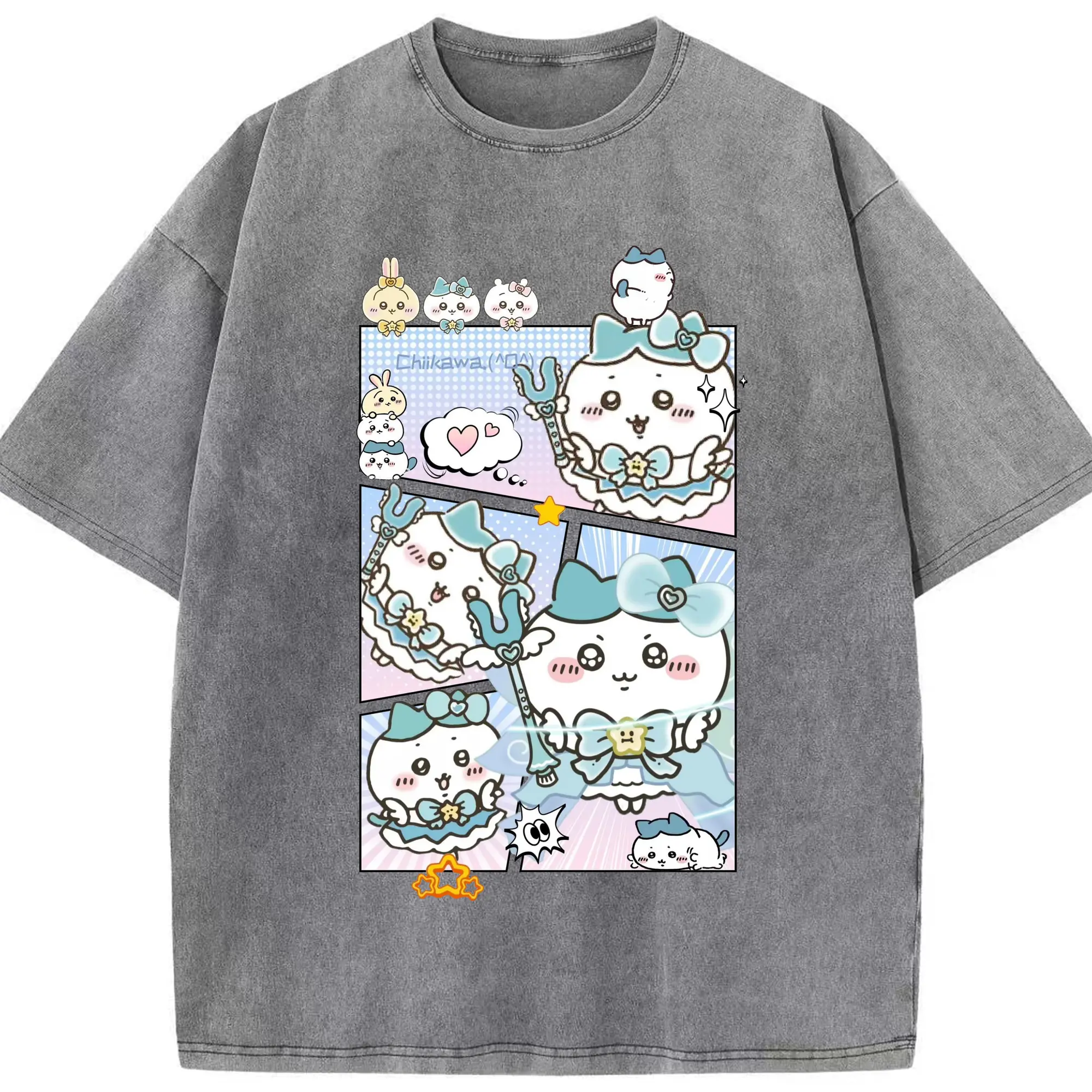 ちい が わ グッズ ハチワレ - 綿100% ヴィンテージ風 半袖Tシャツ ・ 背面プリント ・ 柔らか肌触り ・ 通気性 快適 ・ スポーツ カジュアル 外出用