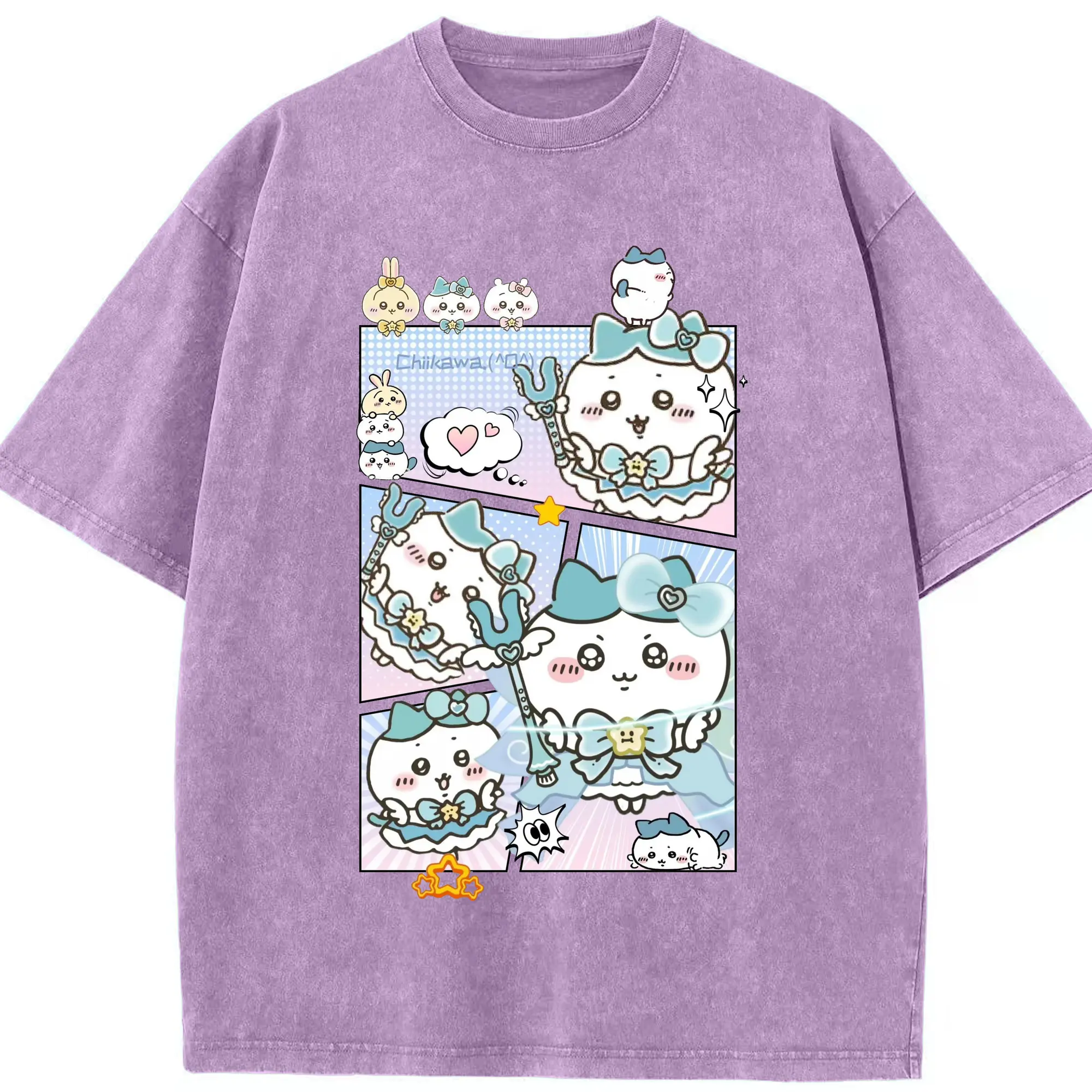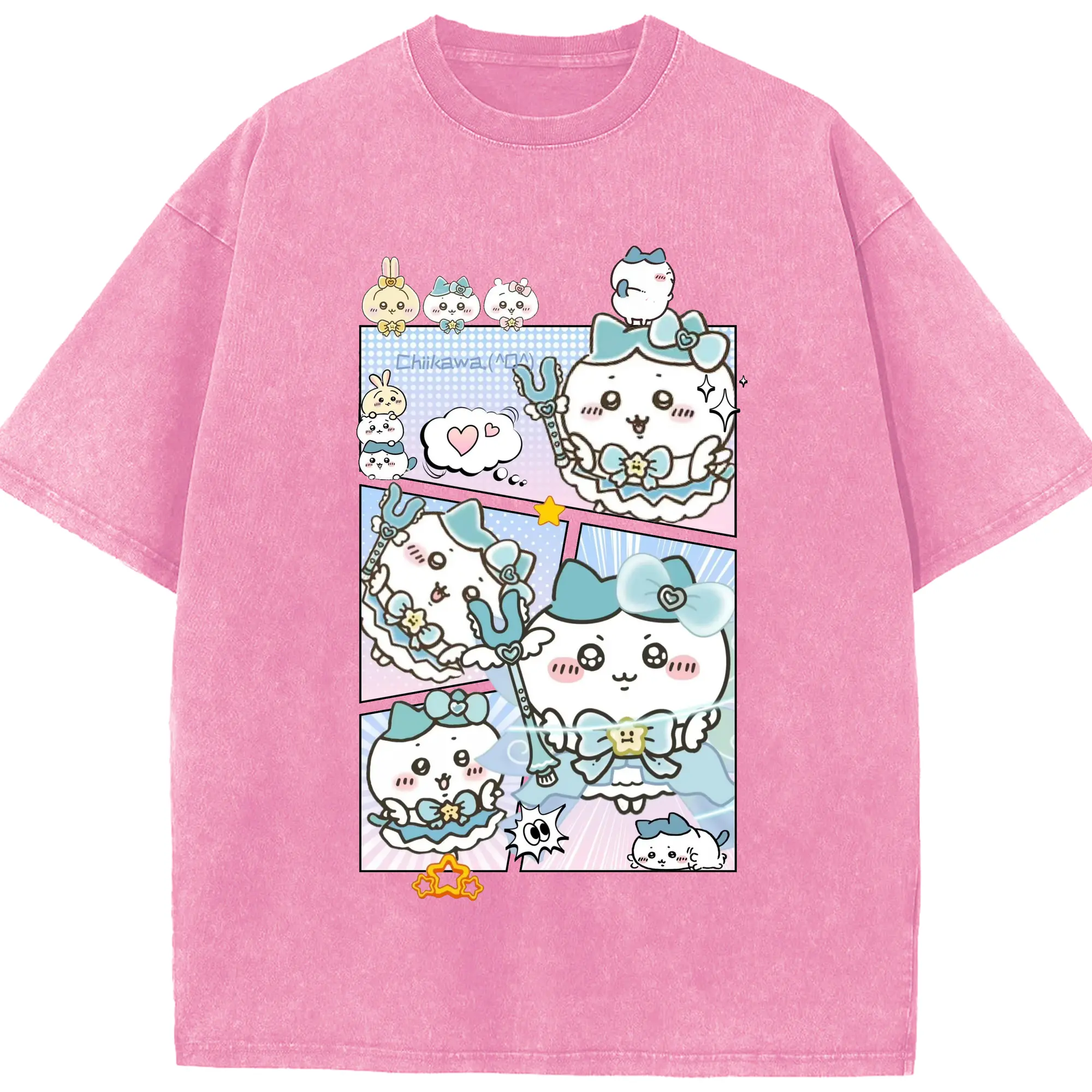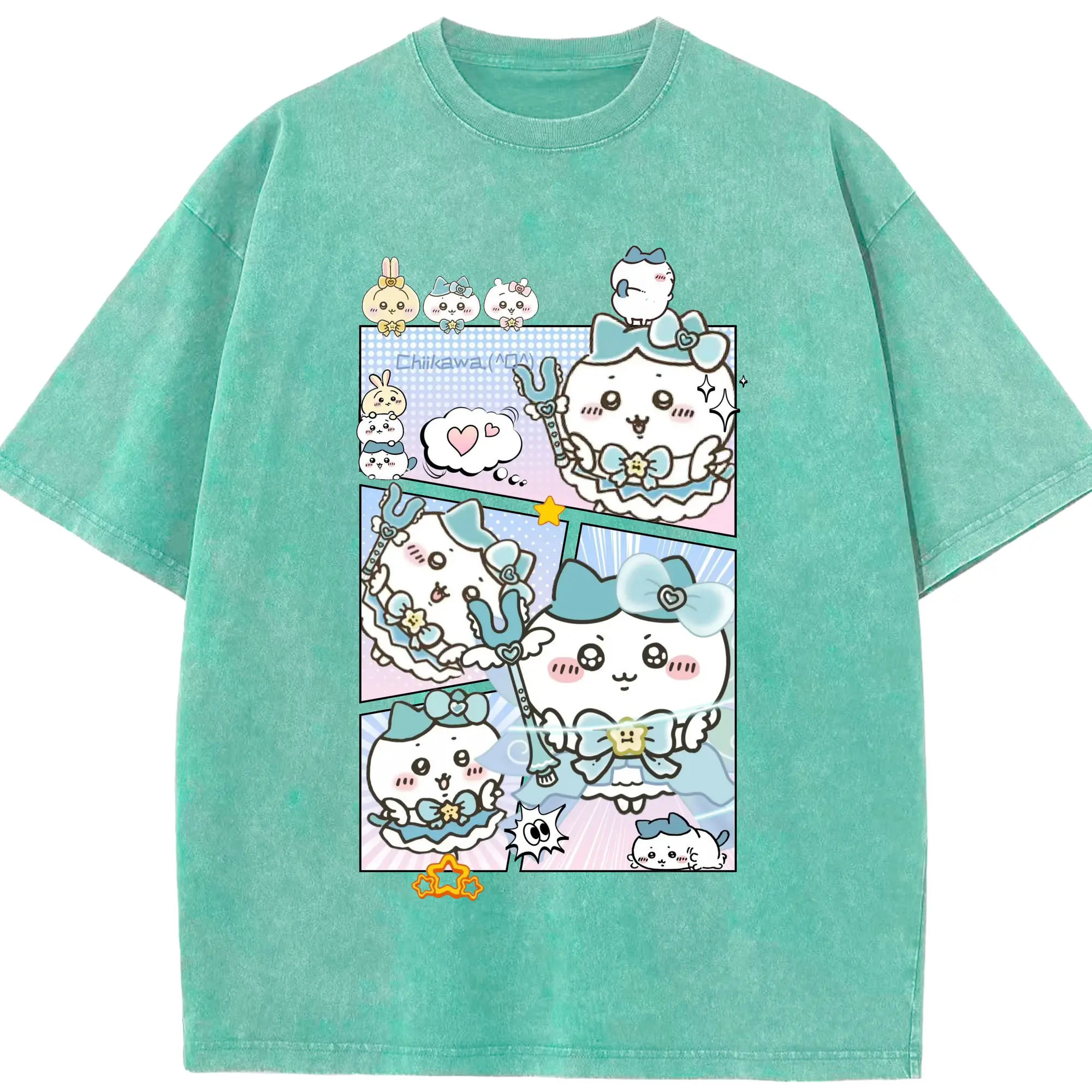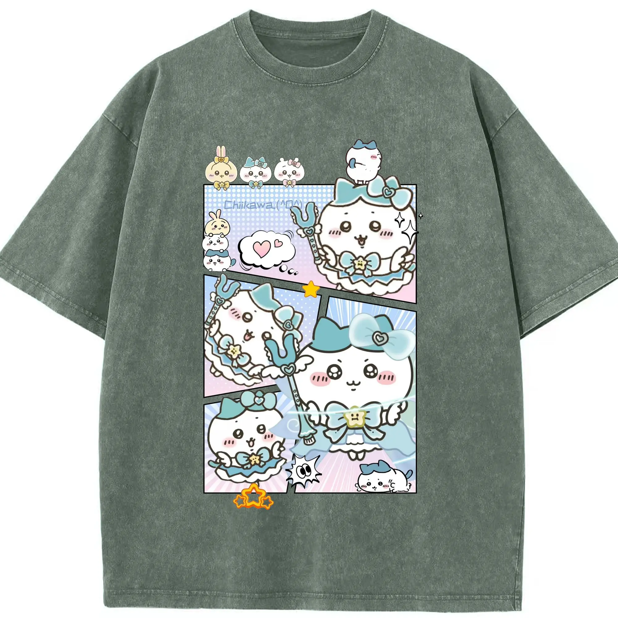 ちい が わ グッズ ハチワレ - 綿100% ヴィンテージ風 半袖Tシャツ ・ 背面プリント ・ 柔らか肌触り ・ 通気性 快適 ・ スポーツ カジュアル 外出用