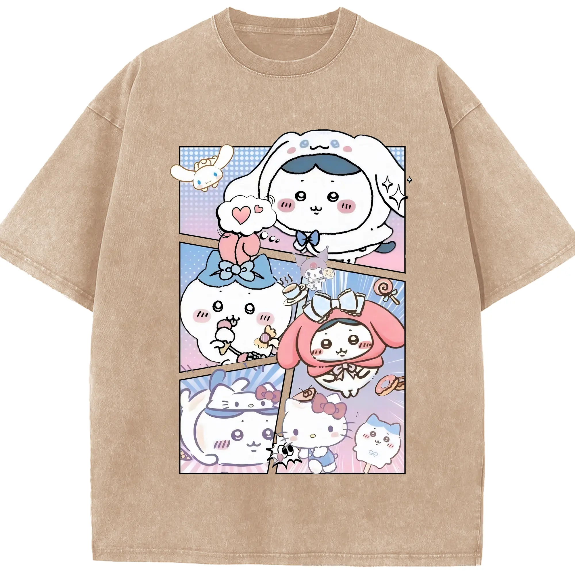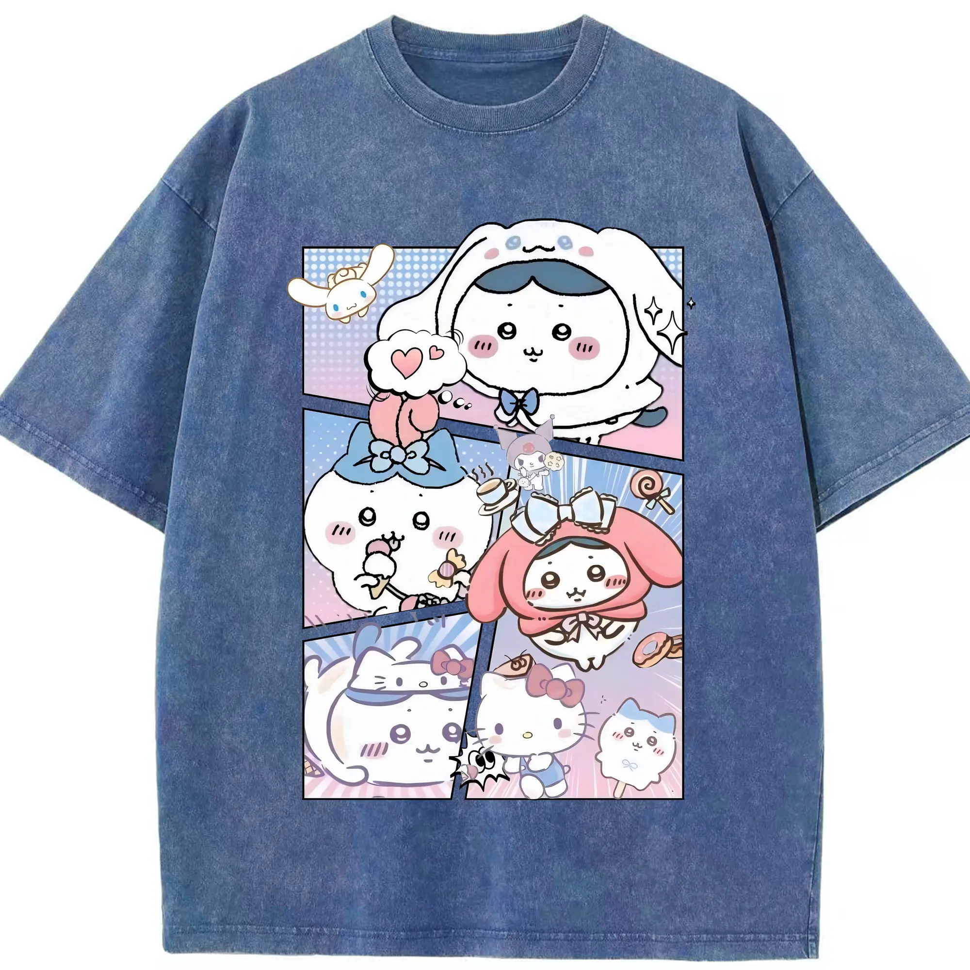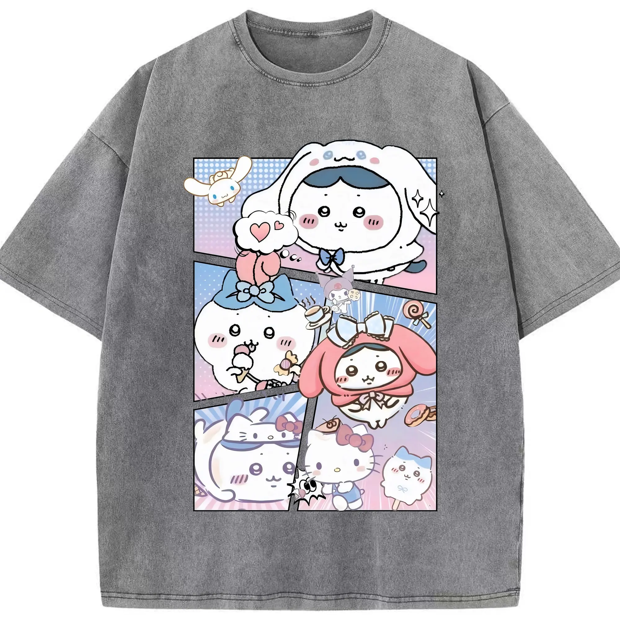 ちい が わ グッズ ハチワレ - 綿100% ヴィンテージ風 半袖Tシャツ ・ 背面プリント ・ 柔らか肌触り ・ 通気性 快適 ・ スポーツ カジュアル 外出用