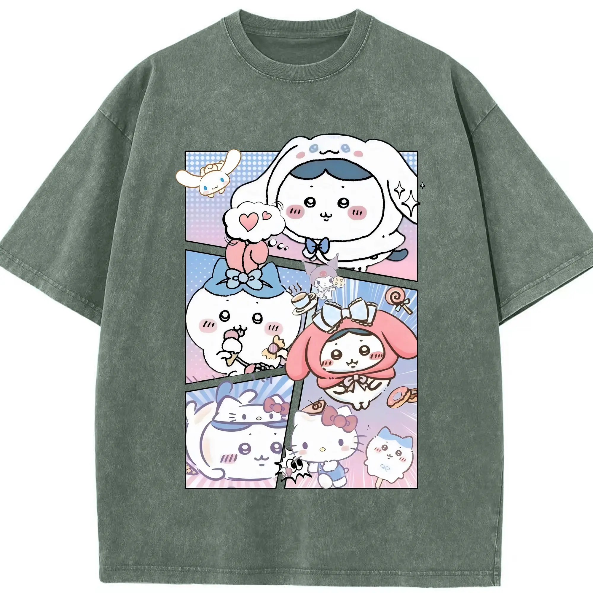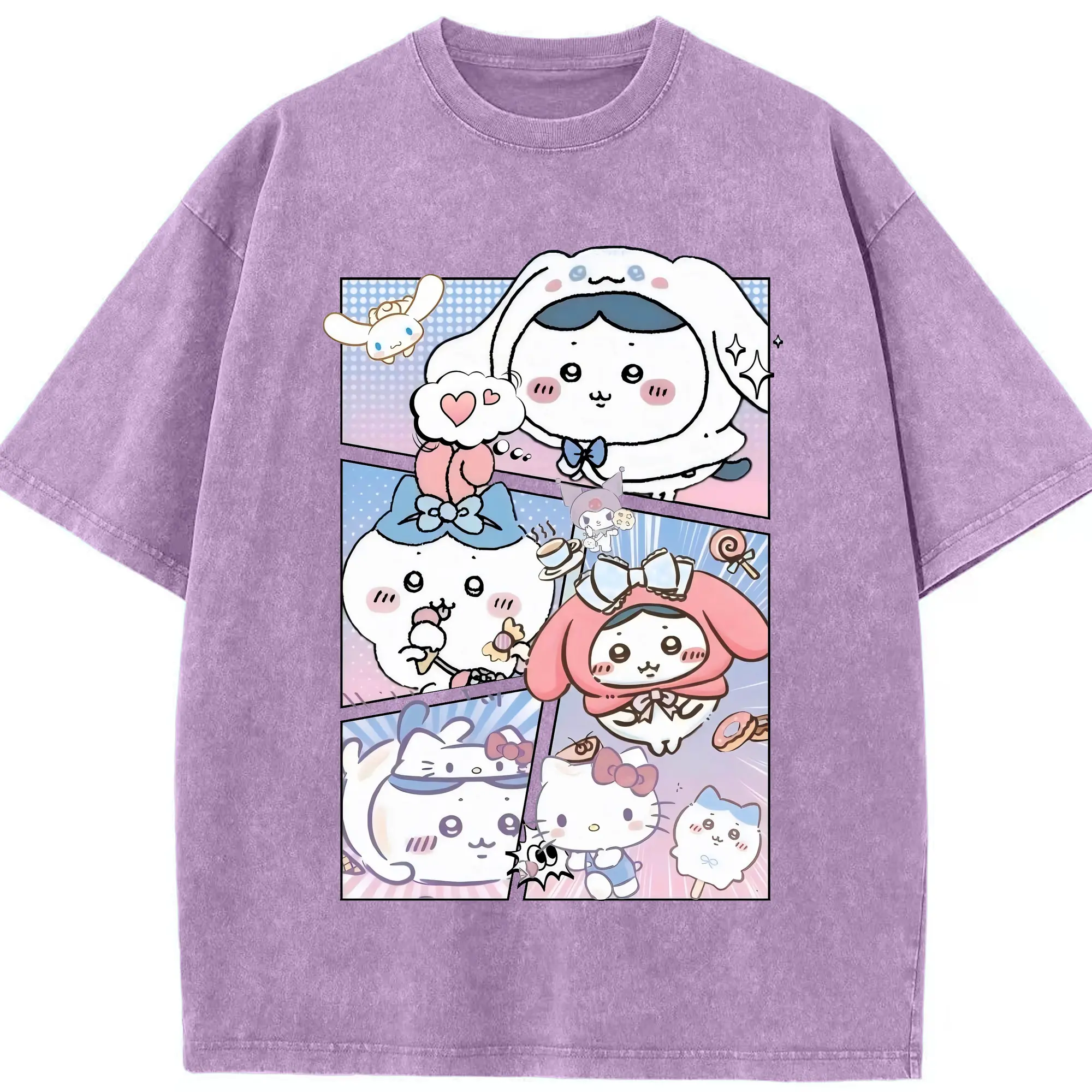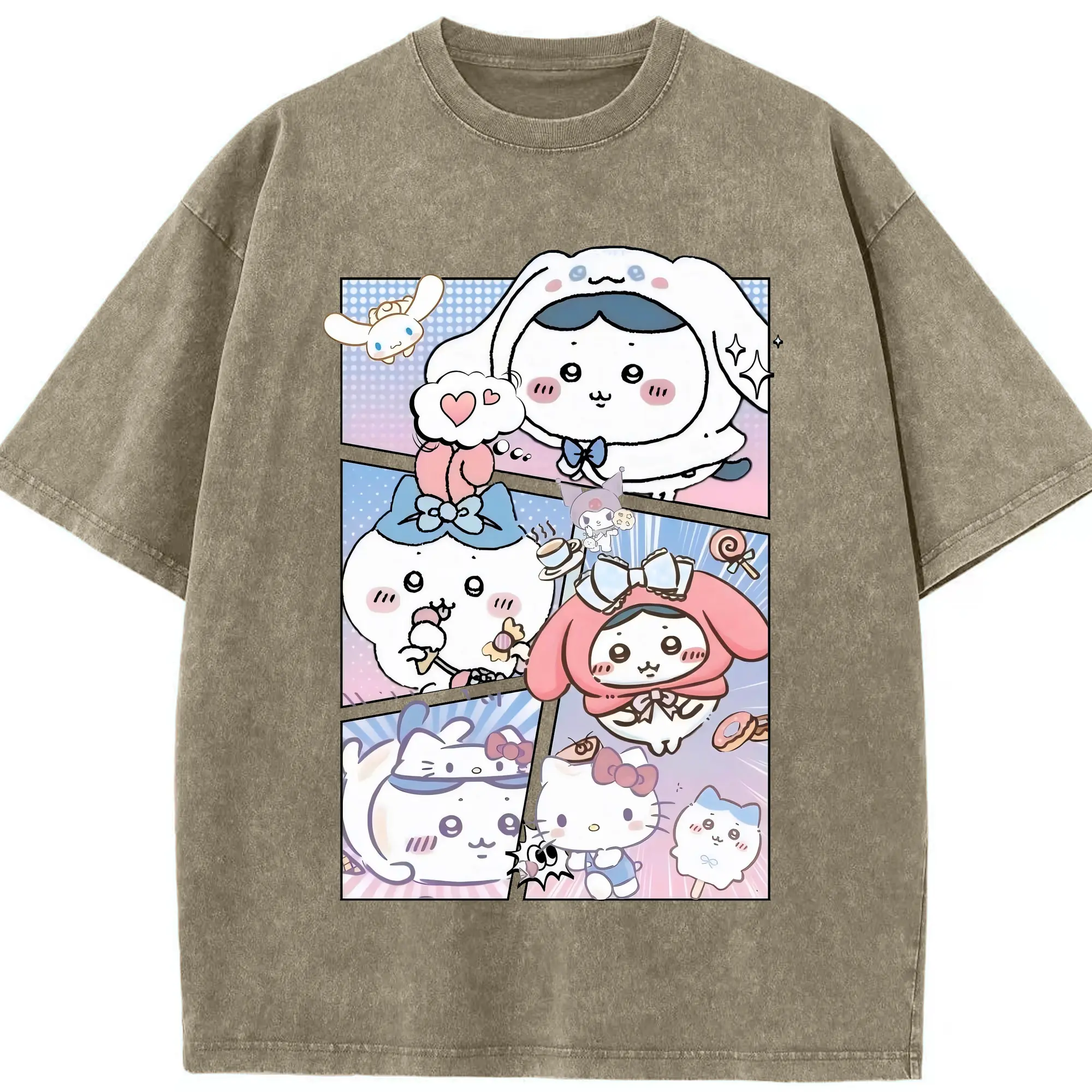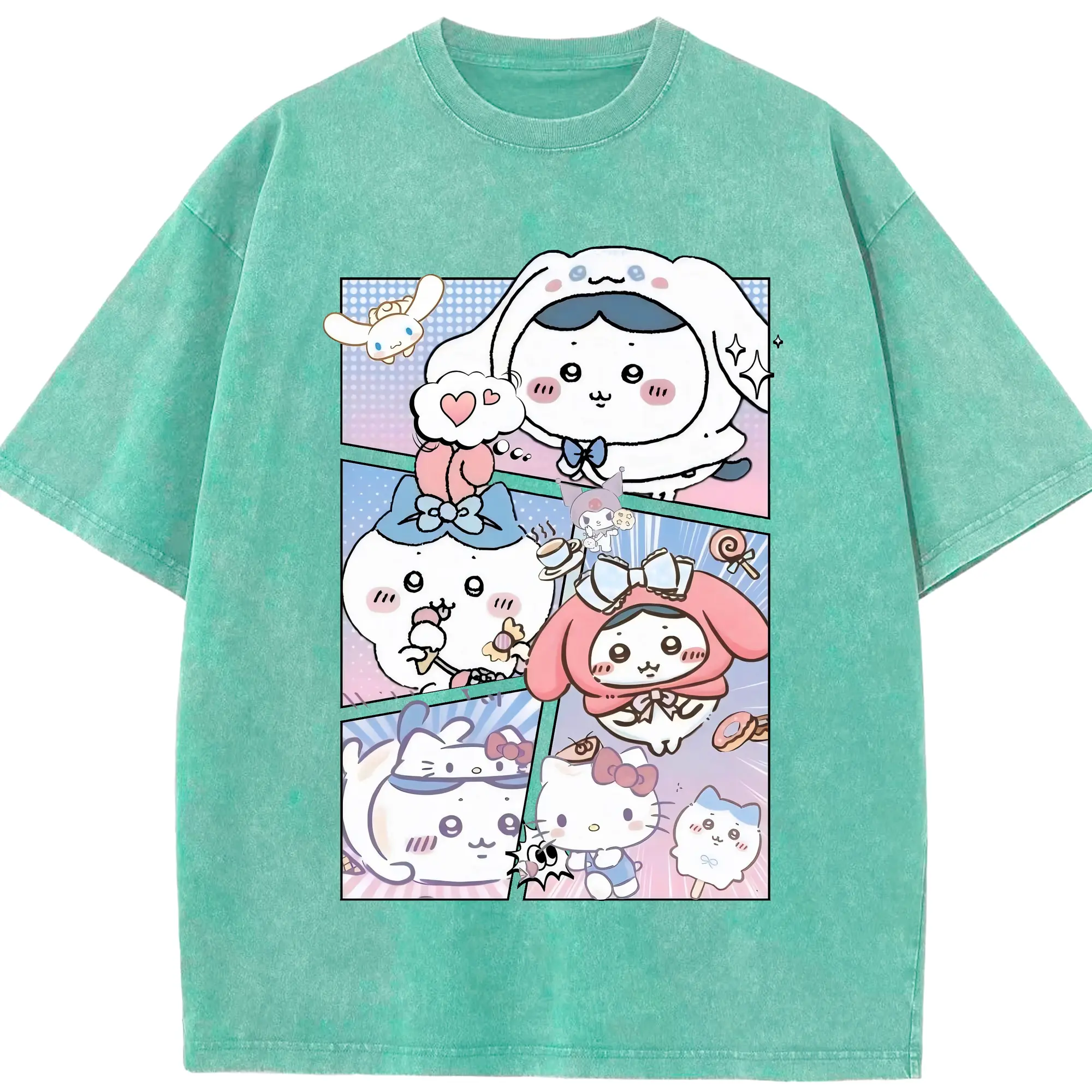 ちい が わ グッズ ハチワレ - 綿100% ヴィンテージ風 半袖Tシャツ ・ 背面プリント ・ 柔らか肌触り ・ 通気性 快適 ・ スポーツ カジュアル 外出用