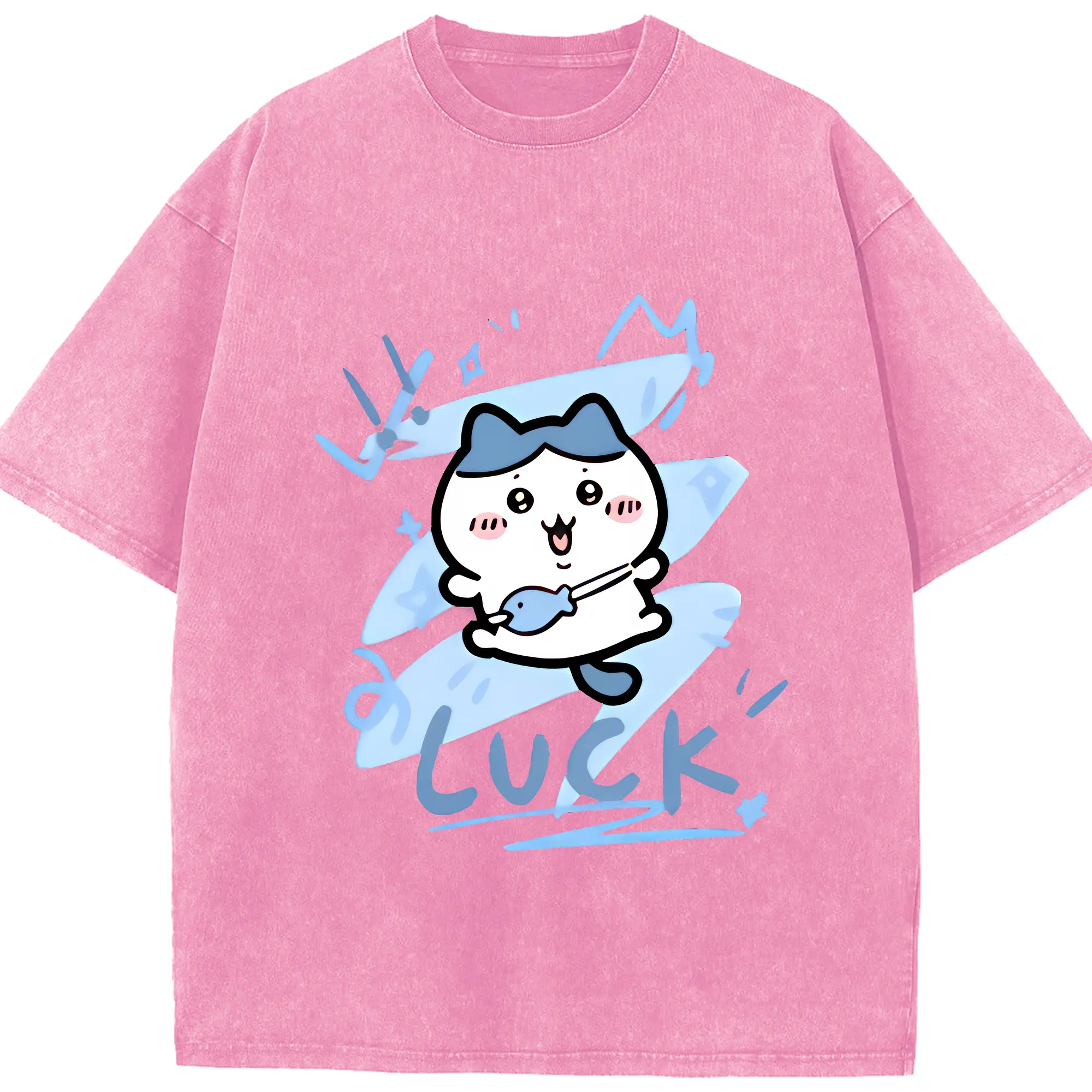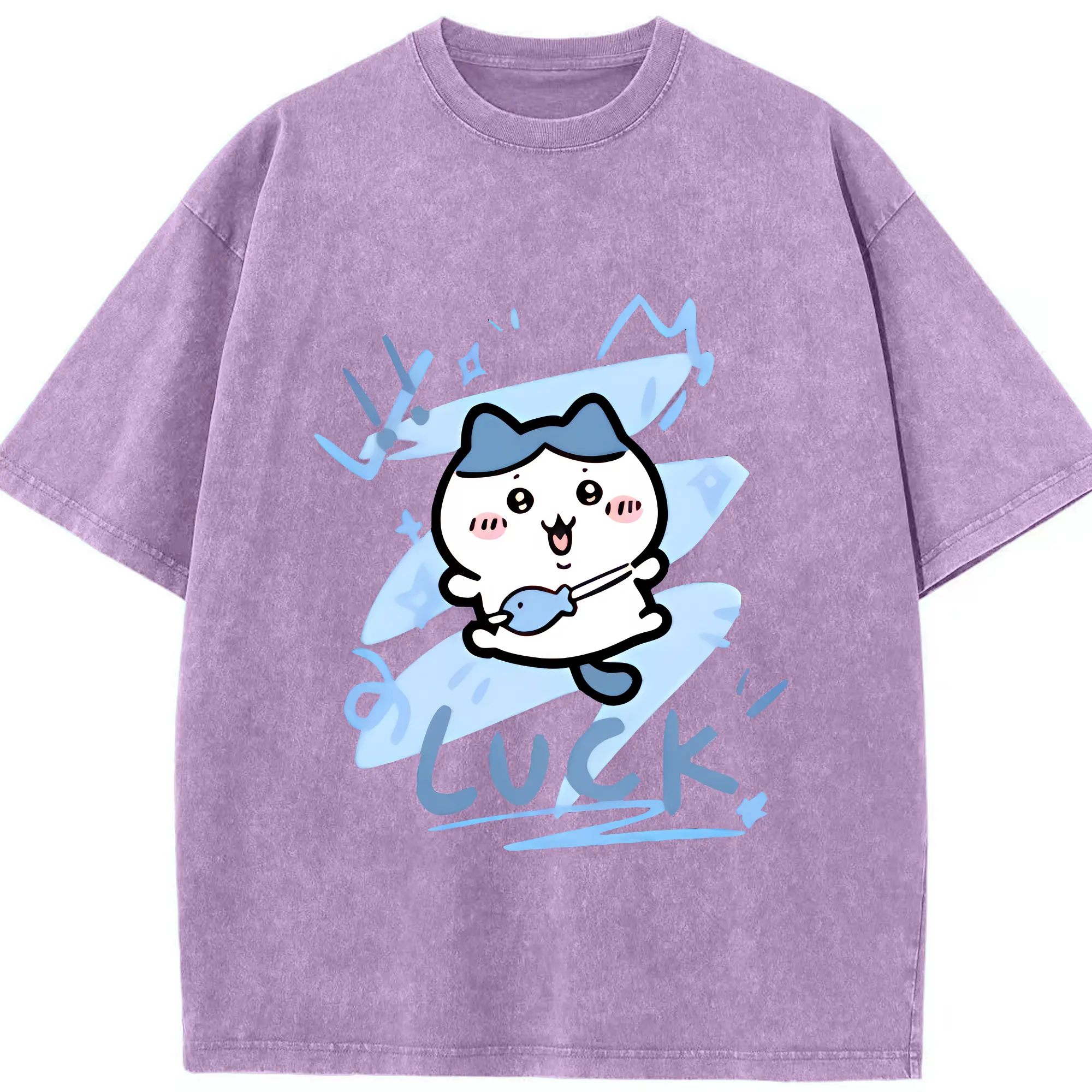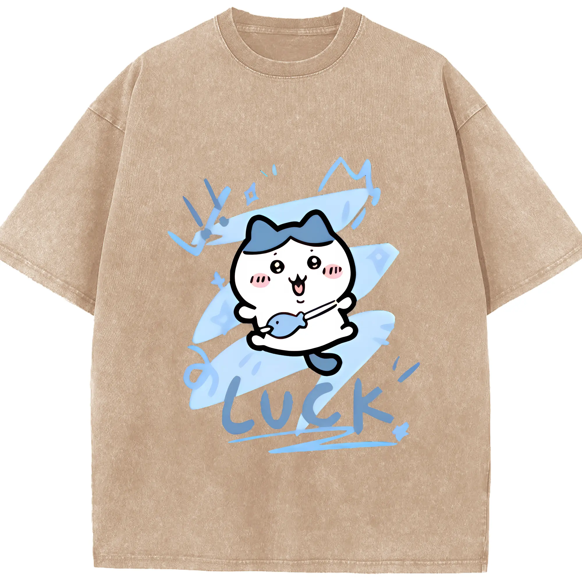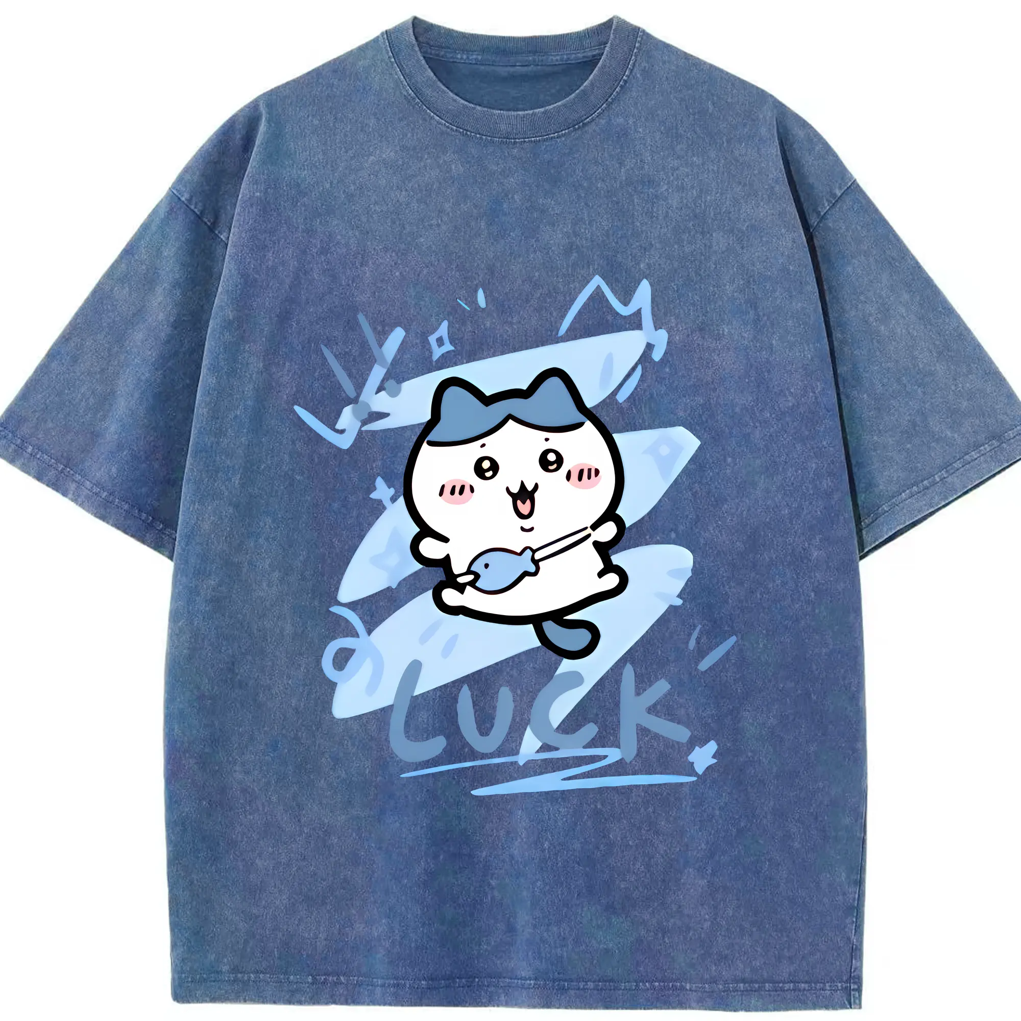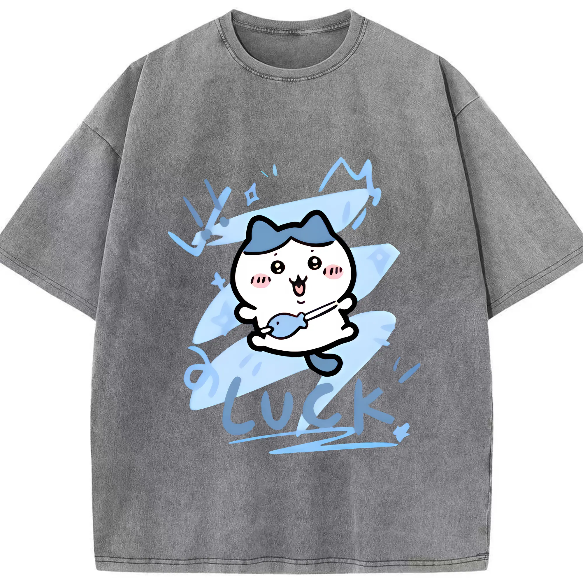 ちい が わ グッズ ハチワレ - 綿100% ヴィンテージ風 半袖Tシャツ ・ 背面プリント ・ 柔らか肌触り ・ 通気性 快適 ・ スポーツ カジュアル 外出用