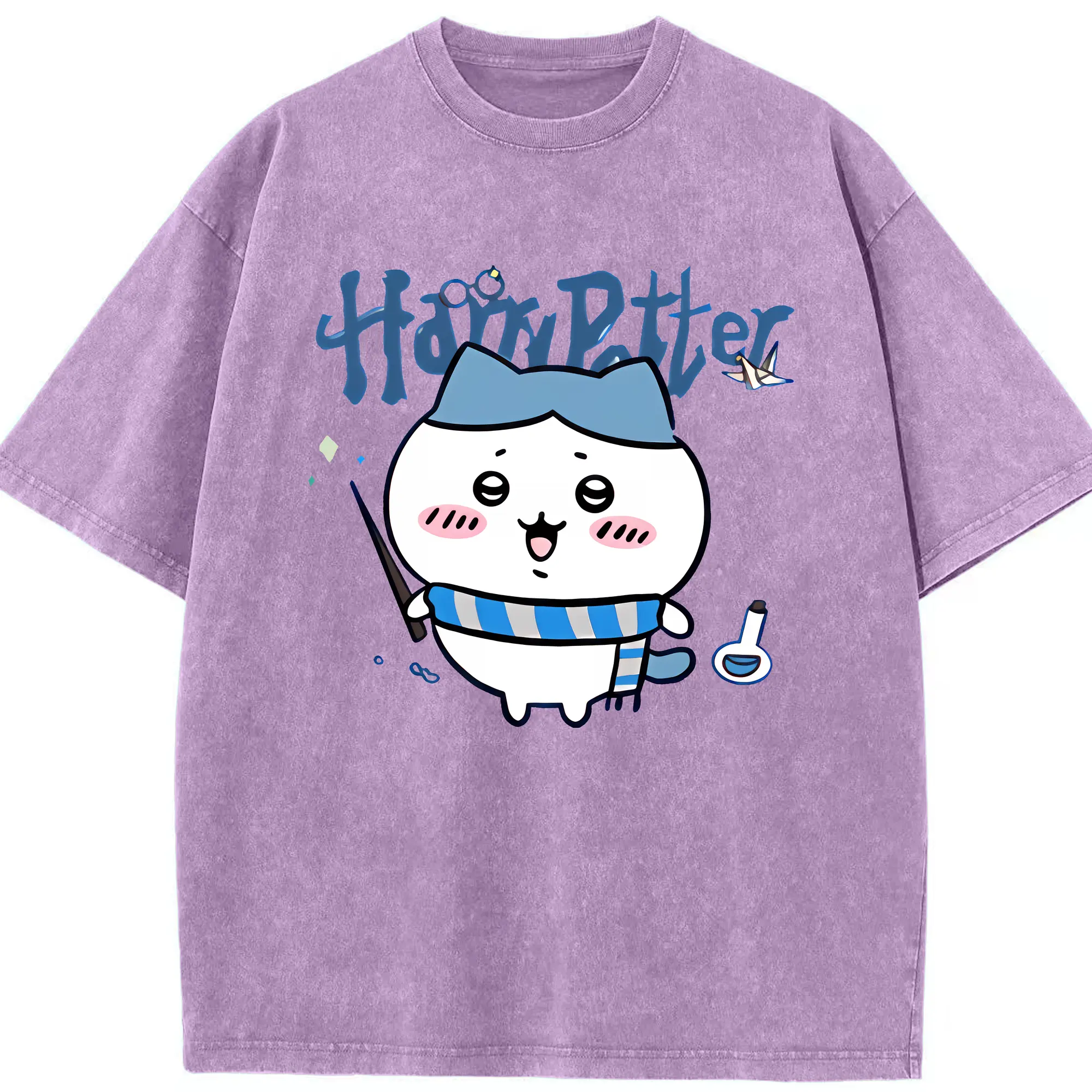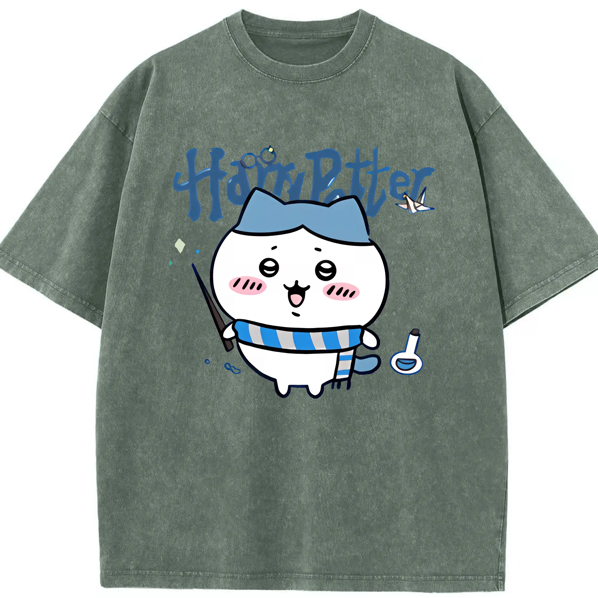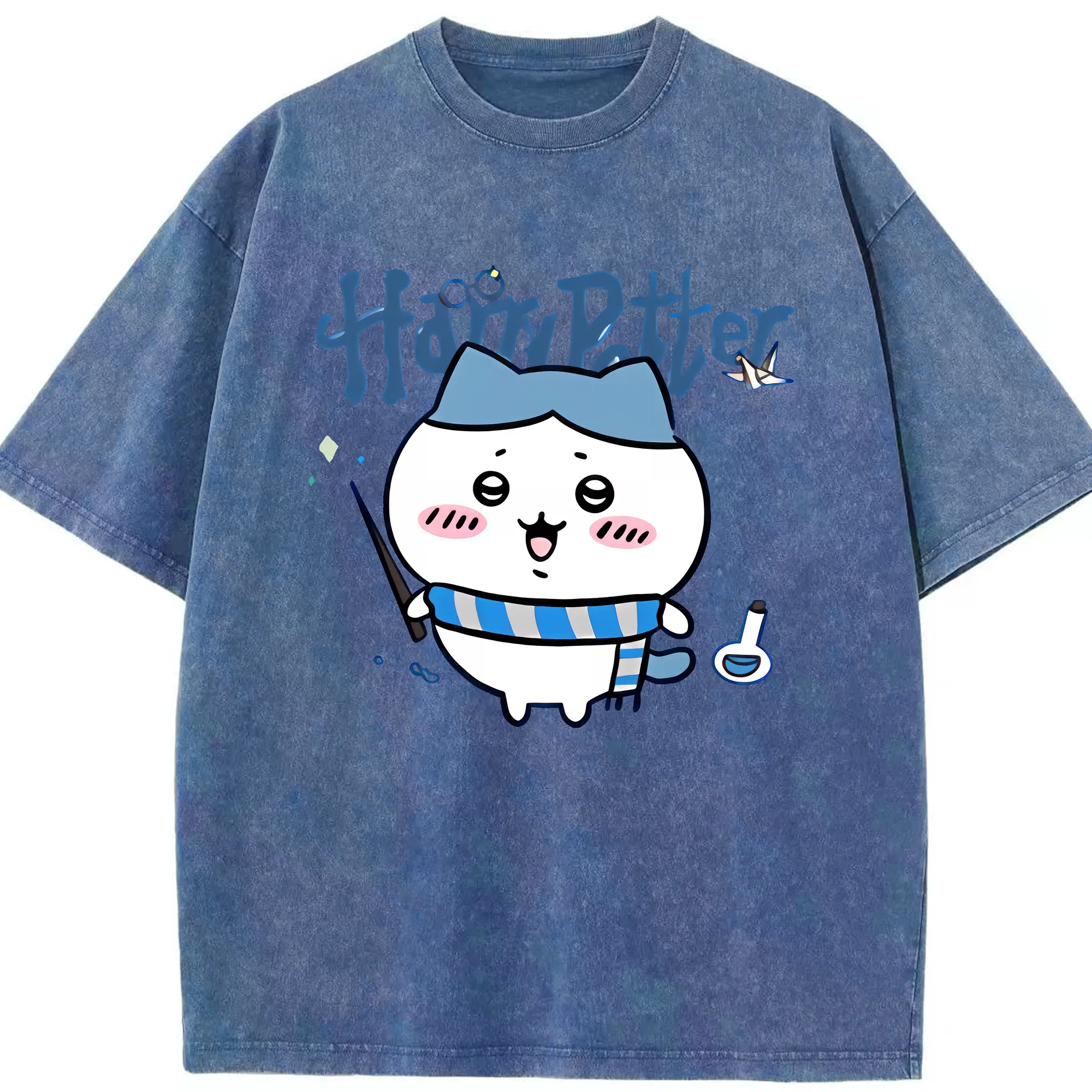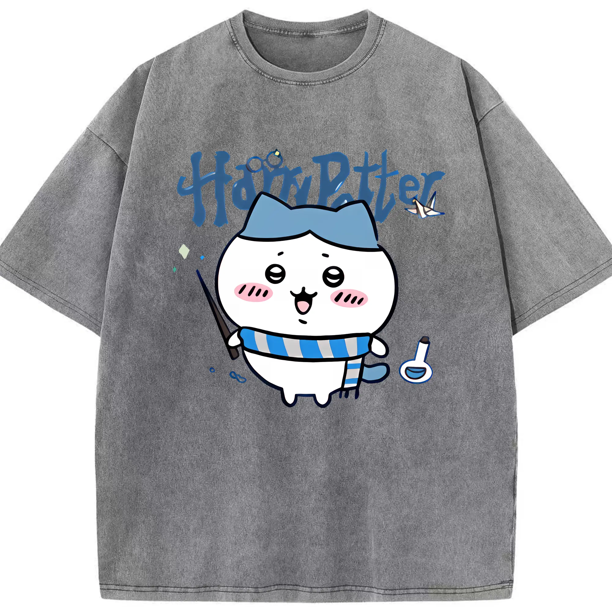ちい が わ グッズ ハチワレ - 綿100% ヴィンテージ風 半袖Tシャツ ・ 背面プリント ・ 柔らか肌触り ・ 通気性 快適 ・ スポーツ カジュアル 外出用