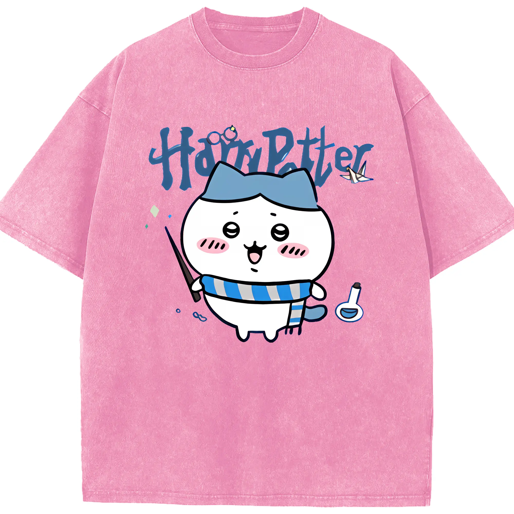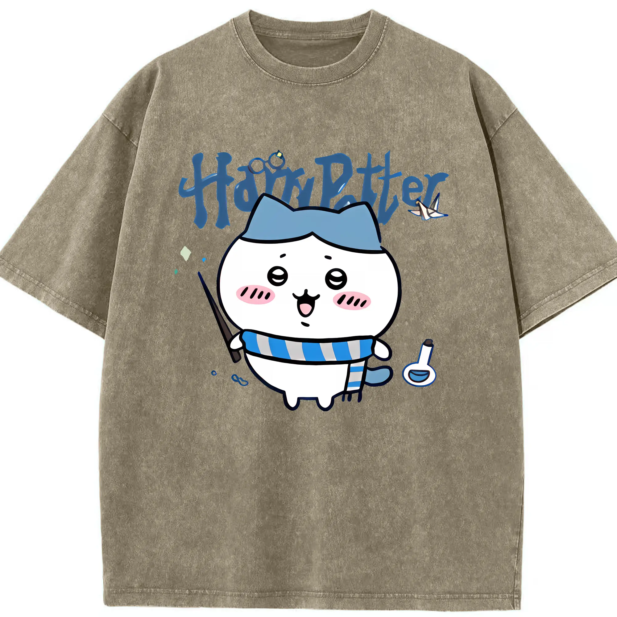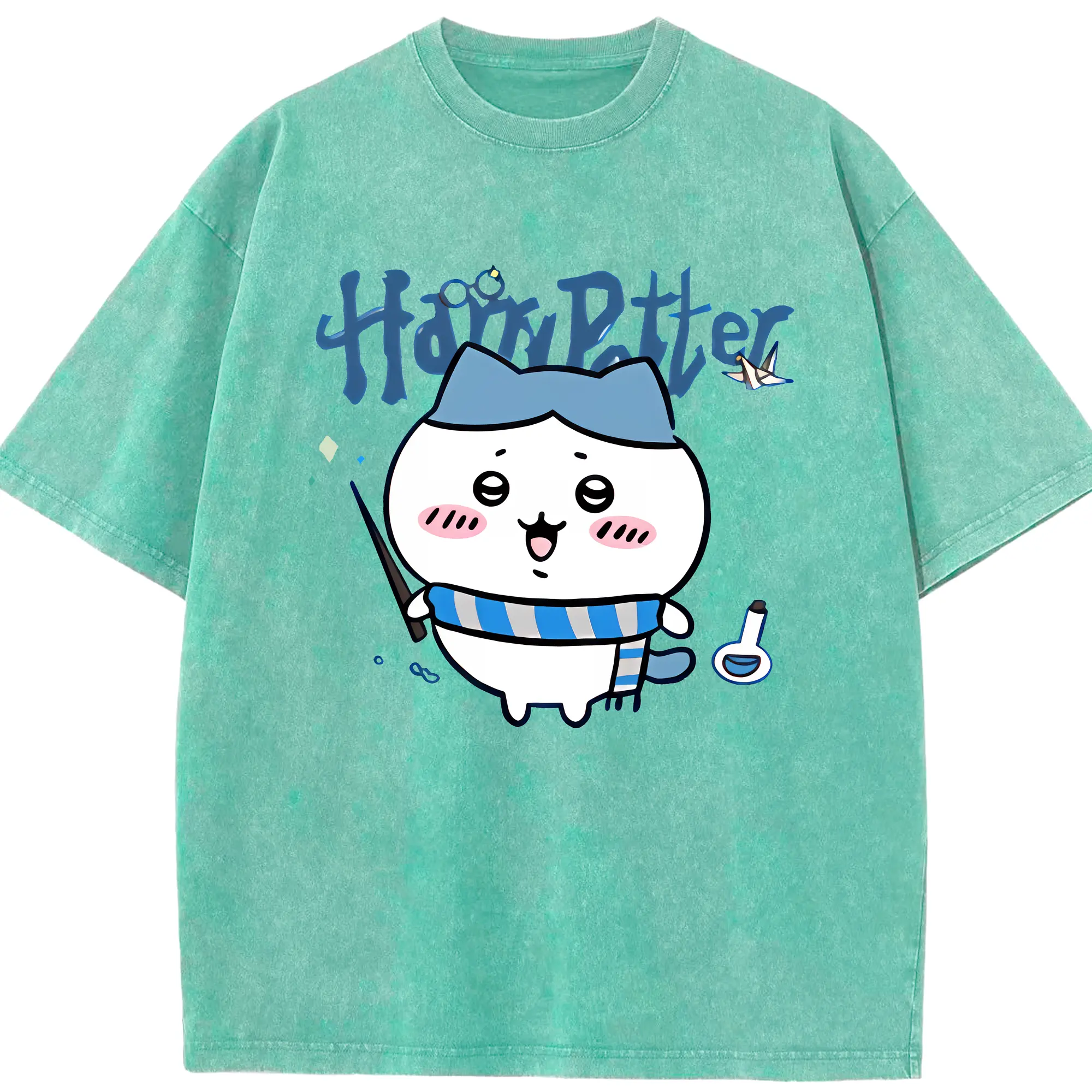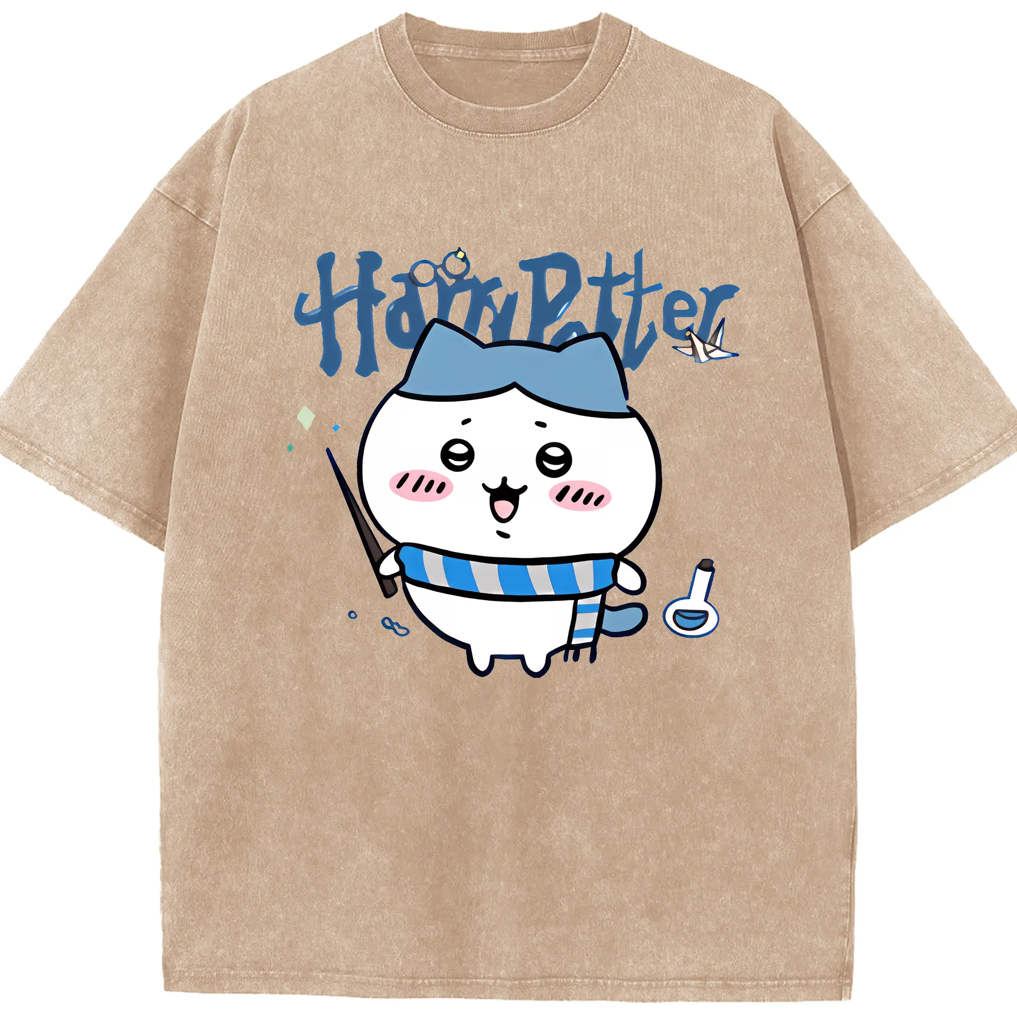 ちい が わ グッズ ハチワレ - 綿100% ヴィンテージ風 半袖Tシャツ ・ 背面プリント ・ 柔らか肌触り ・ 通気性 快適 ・ スポーツ カジュアル 外出用