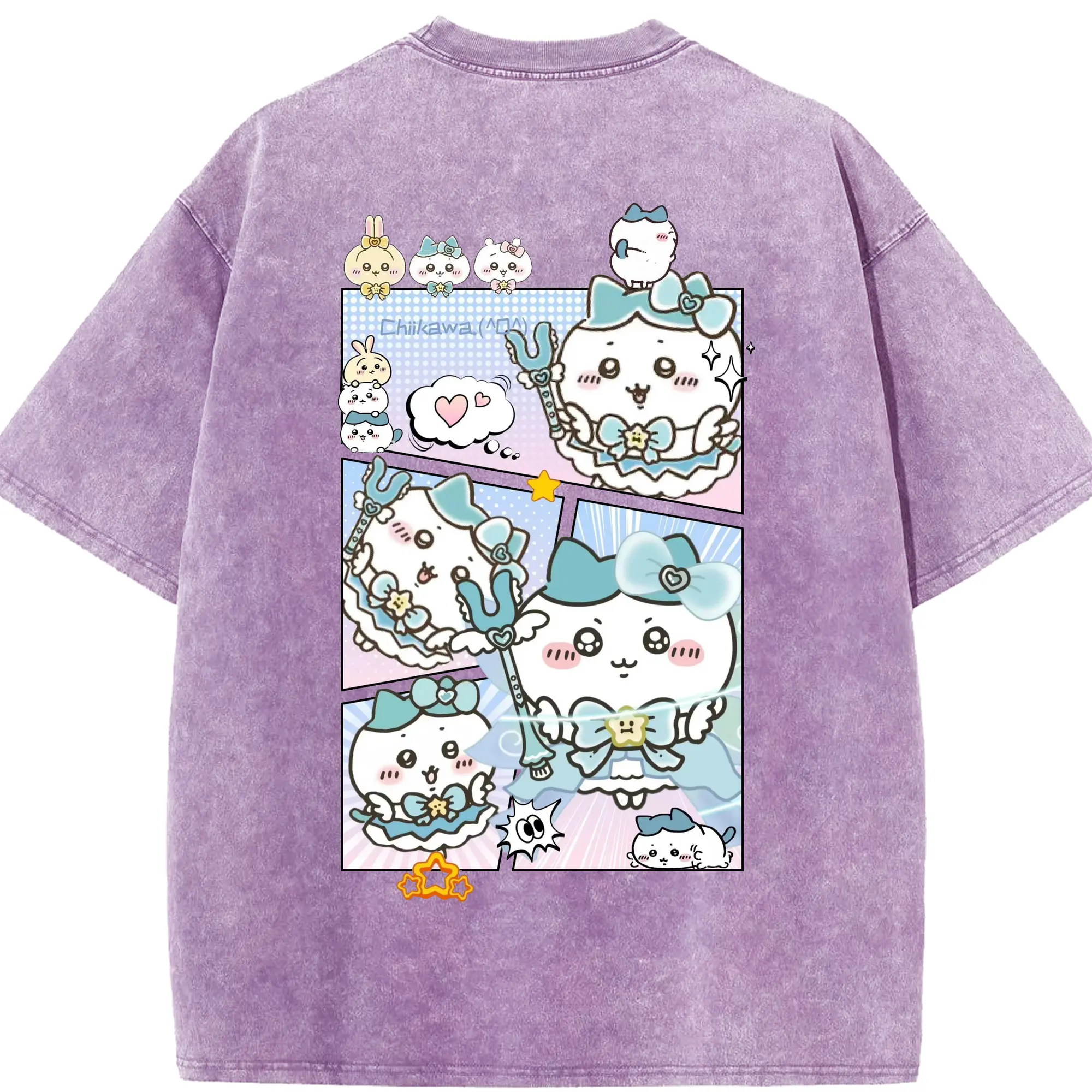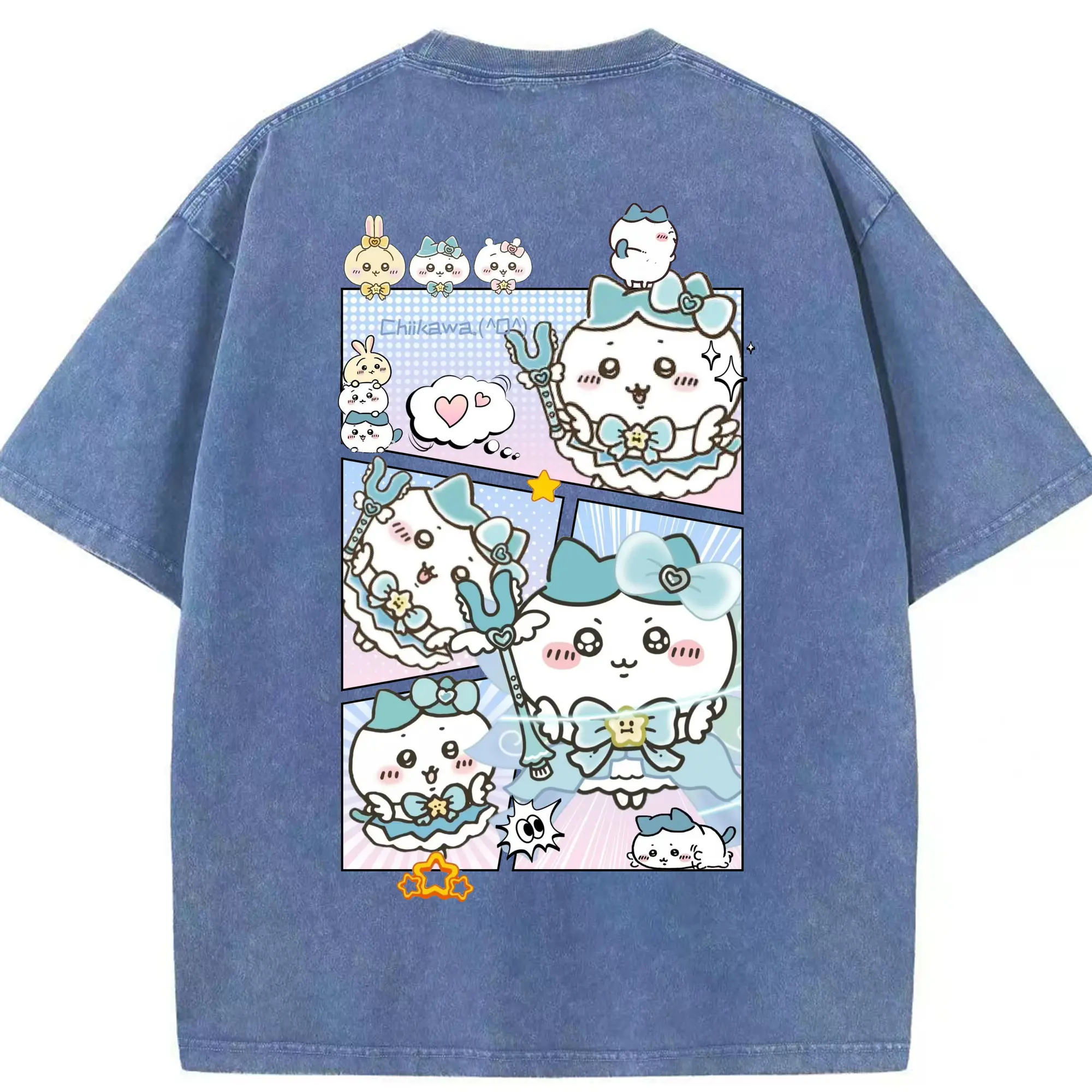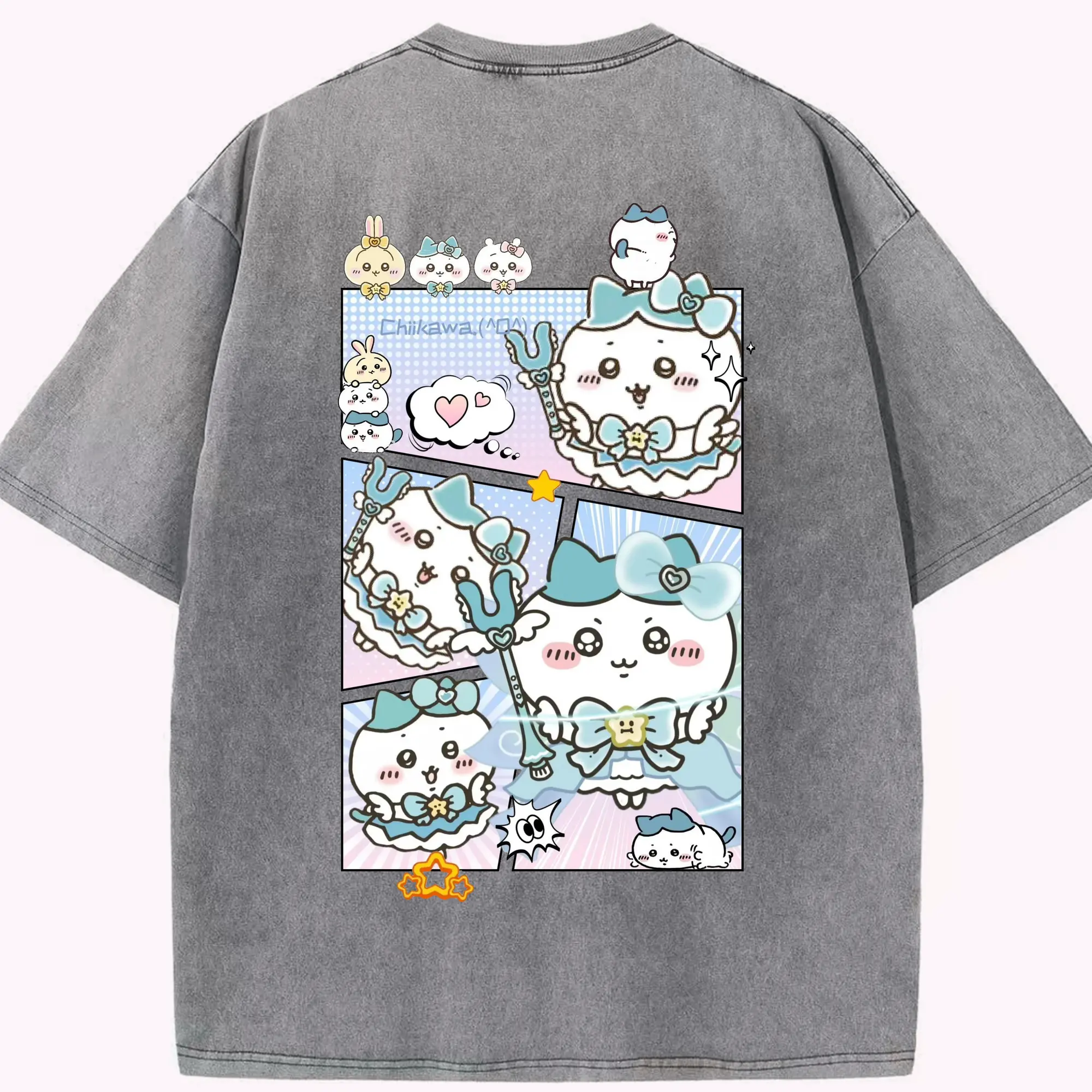 ちい が わ グッズ ハチワレ - 綿100% 半袖Tシャツ ・ バックプリント ・ 快適 通気性 ・ 日常使い 散歩 スポーツ用