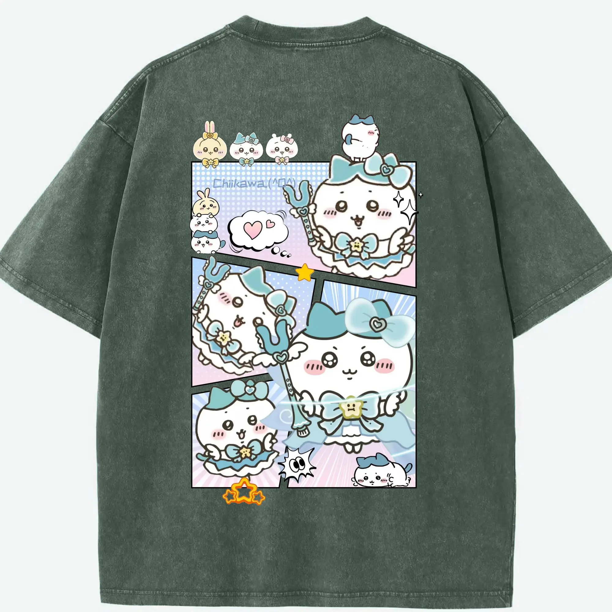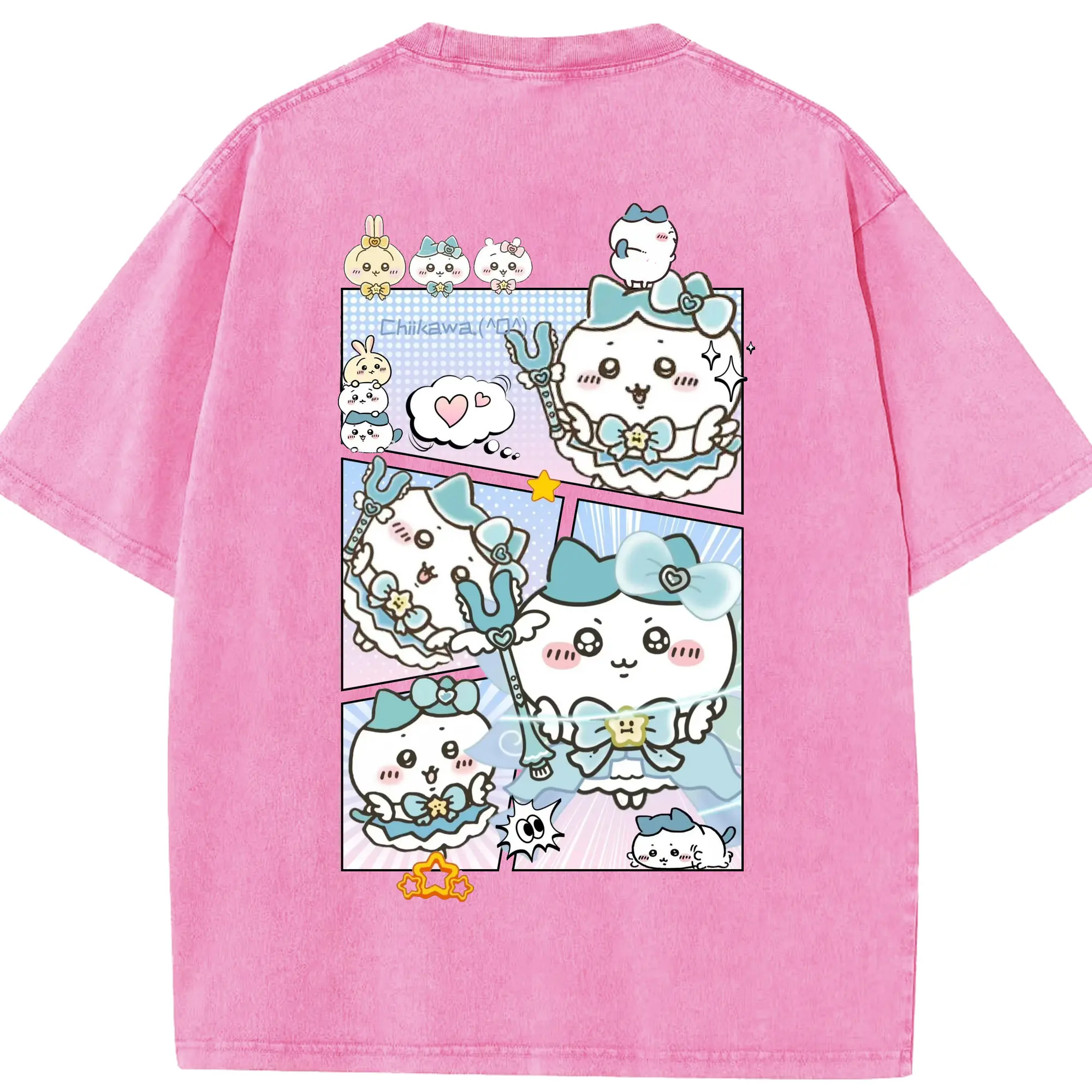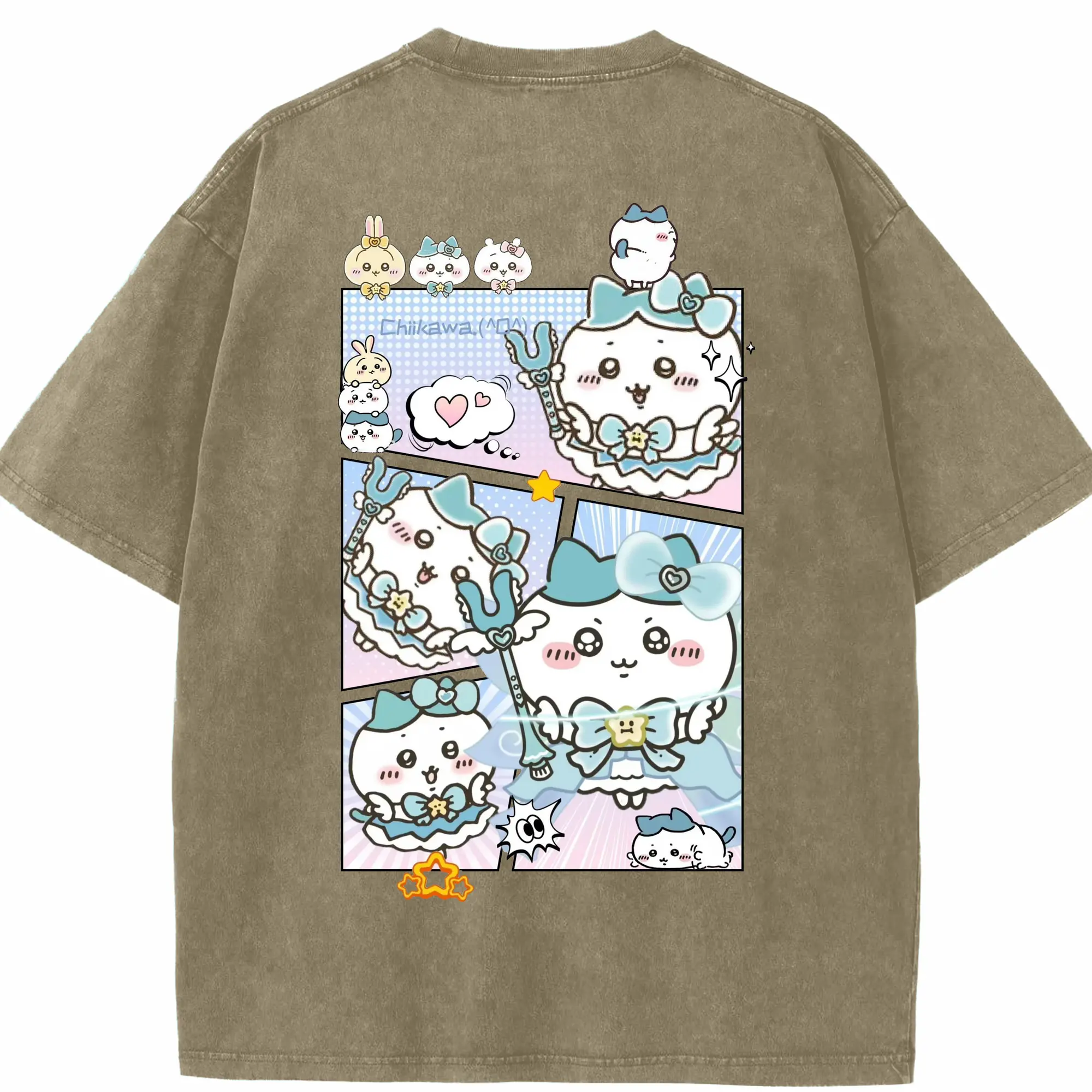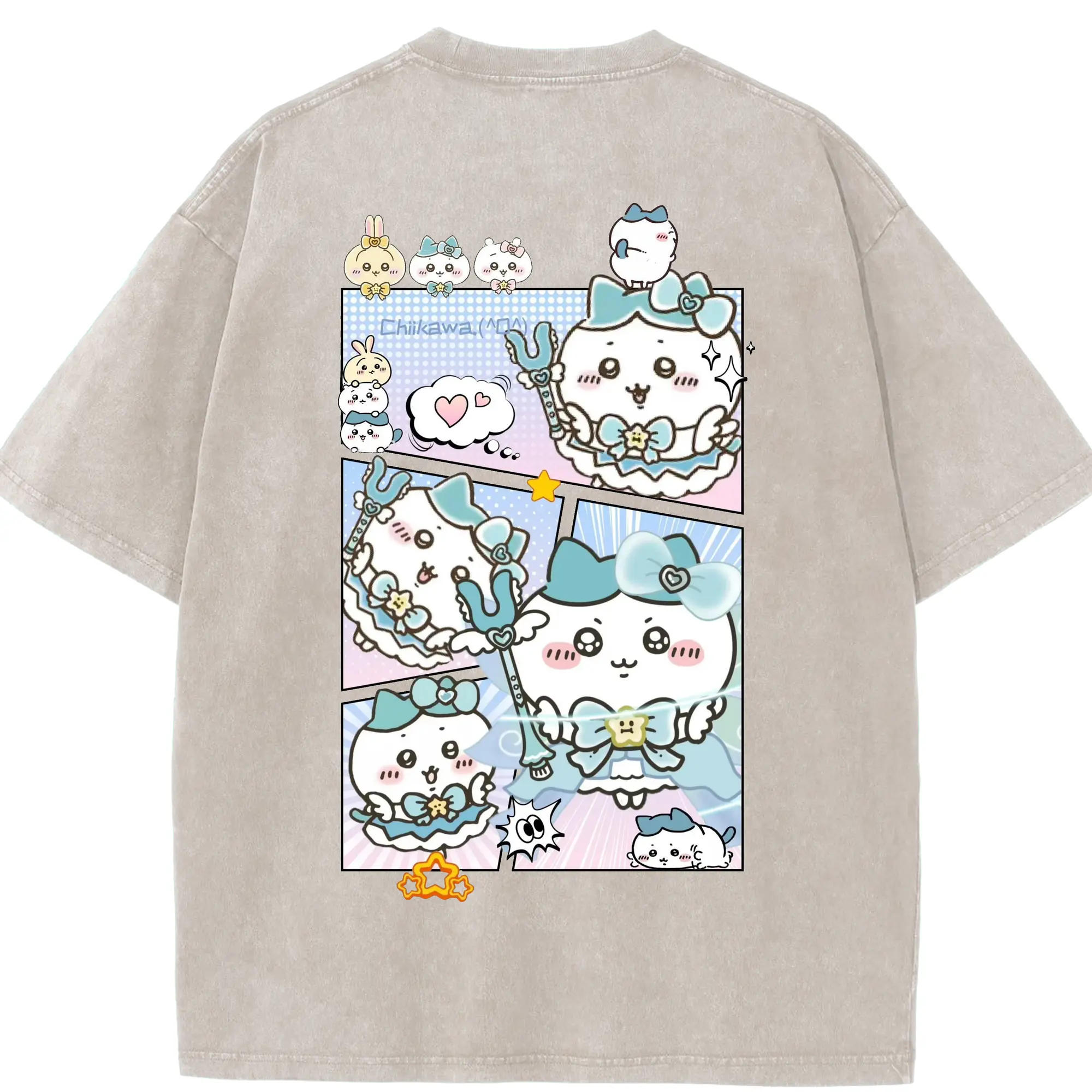 ちい が わ グッズ ハチワレ - 綿100% 半袖Tシャツ ・ バックプリント ・ 快適 通気性 ・ 日常使い 散歩 スポーツ用