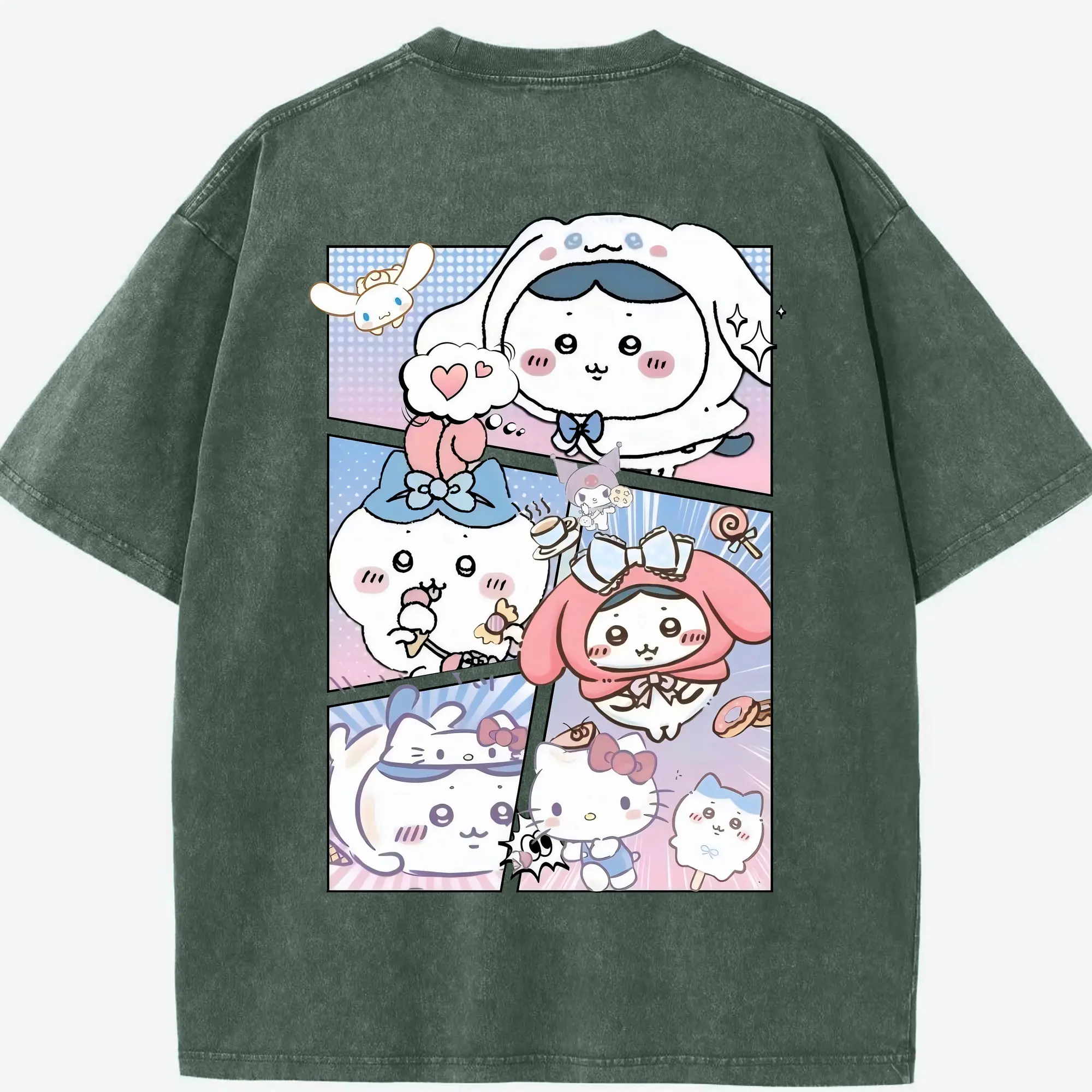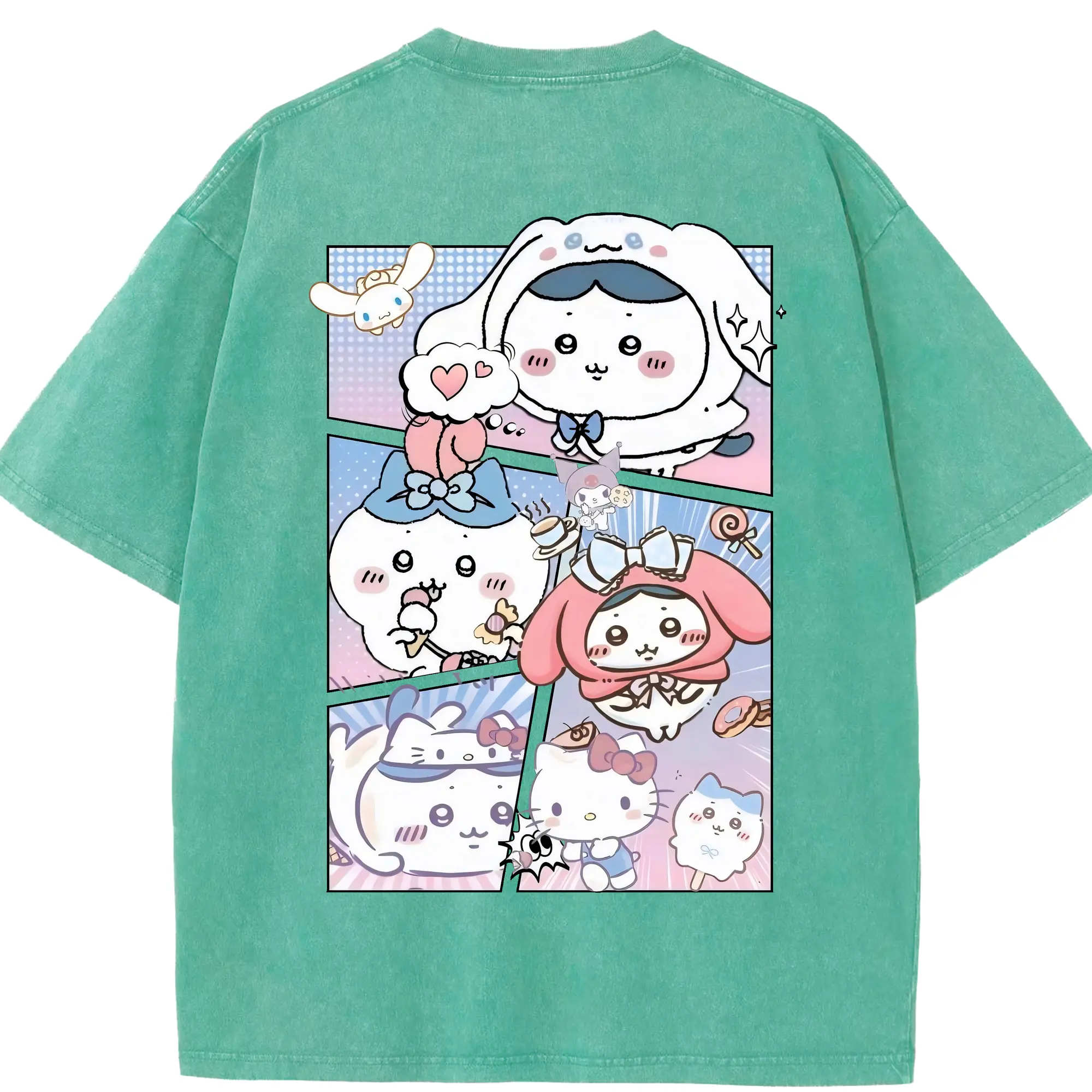 ちい が わ グッズ ハチワレ - 綿100% ヴィンテージ風 半袖Tシャツ ・ フロントプリント ・ 柔らか肌触り ・ 通気性 快適 ・ スポーツ カジュアル 外出用