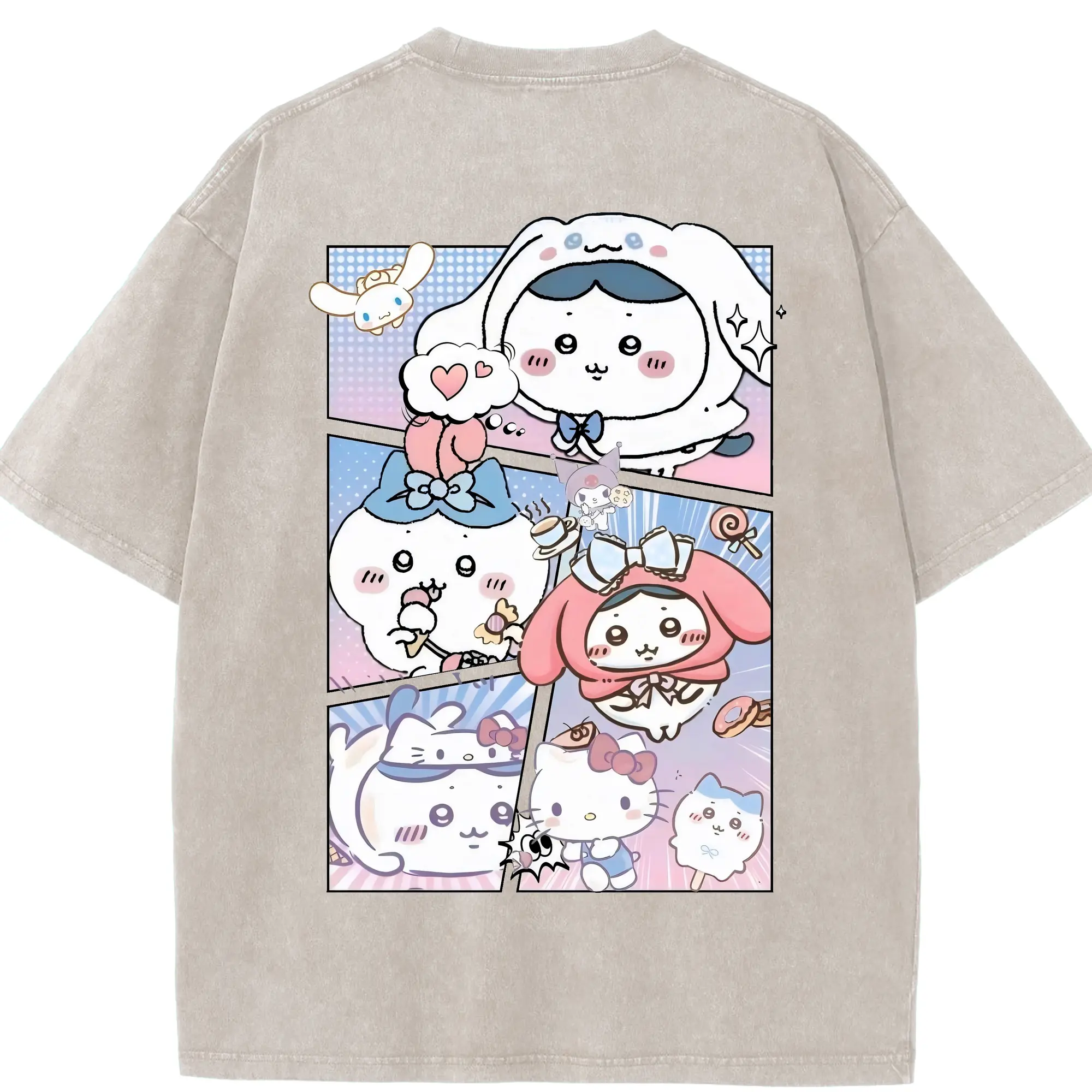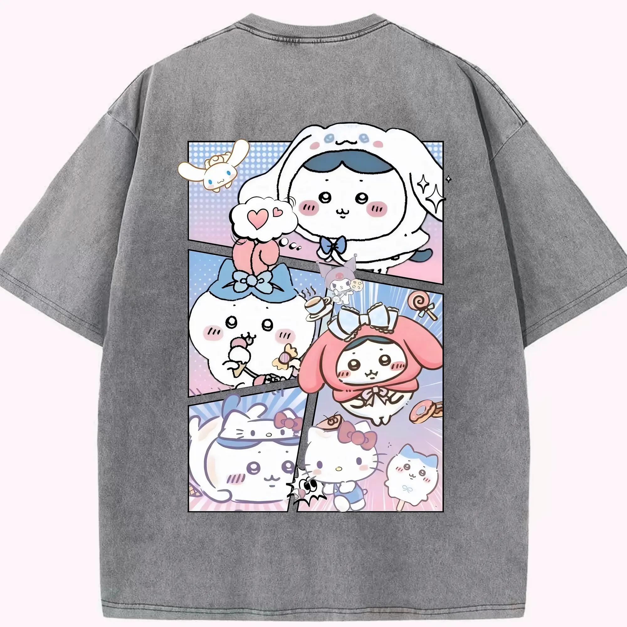 ちい が わ グッズ ハチワレ - 綿100% 半袖Tシャツ ・ バックプリント ・ 快適 通気性 ・ 日常使い 散歩 スポーツ用