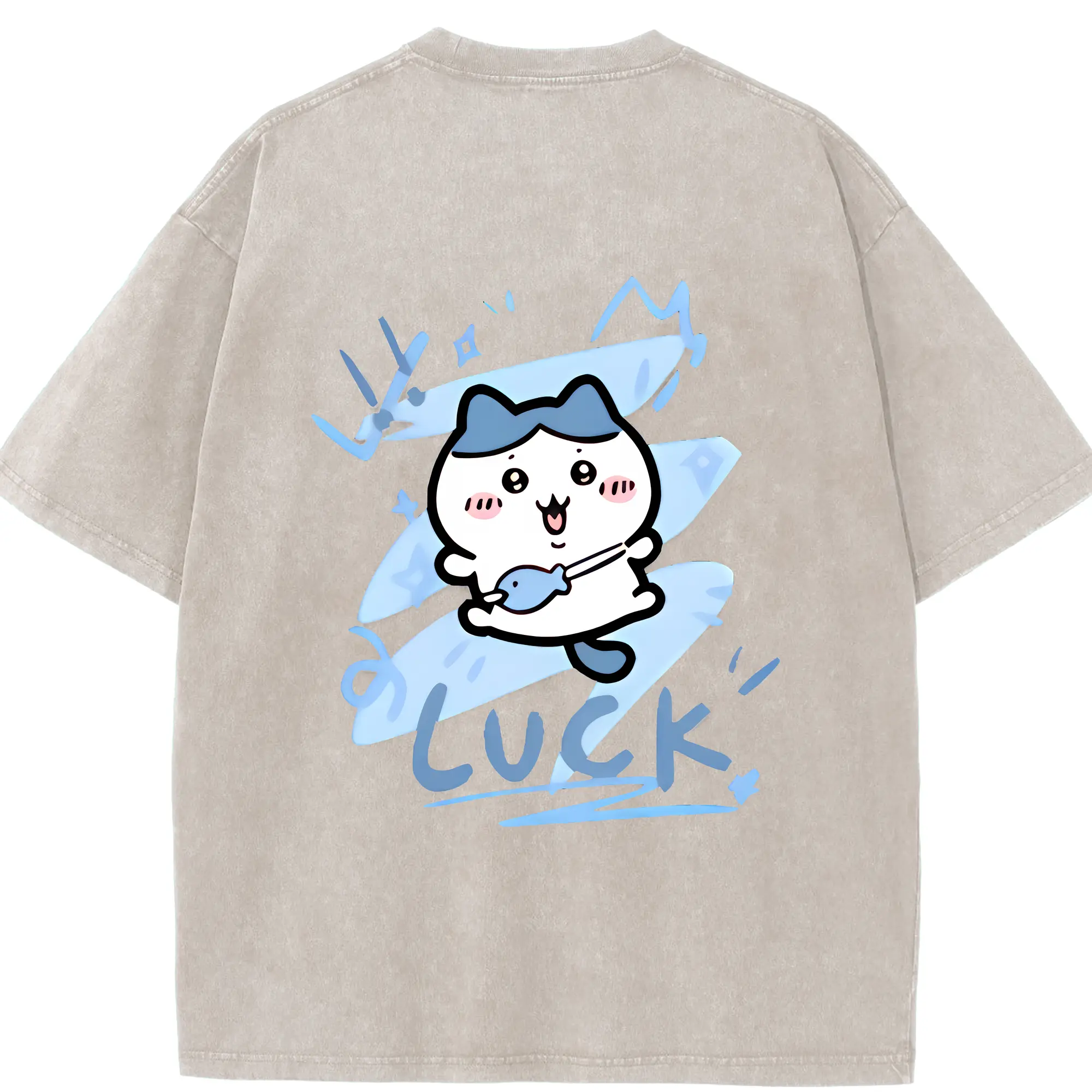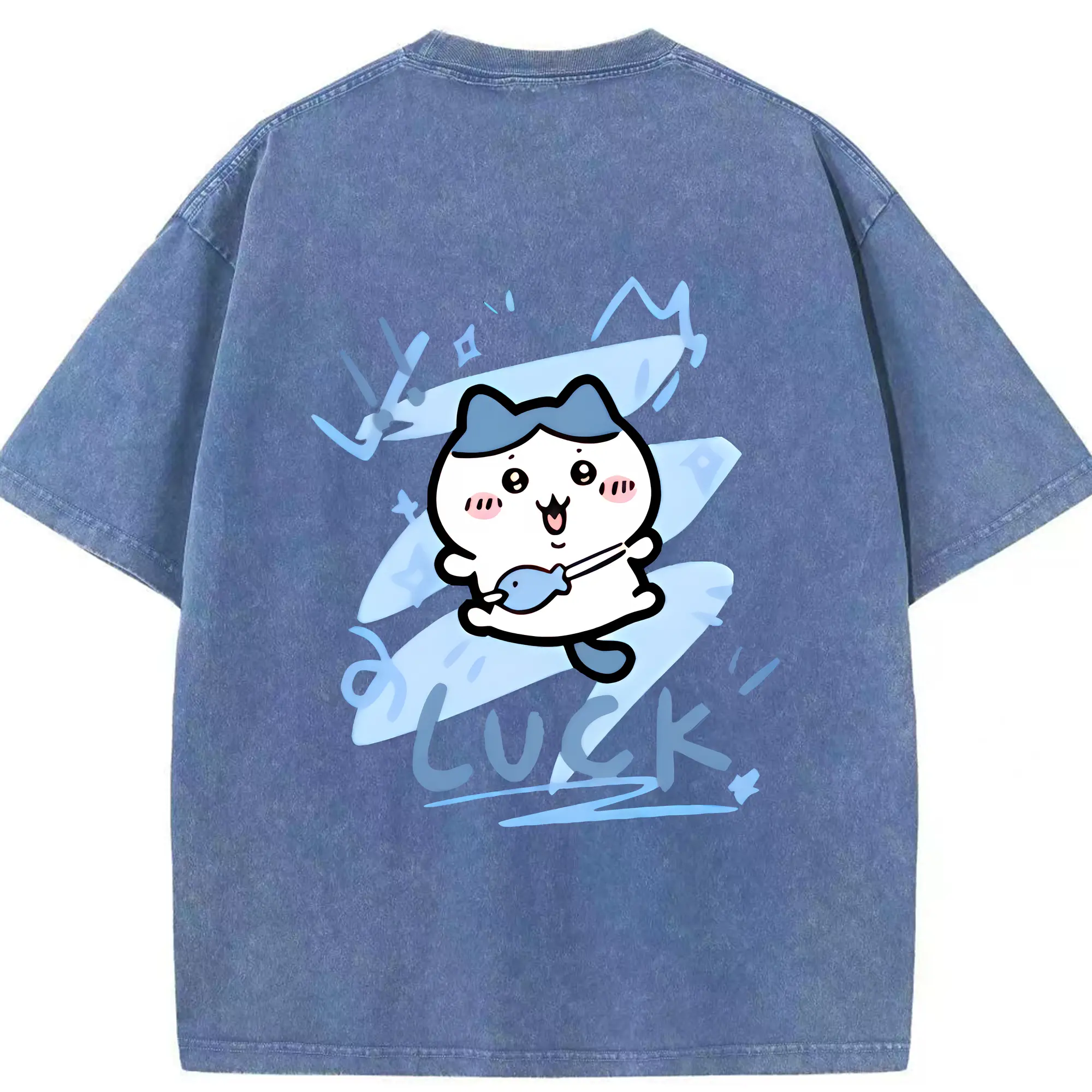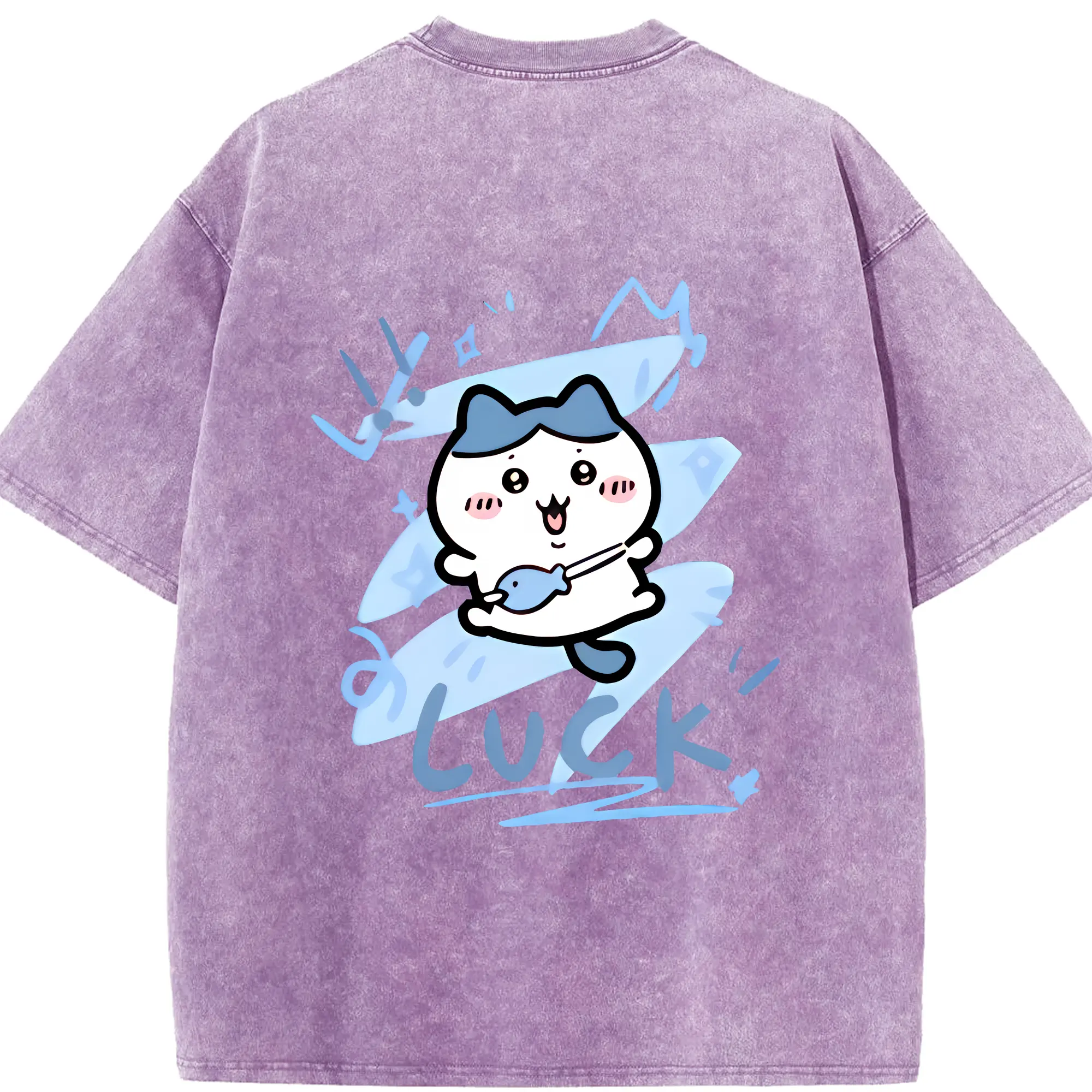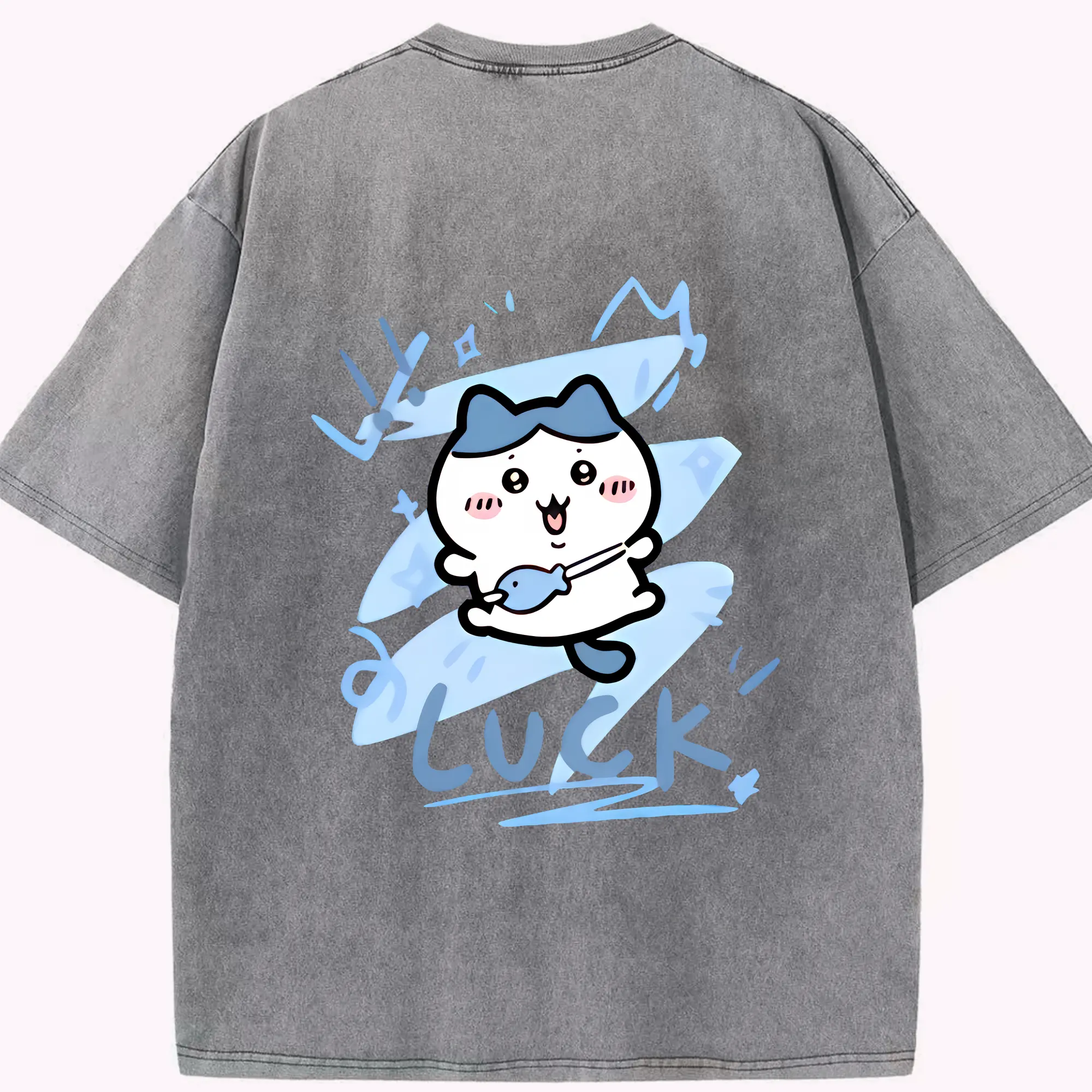 ちい が わ グッズ ハチワレ - 綿100% ヴィンテージ風 半袖Tシャツ ・ フロントプリント ・ 柔らか肌触り ・ 通気性 快適 ・ スポーツ カジュアル 外出用