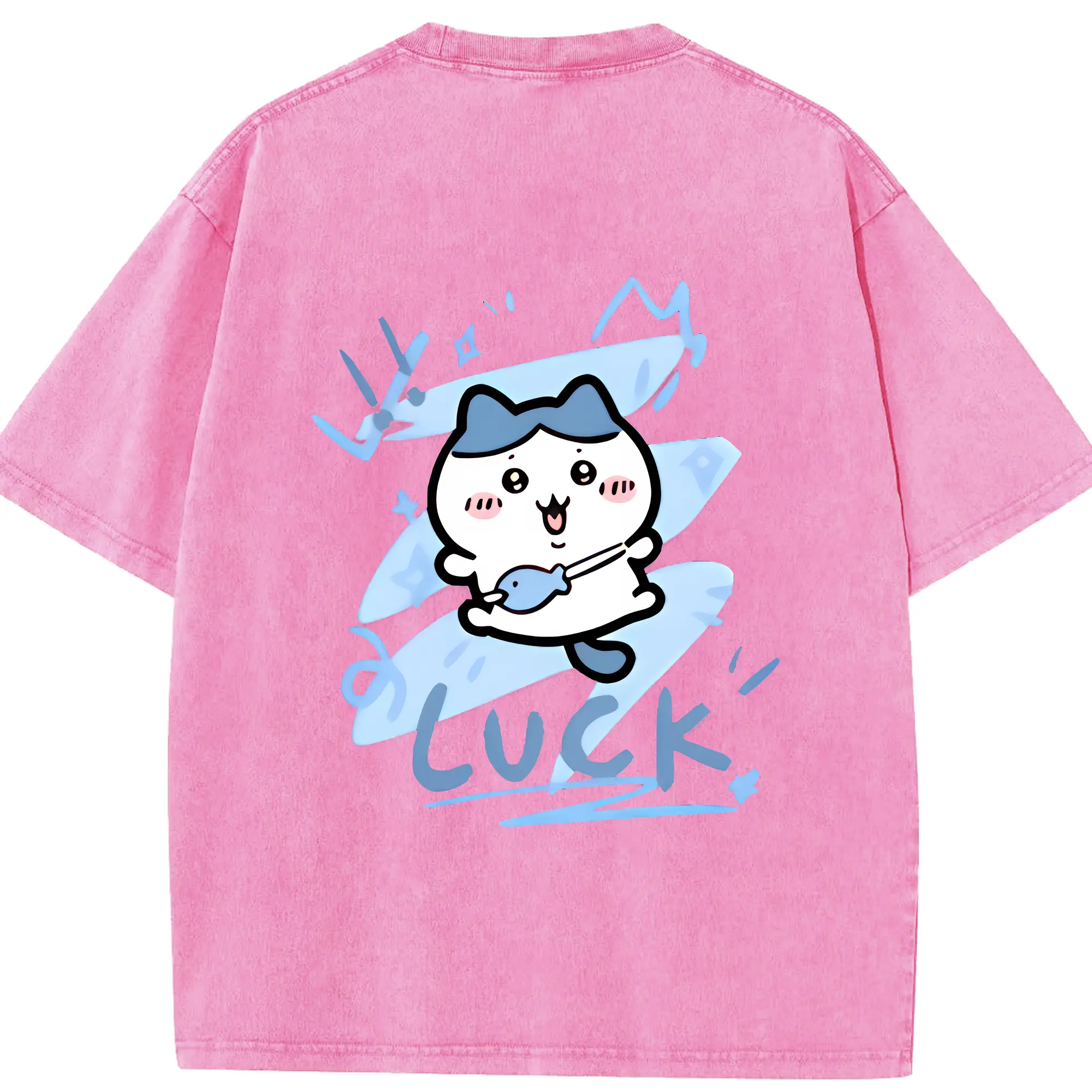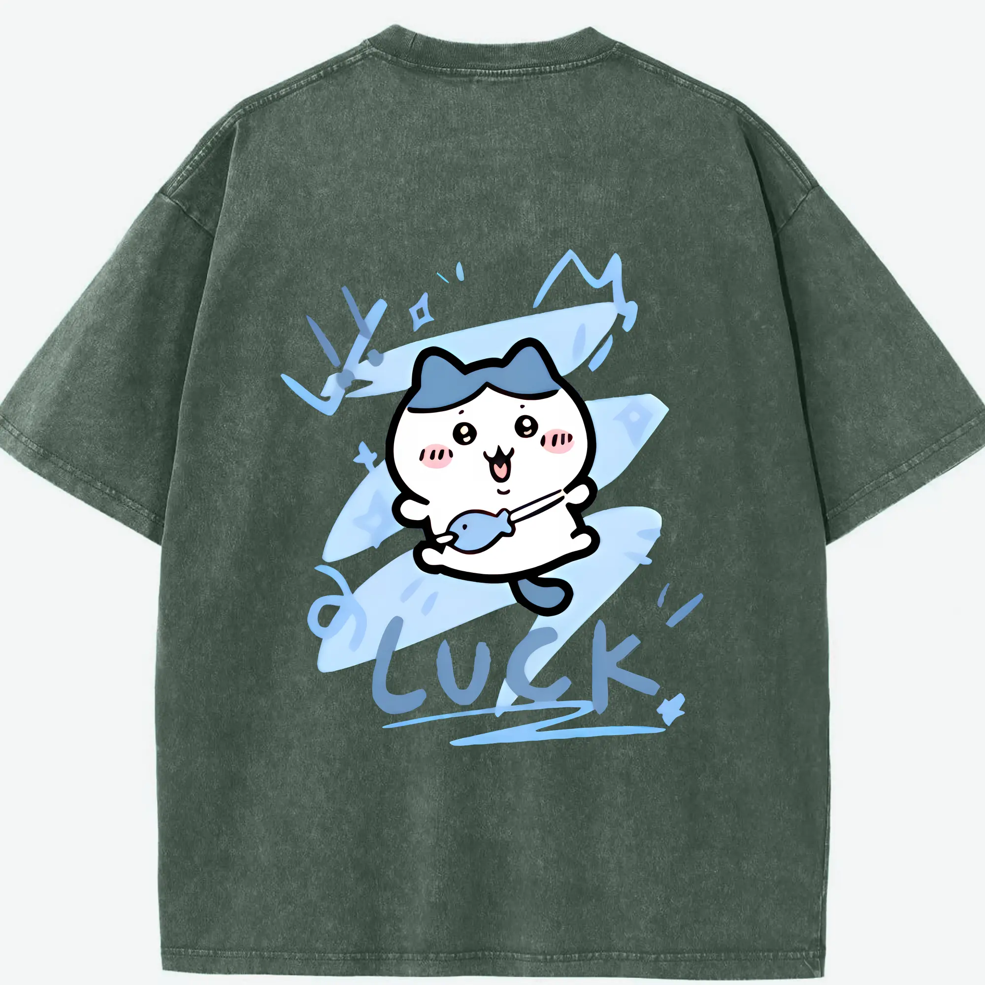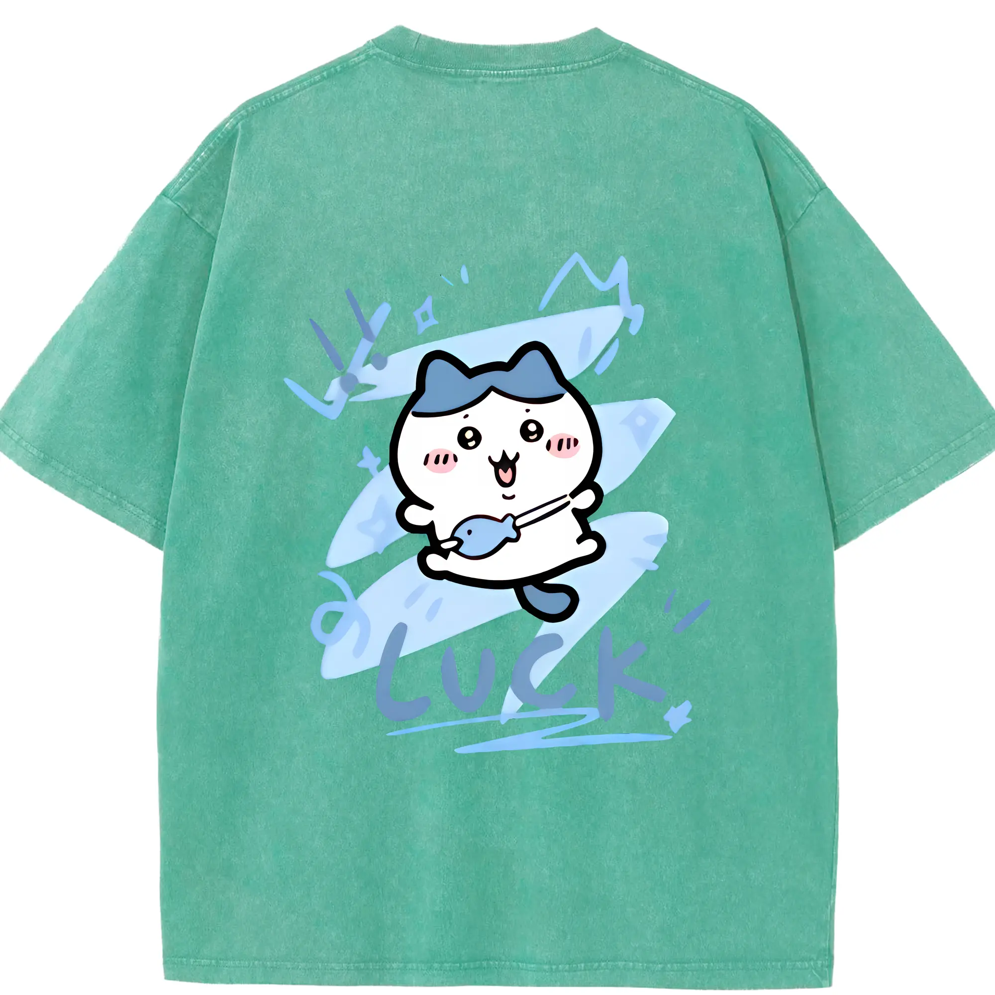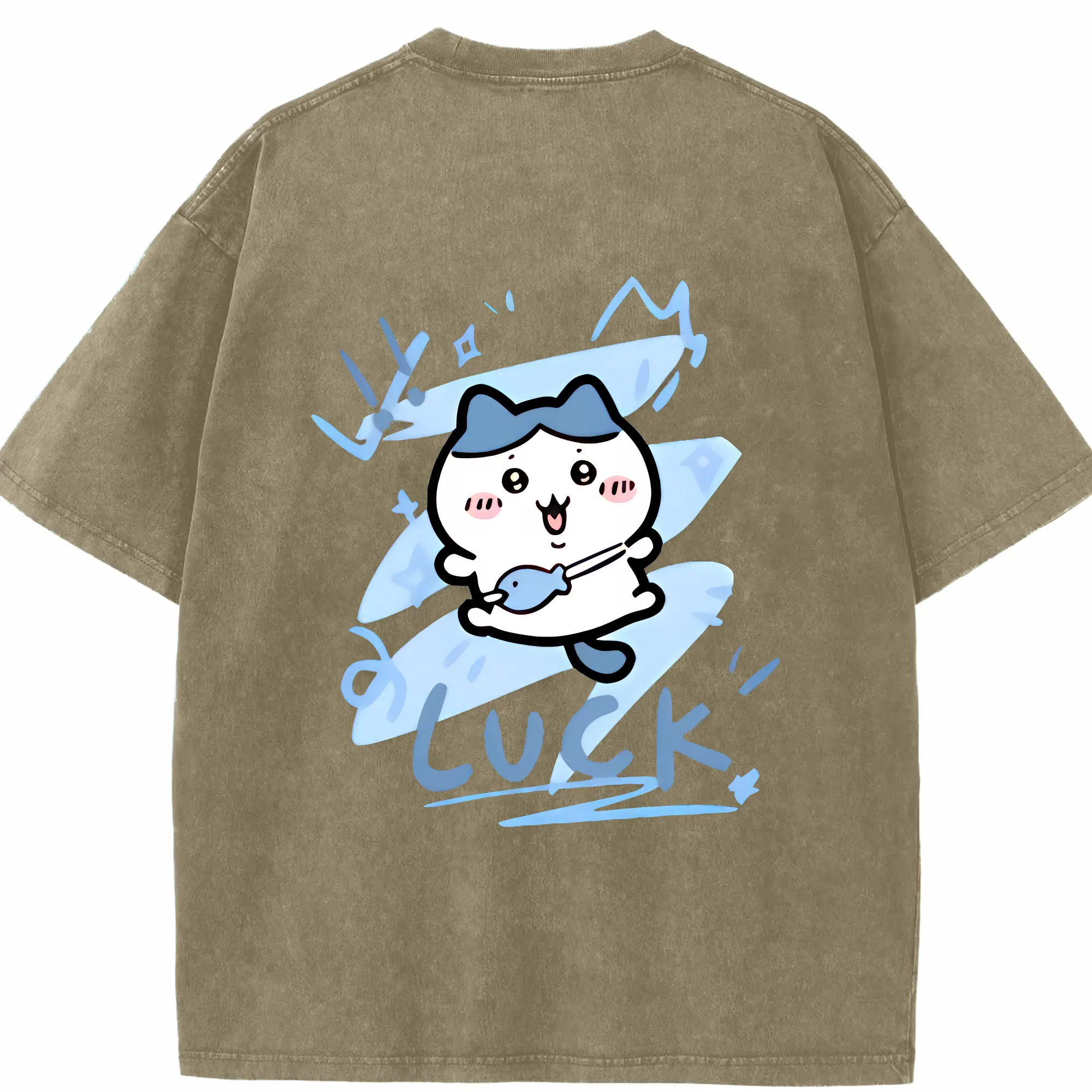 ちい が わ グッズ ハチワレ - 綿100% ヴィンテージ風 半袖Tシャツ ・ フロントプリント ・ 柔らか肌触り ・ 通気性 快適 ・ スポーツ カジュアル 外出用