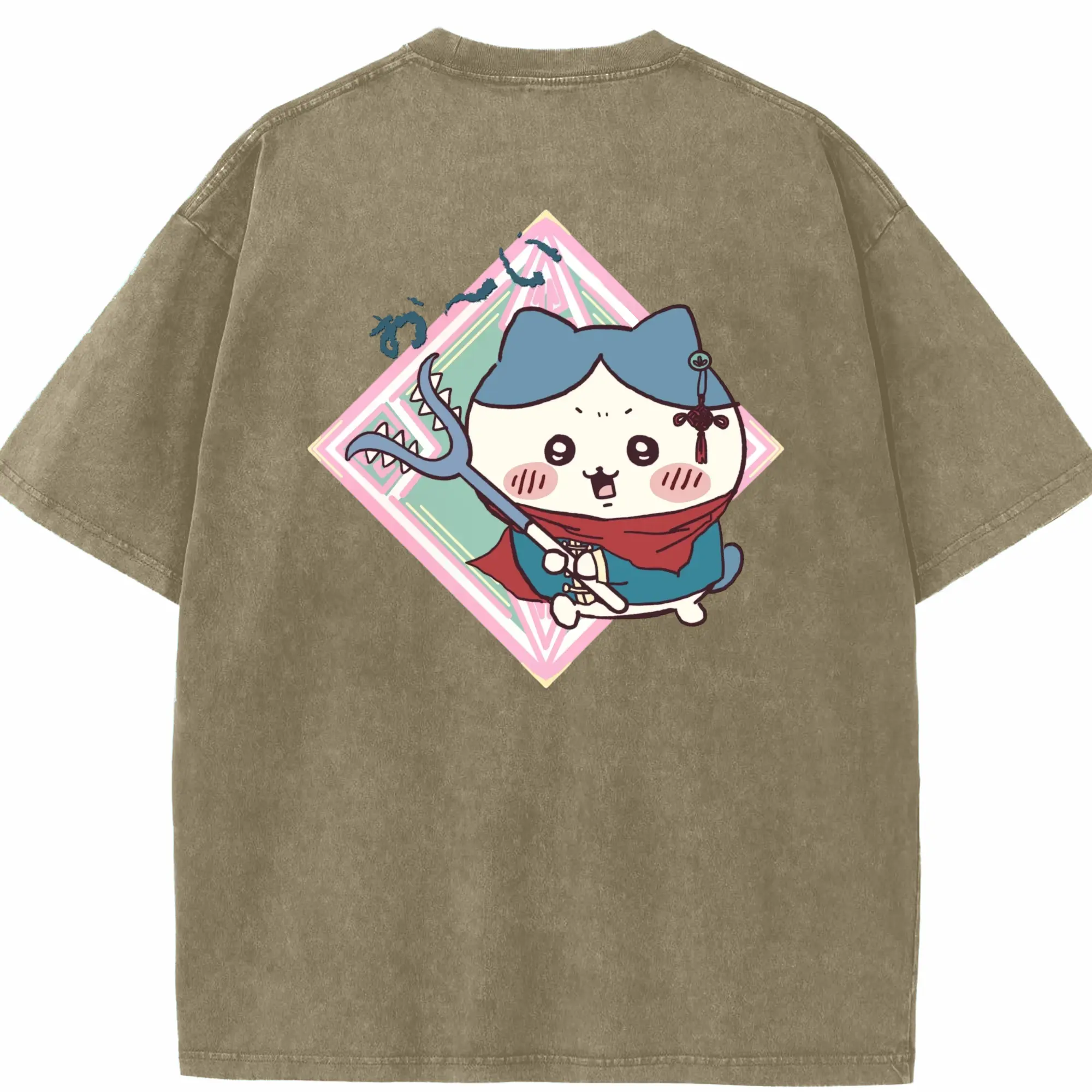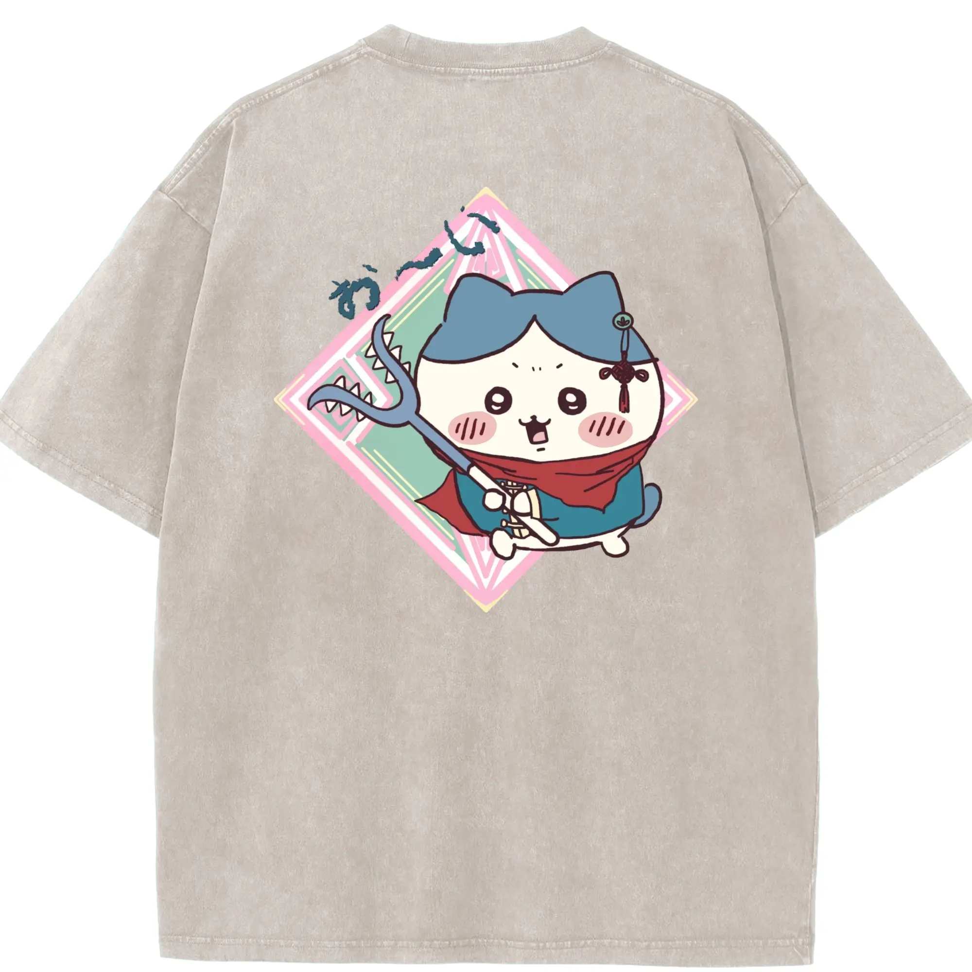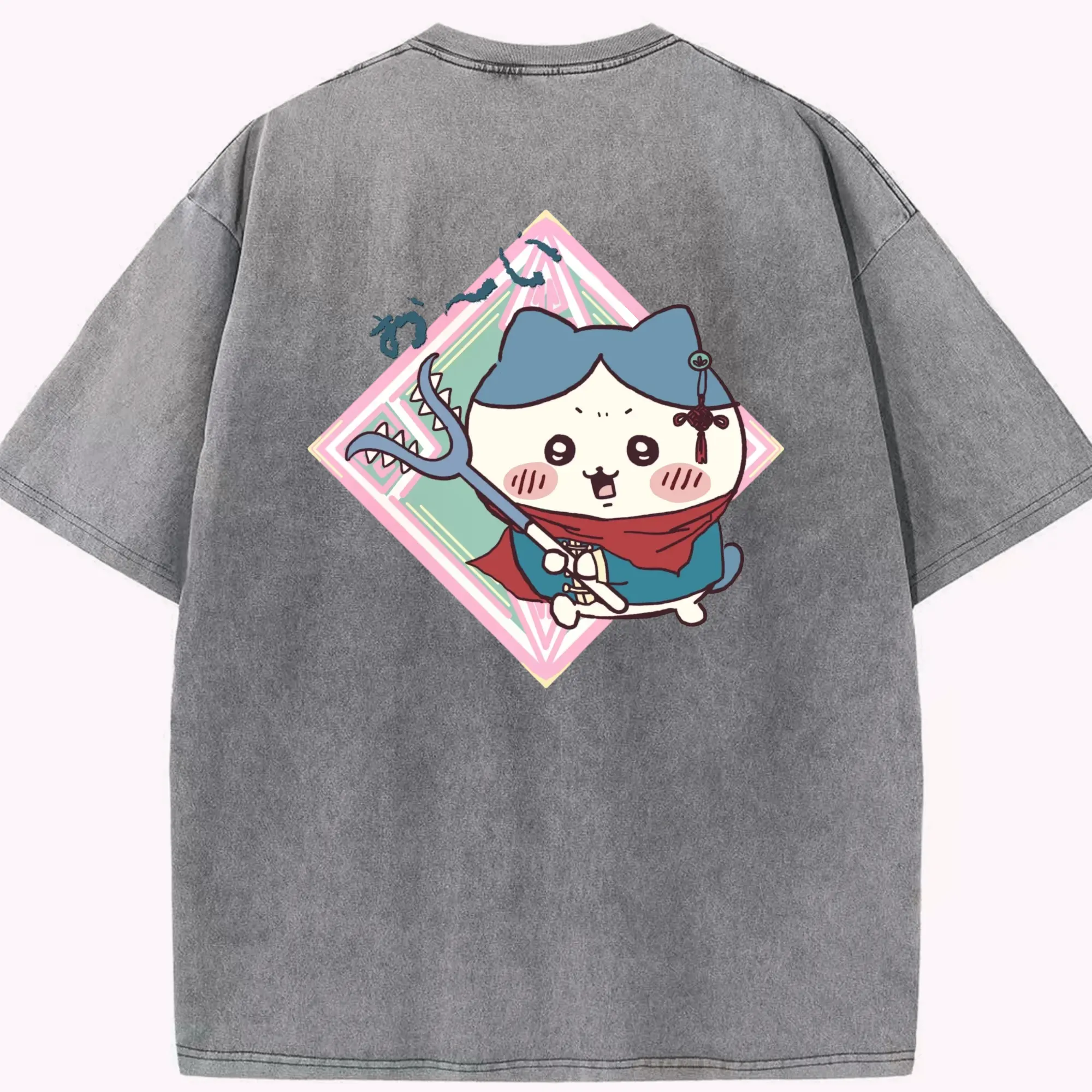 ちい が わ グッズ ハチワレ - 綿100% ヴィンテージ風 半袖Tシャツ ・ フロントプリント ・ 柔らか肌触り ・ 通気性 快適 ・ スポーツ カジュアル 外出用