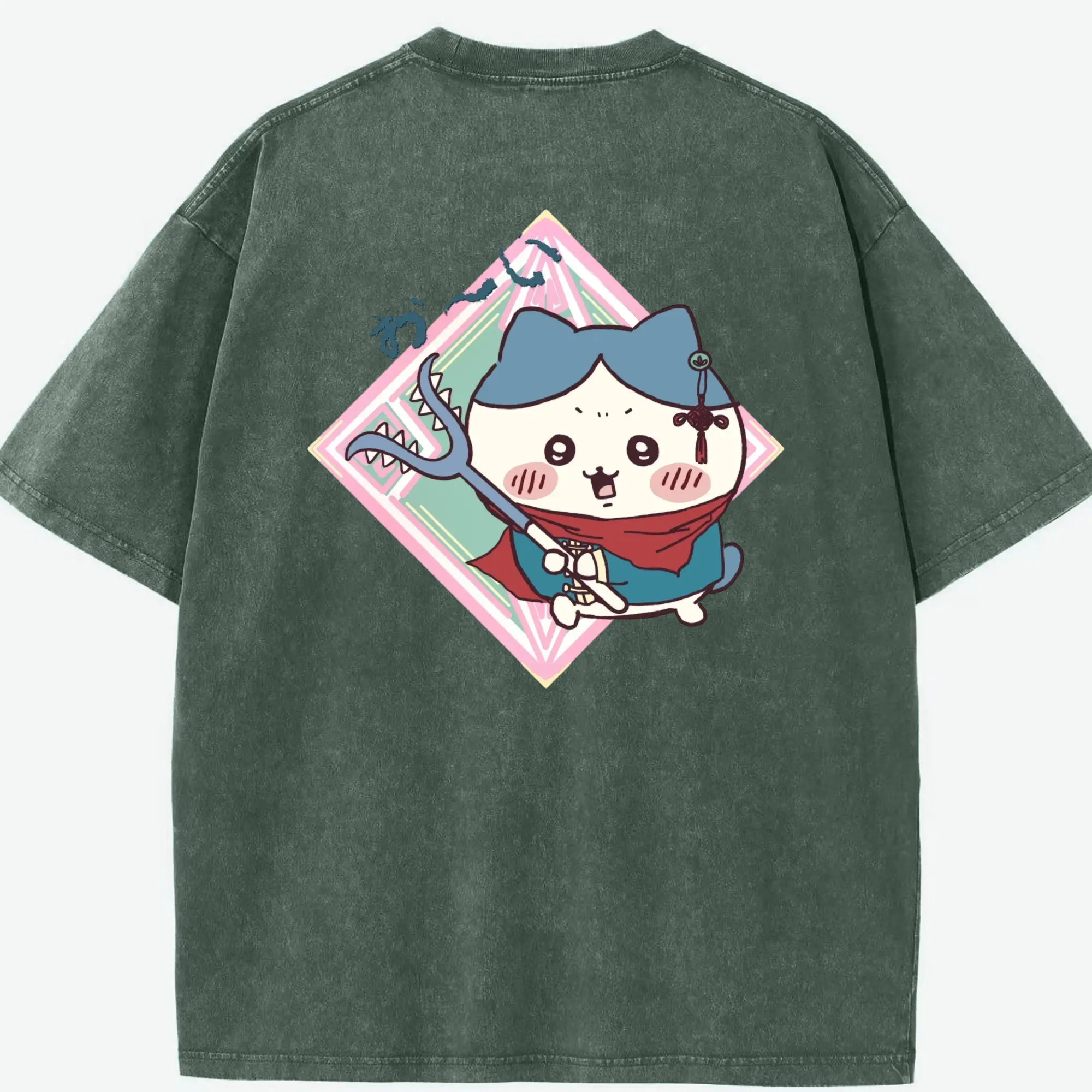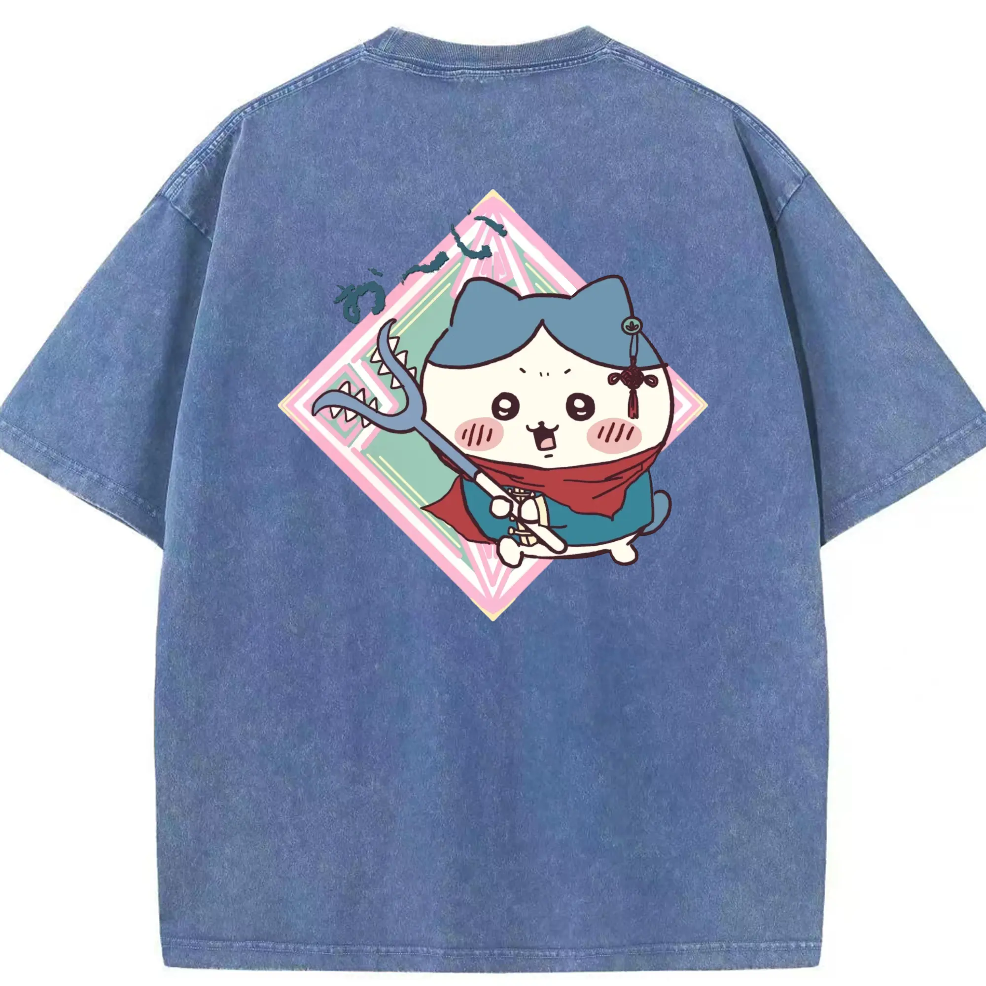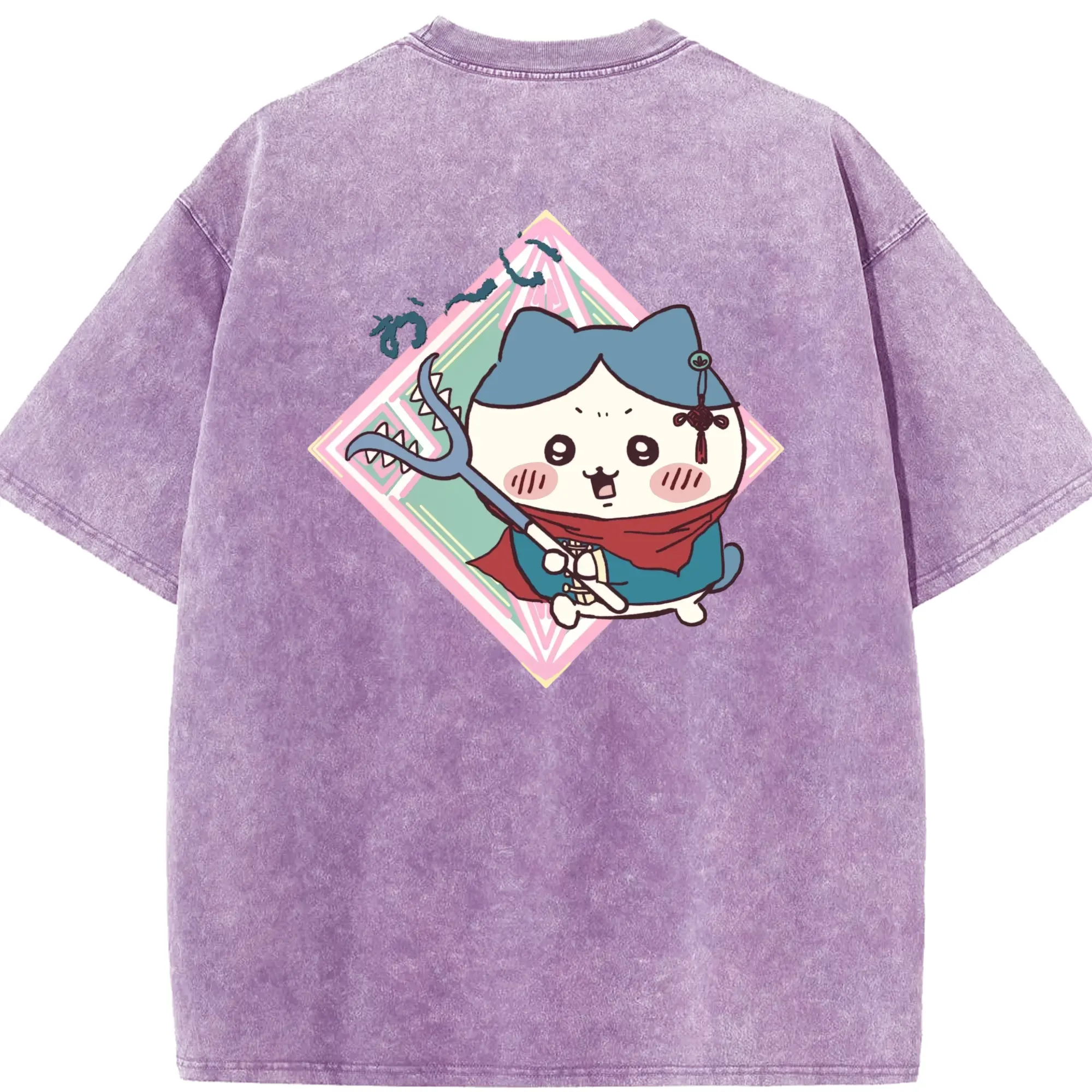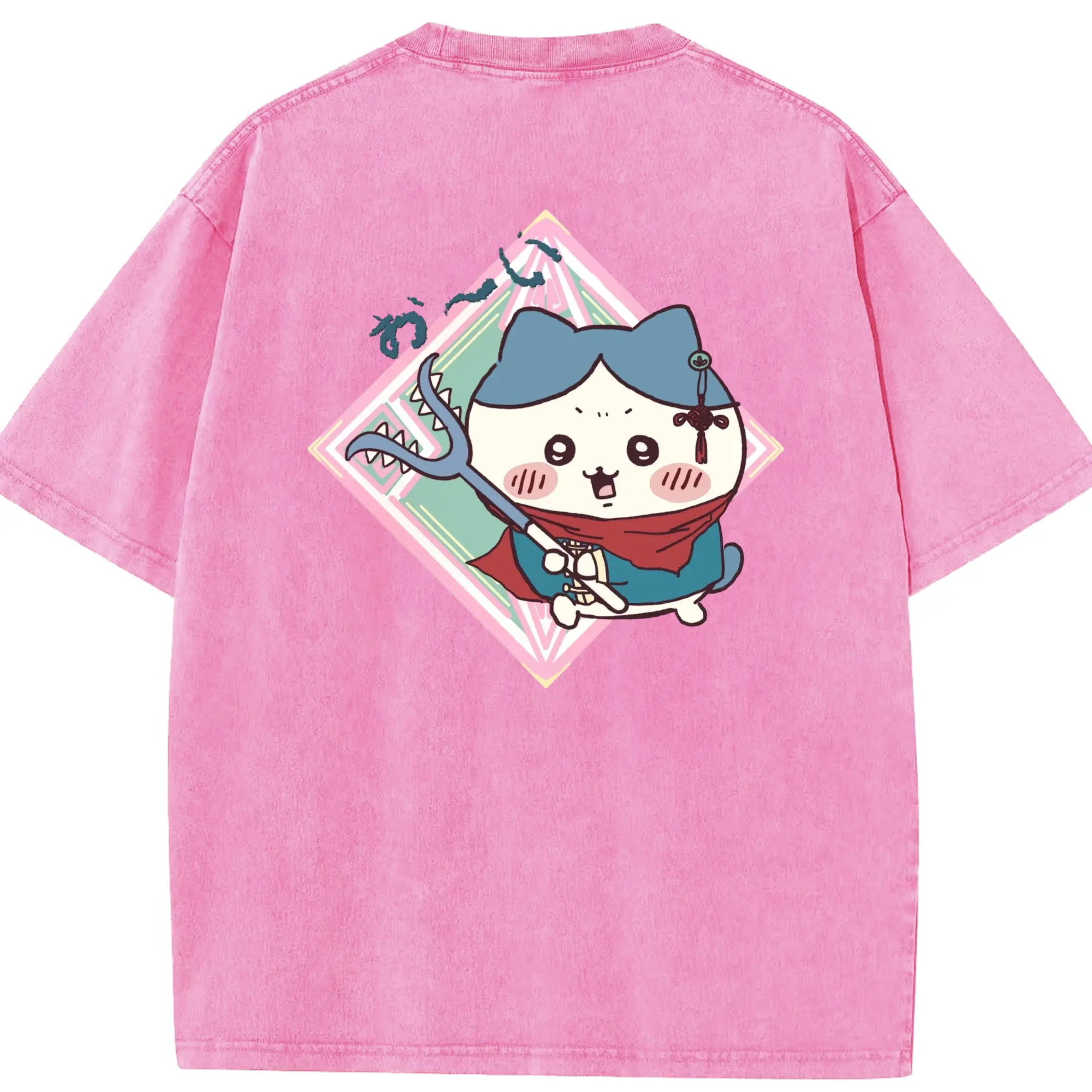 ちい が わ グッズ ハチワレ - 綿100% ヴィンテージ風 半袖Tシャツ ・ フロントプリント ・ 柔らか肌触り ・ 通気性 快適 ・ スポーツ カジュアル 外出用