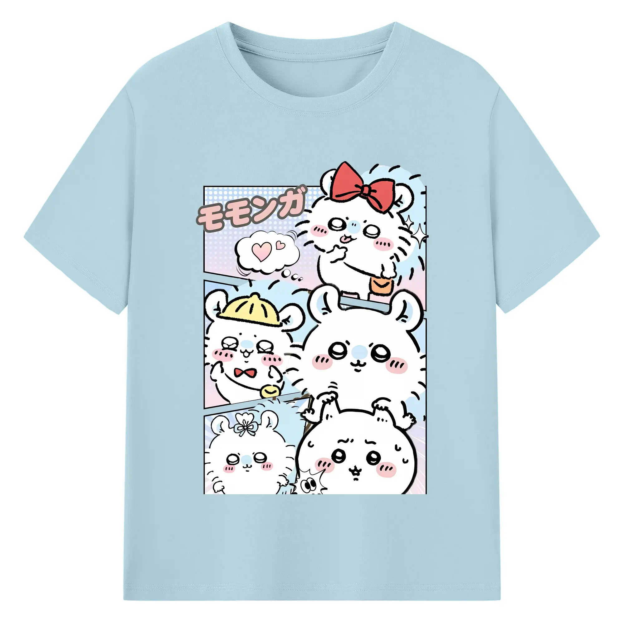 ちい が わ グッズ モモンガ - 綿100% 半袖Tシャツ ・ バックプリント ・ 快適 通気性 ・ 日常使い 散歩 スポーツ用