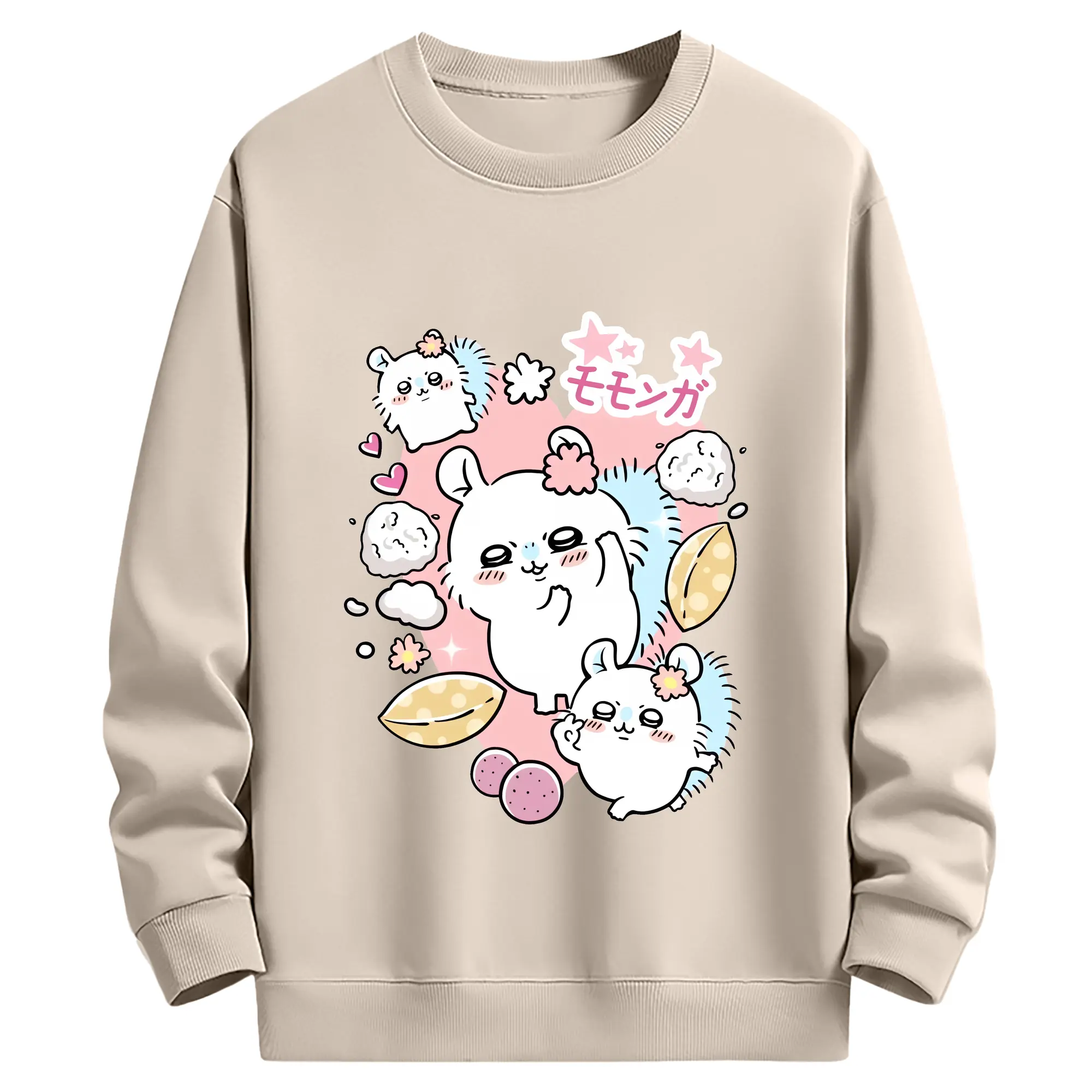 ちい が わ グッズ モモンガ - 薄手 クルーネック スウェット 裏毛260g · ポリエステル 春秋向け カジュアル 男女兼用 · トレーナー デイリー スポーツ 散歩に最適
