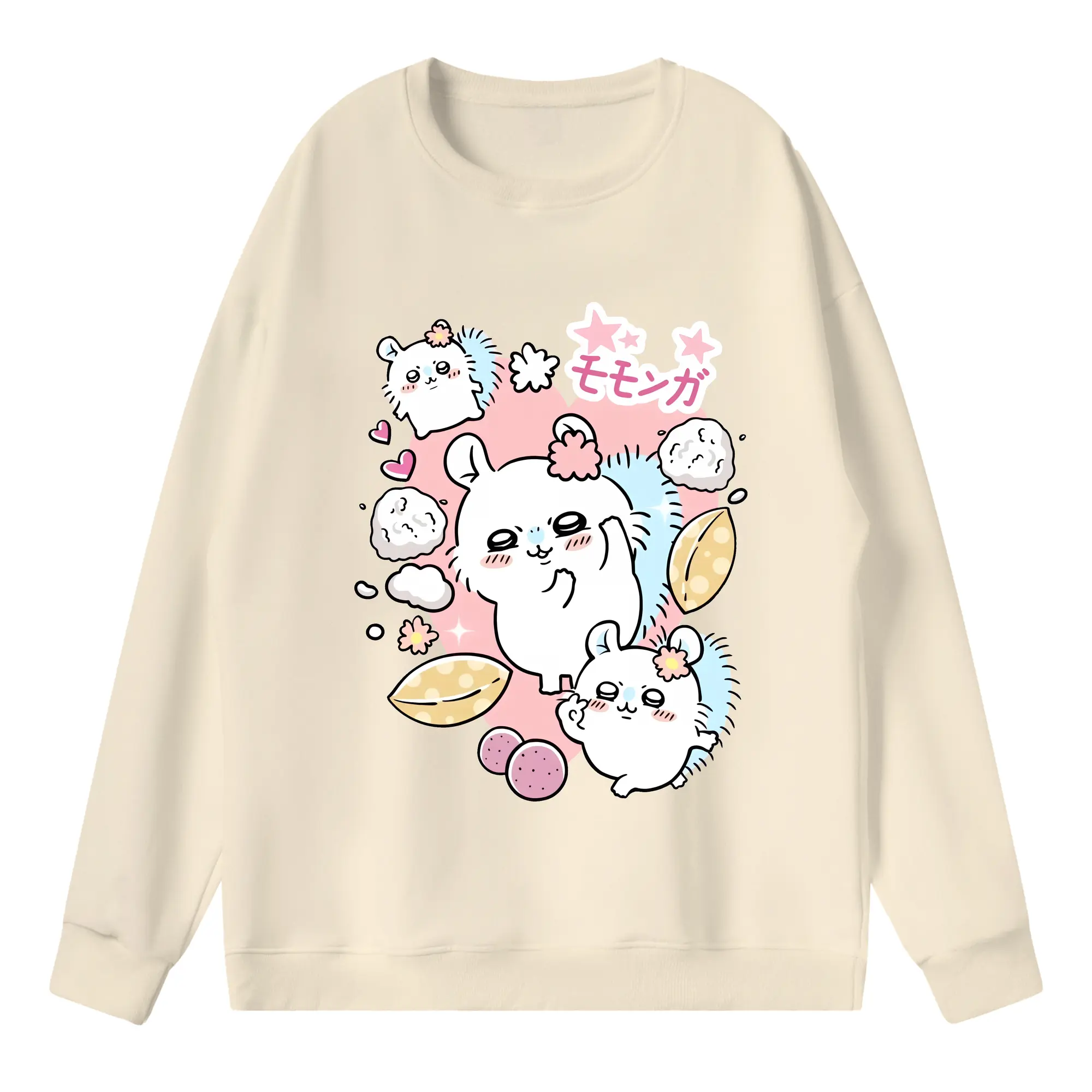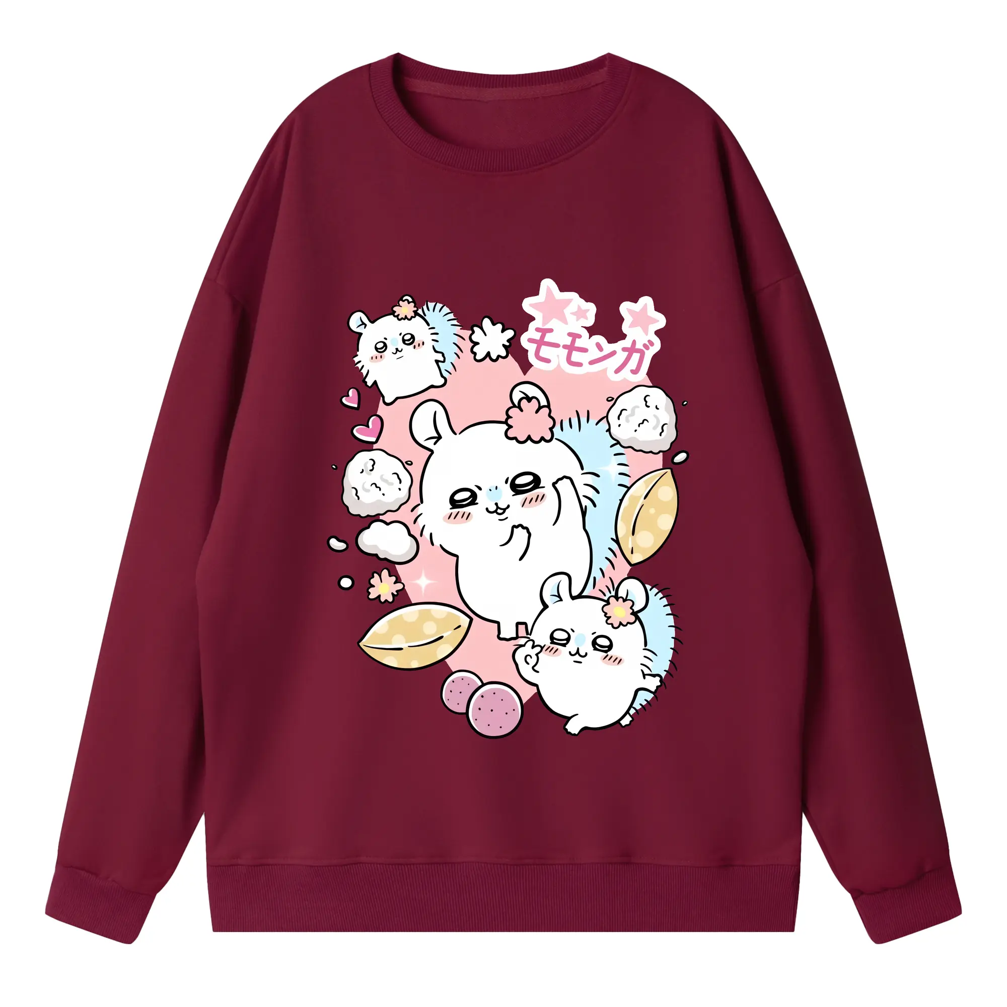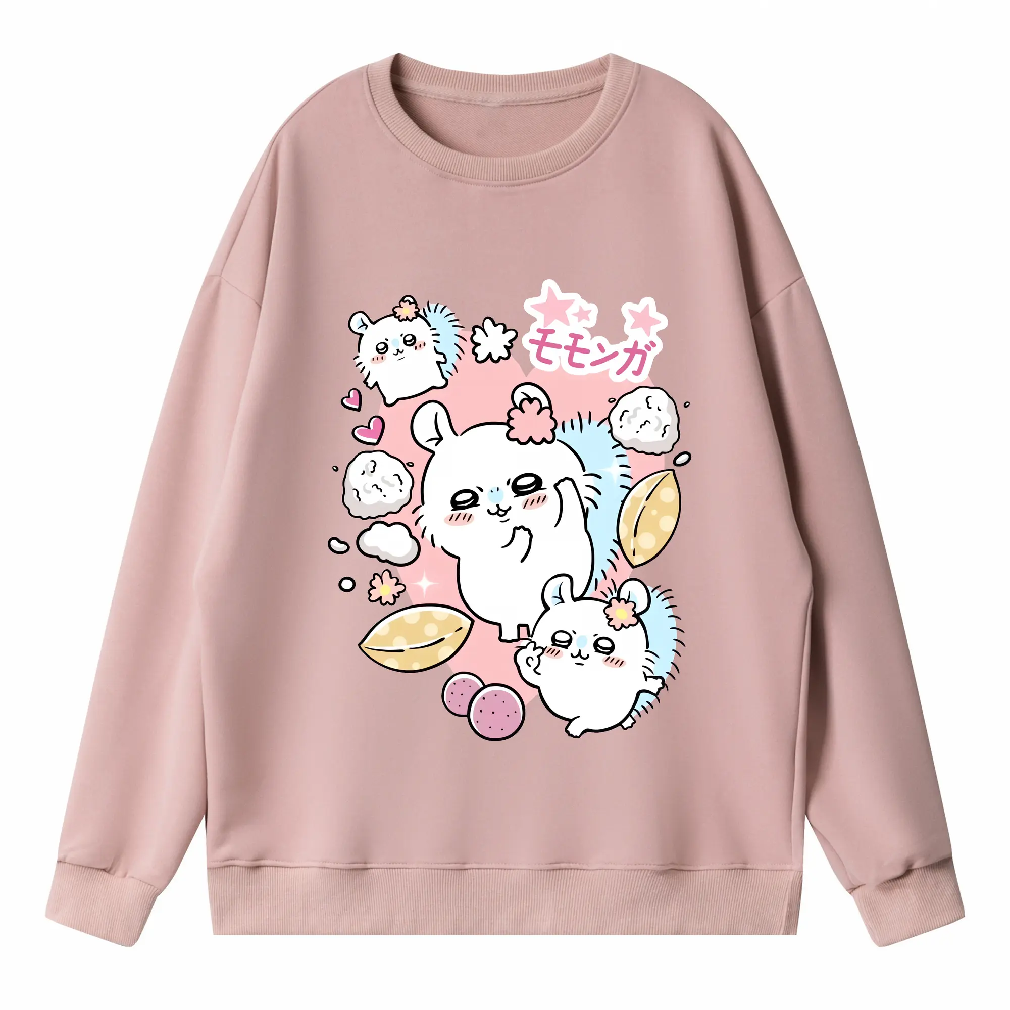 ちい が わ グッズ モモンガ - 高品質 クルーネック スウェット ・ コットン59% ポリエステル41% ・ ユニセックス 長袖 トレーナー ・ カジュアル デイリー スポーツ 散歩用