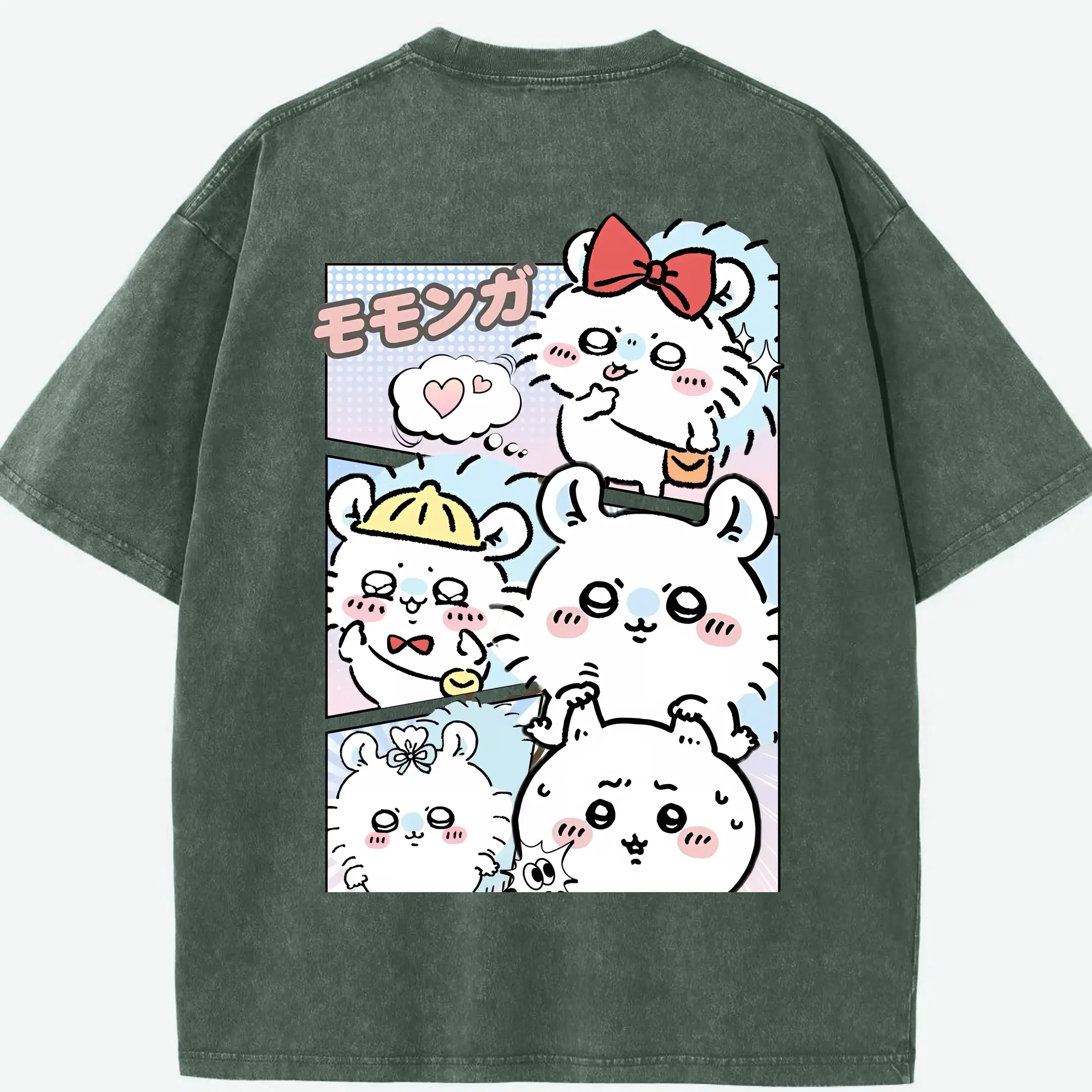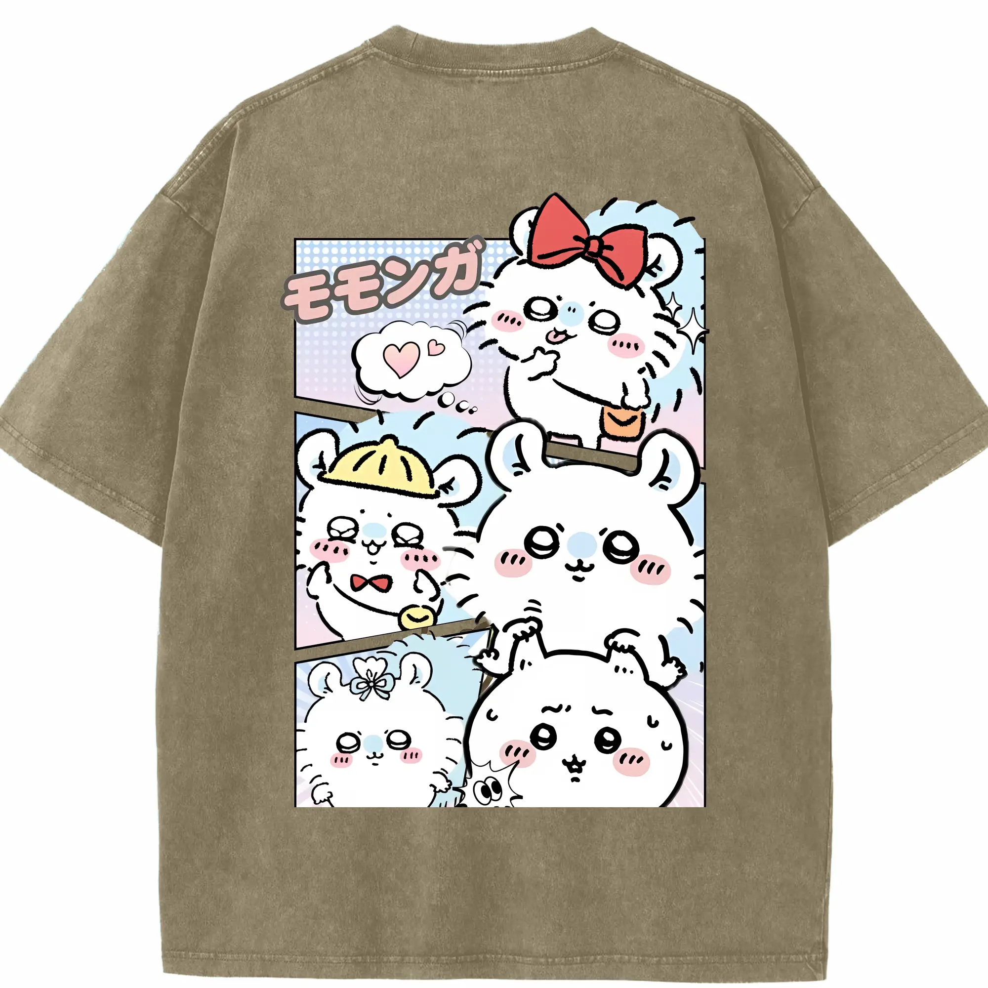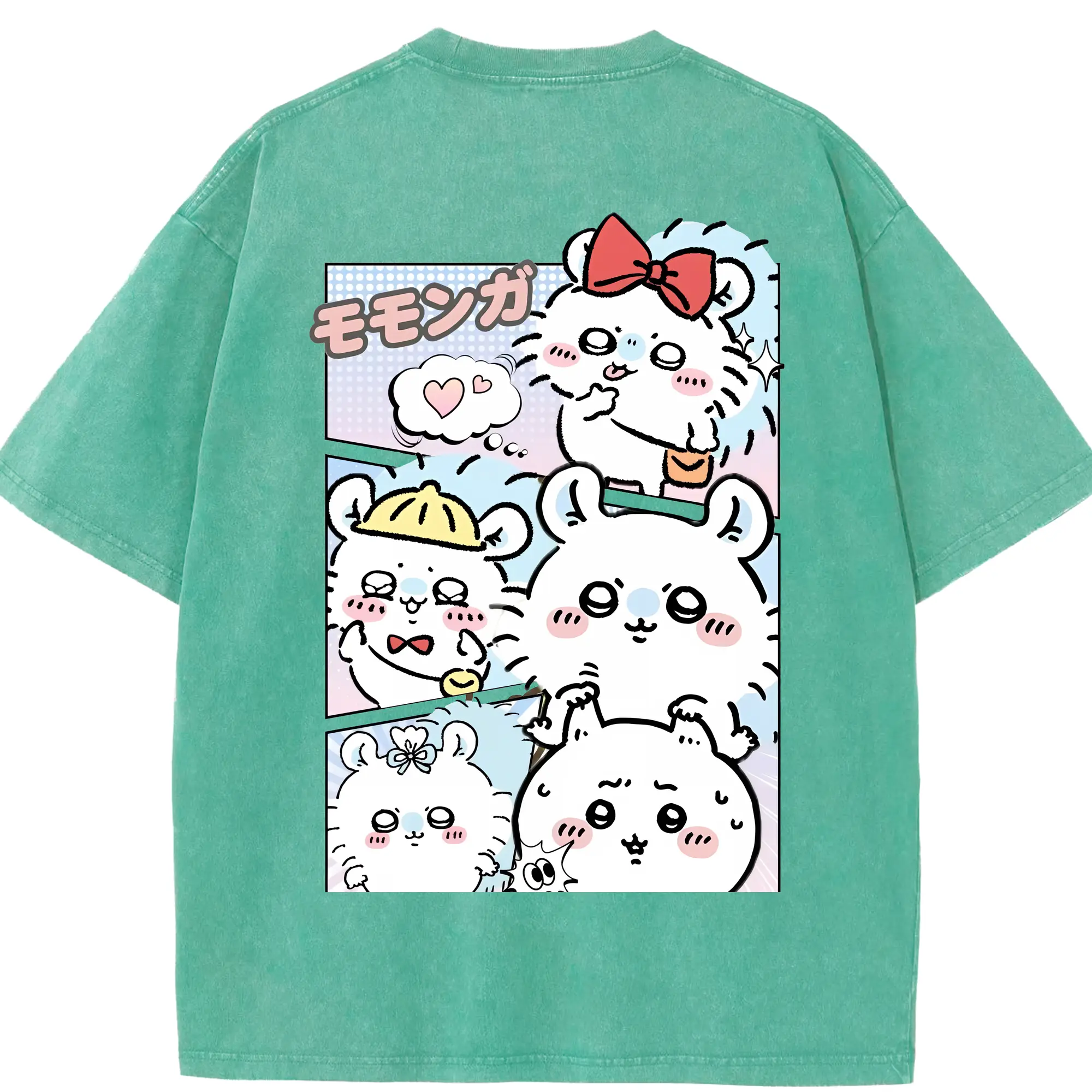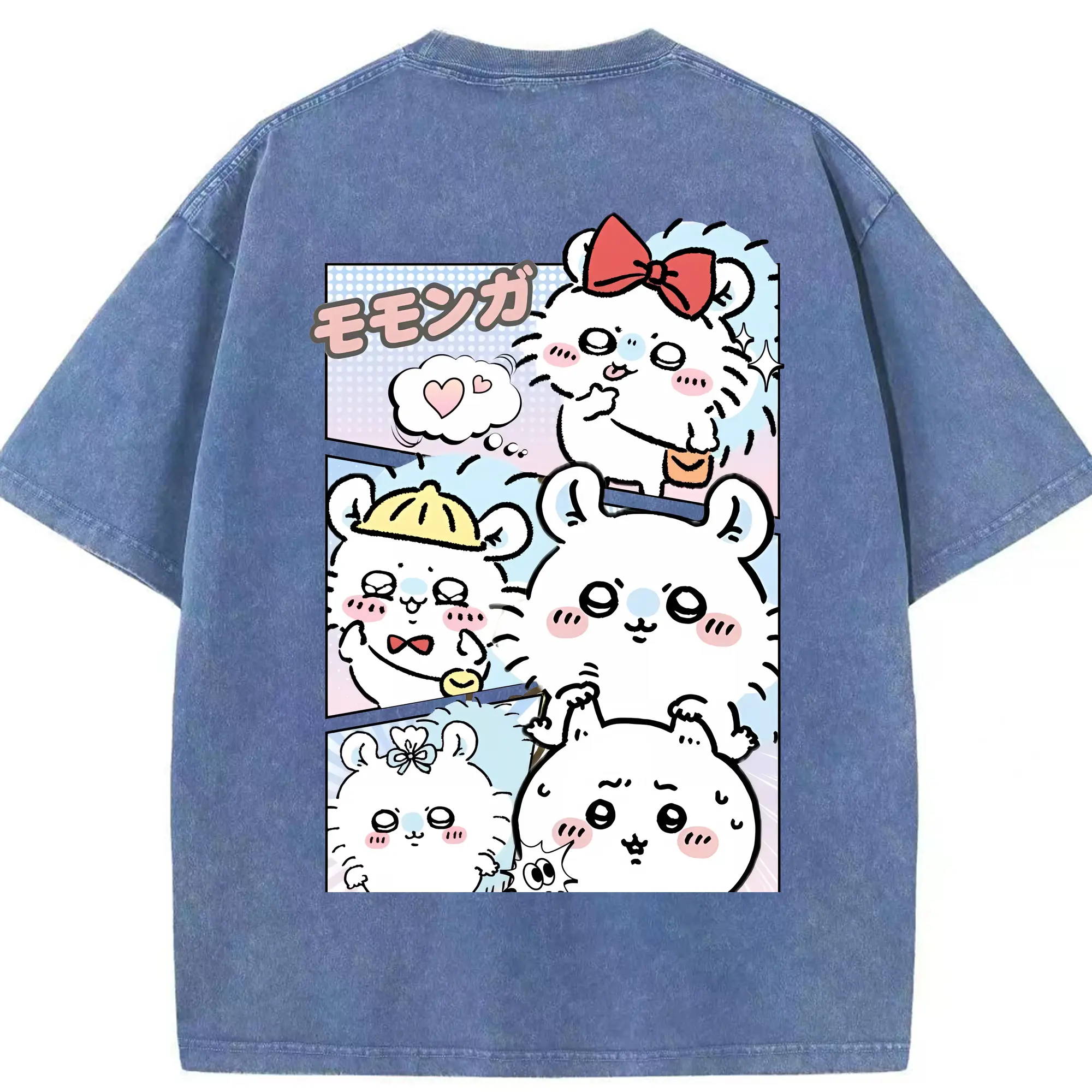 ちい が わ グッズ モモンガ - 綿100% ヴィンテージ風 半袖Tシャツ ・ フロントプリント ・ 柔らか肌触り ・ 通気性 快適 ・ スポーツ カジュアル 外出用