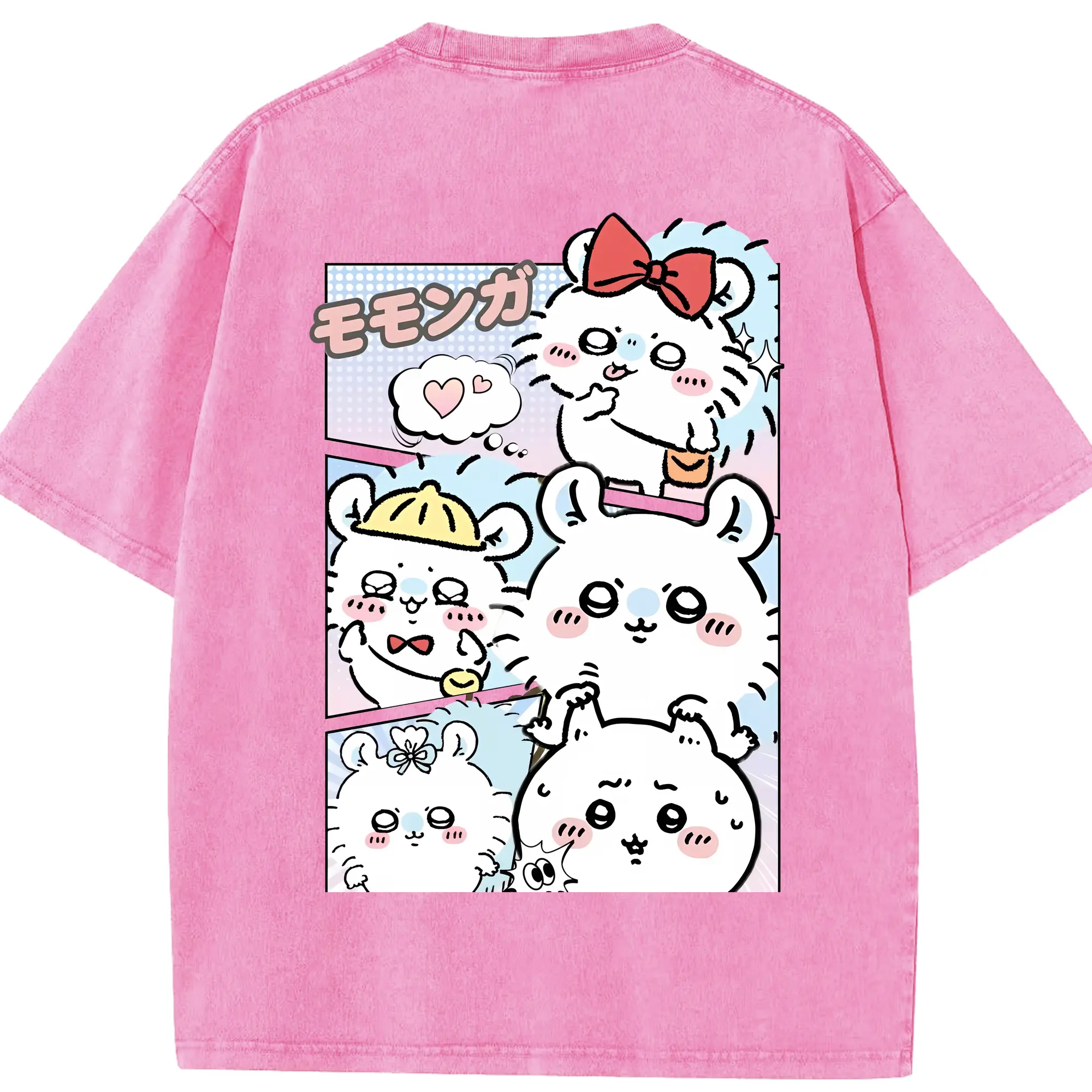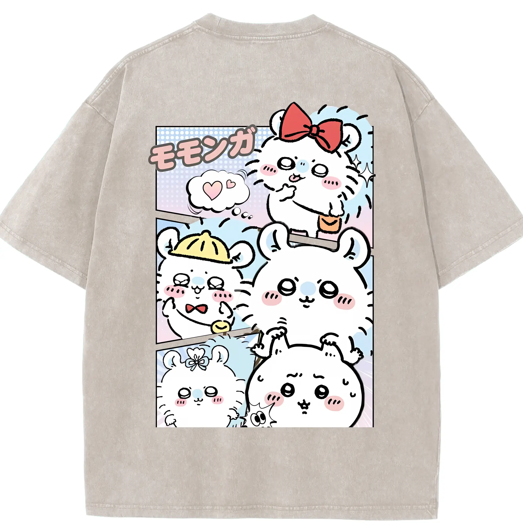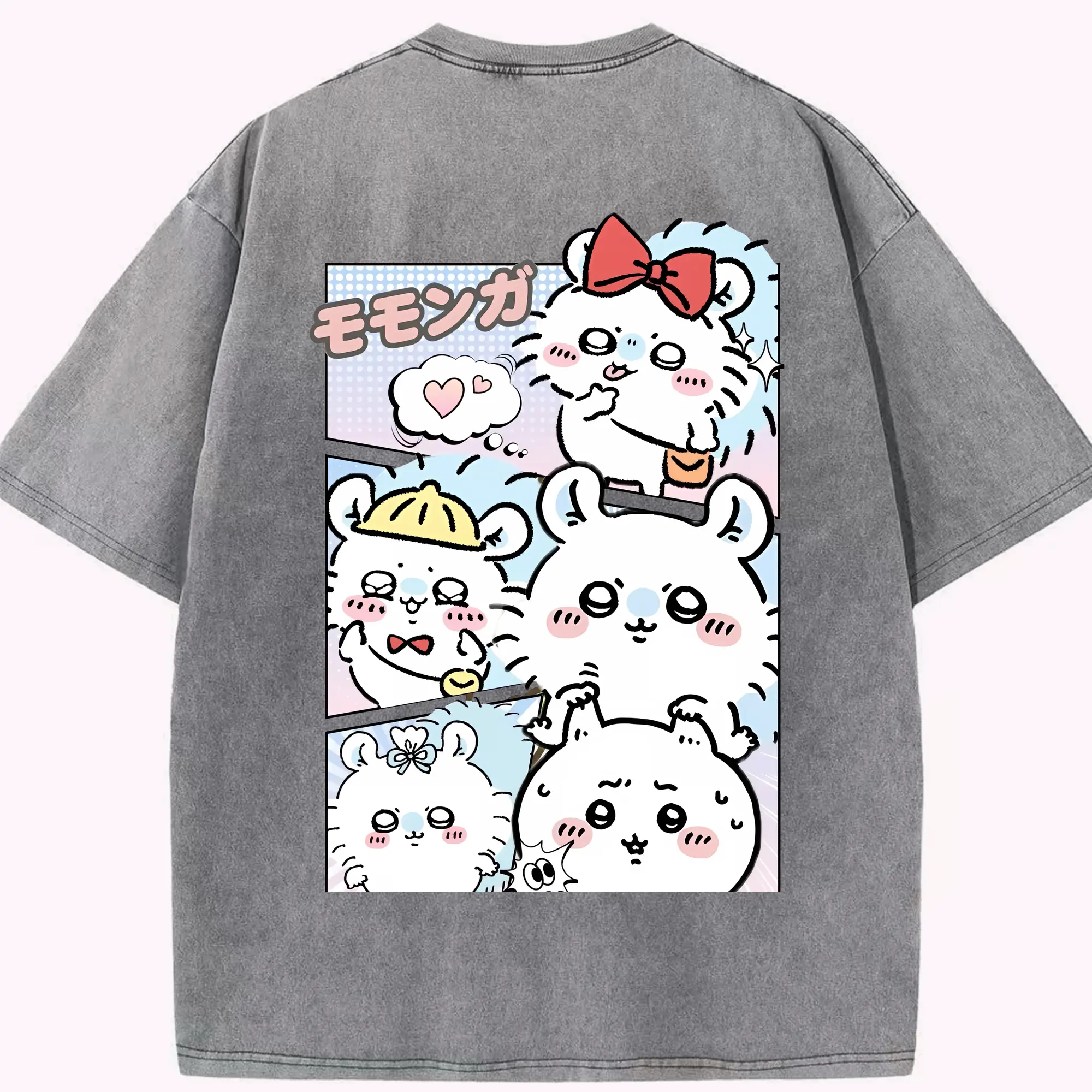ちい が わ グッズ モモンガ - 綿100% 半袖Tシャツ ・ バックプリント ・ 快適 通気性 ・ 日常使い 散歩 スポーツ用