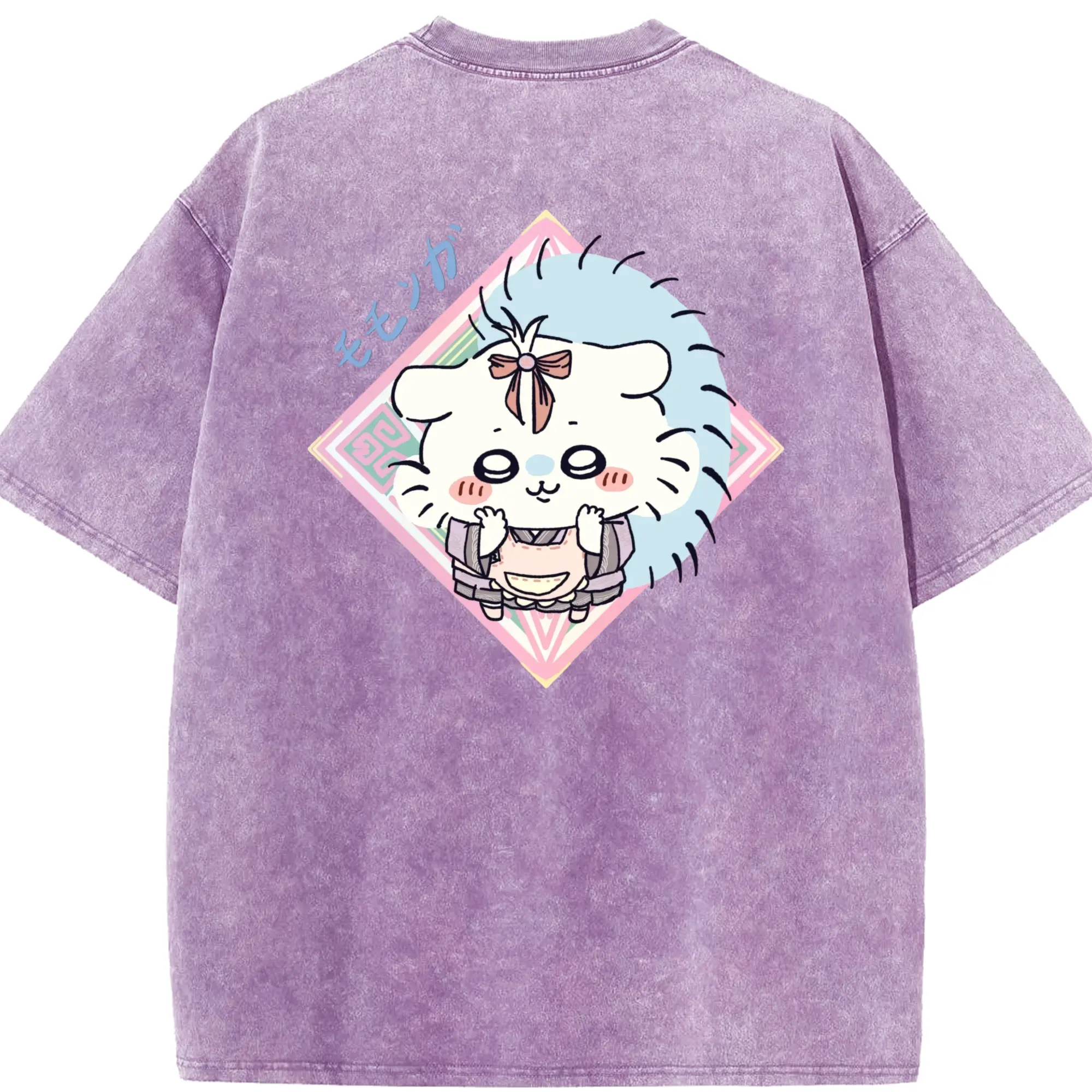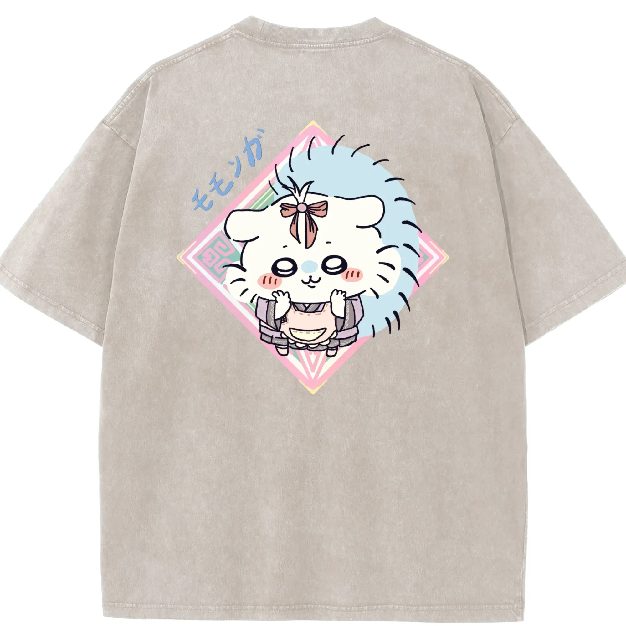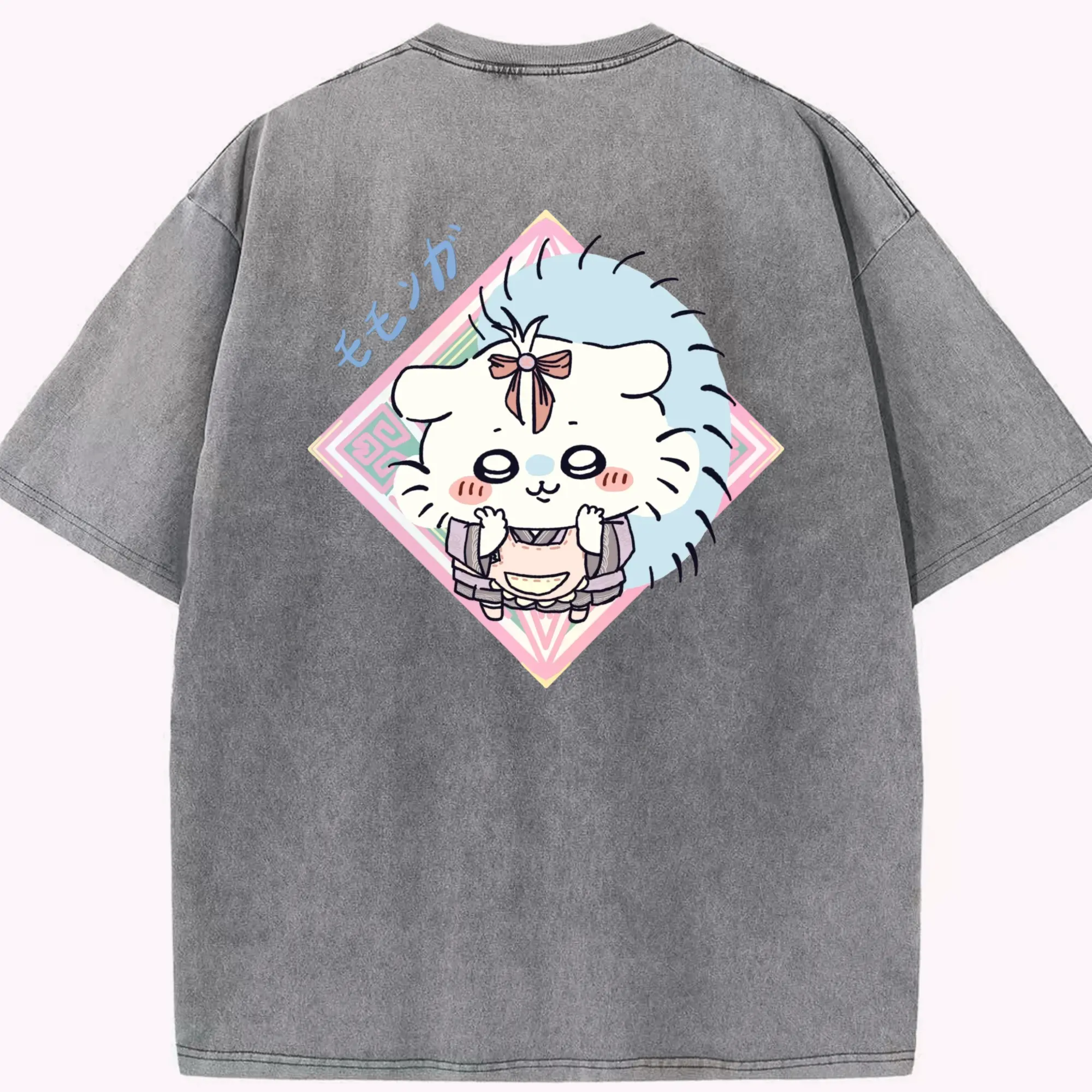ちい が わ グッズ モモンガ - 綿100% ヴィンテージ風 半袖Tシャツ ・ フロントプリント ・ 柔らか肌触り ・ 通気性 快適 ・ スポーツ カジュアル 外出用