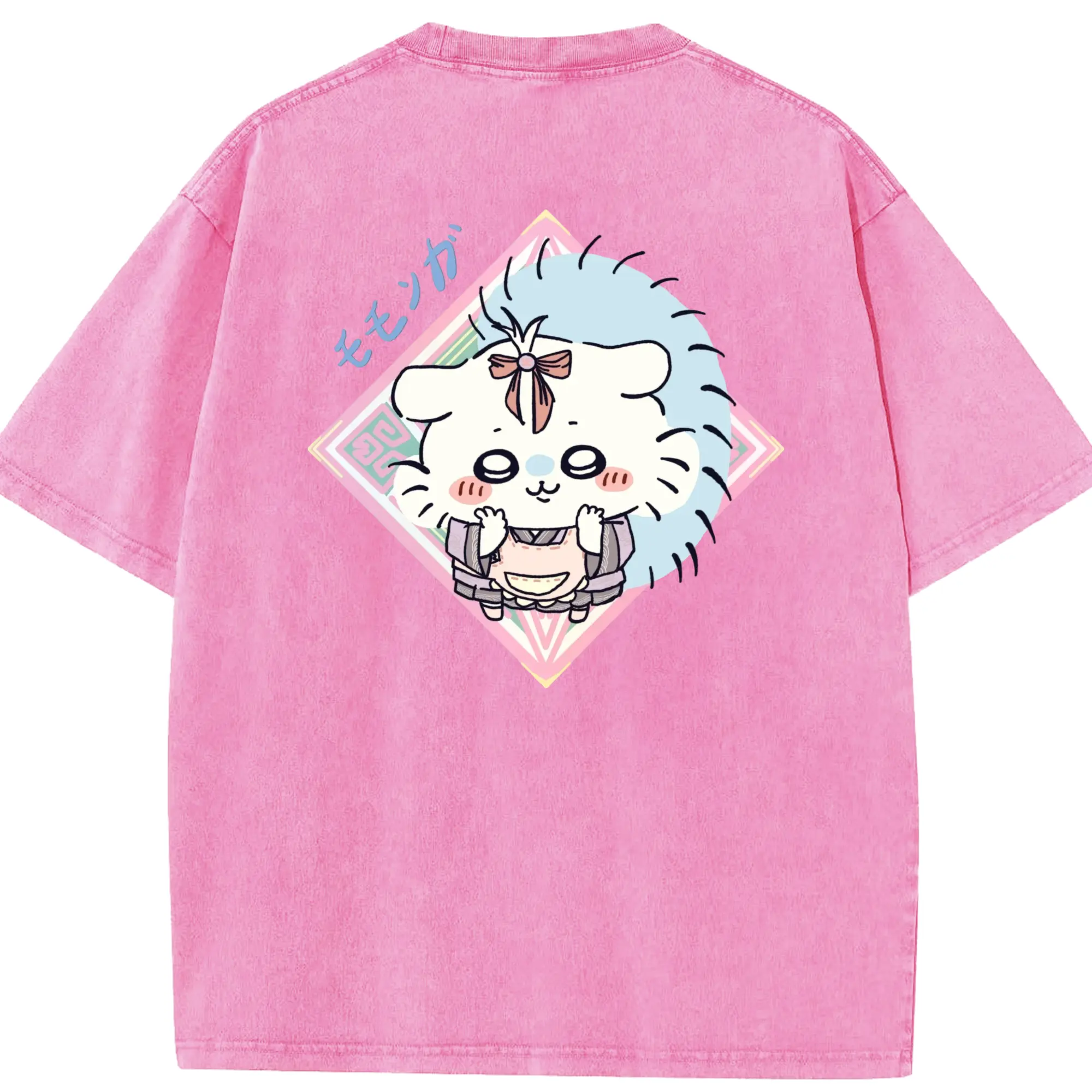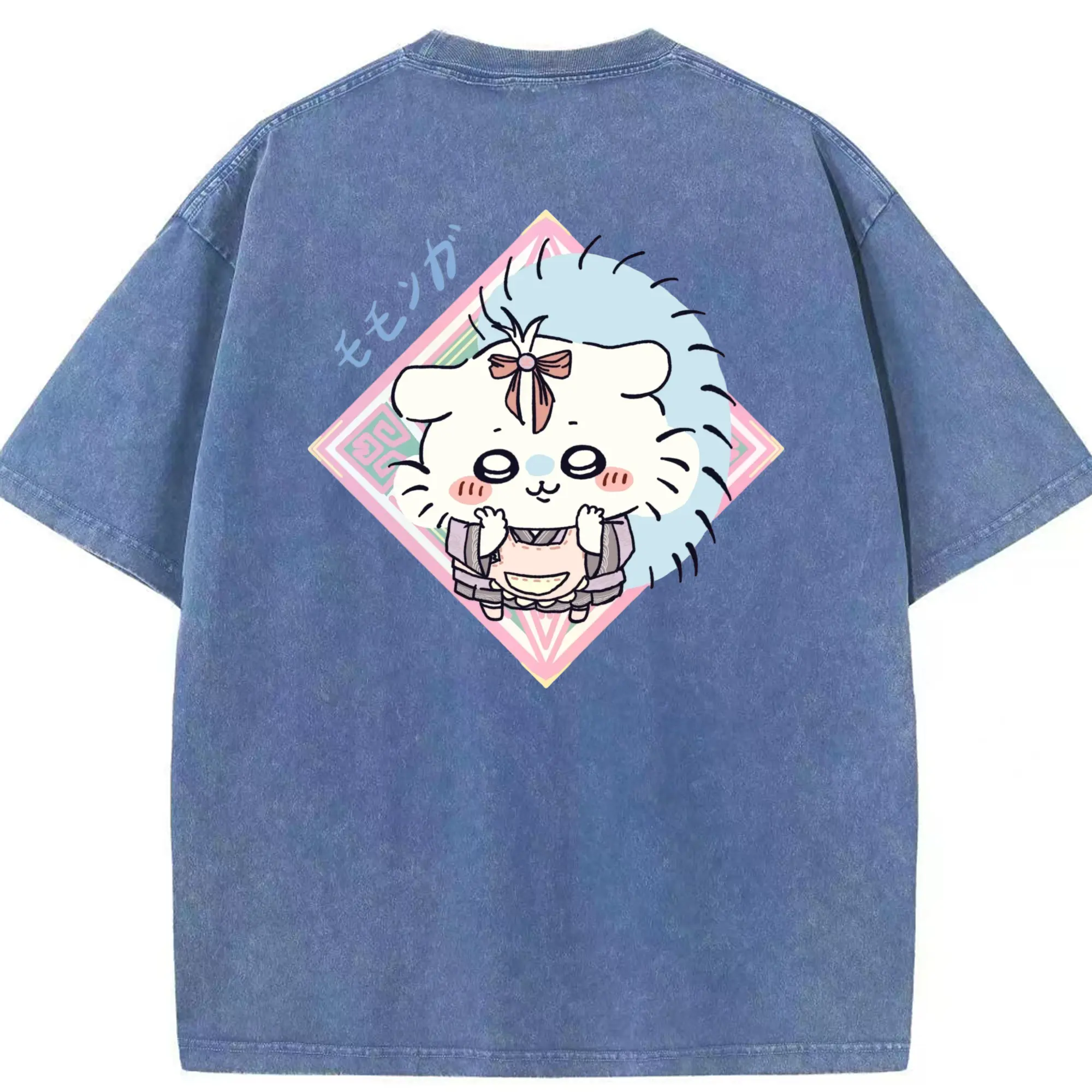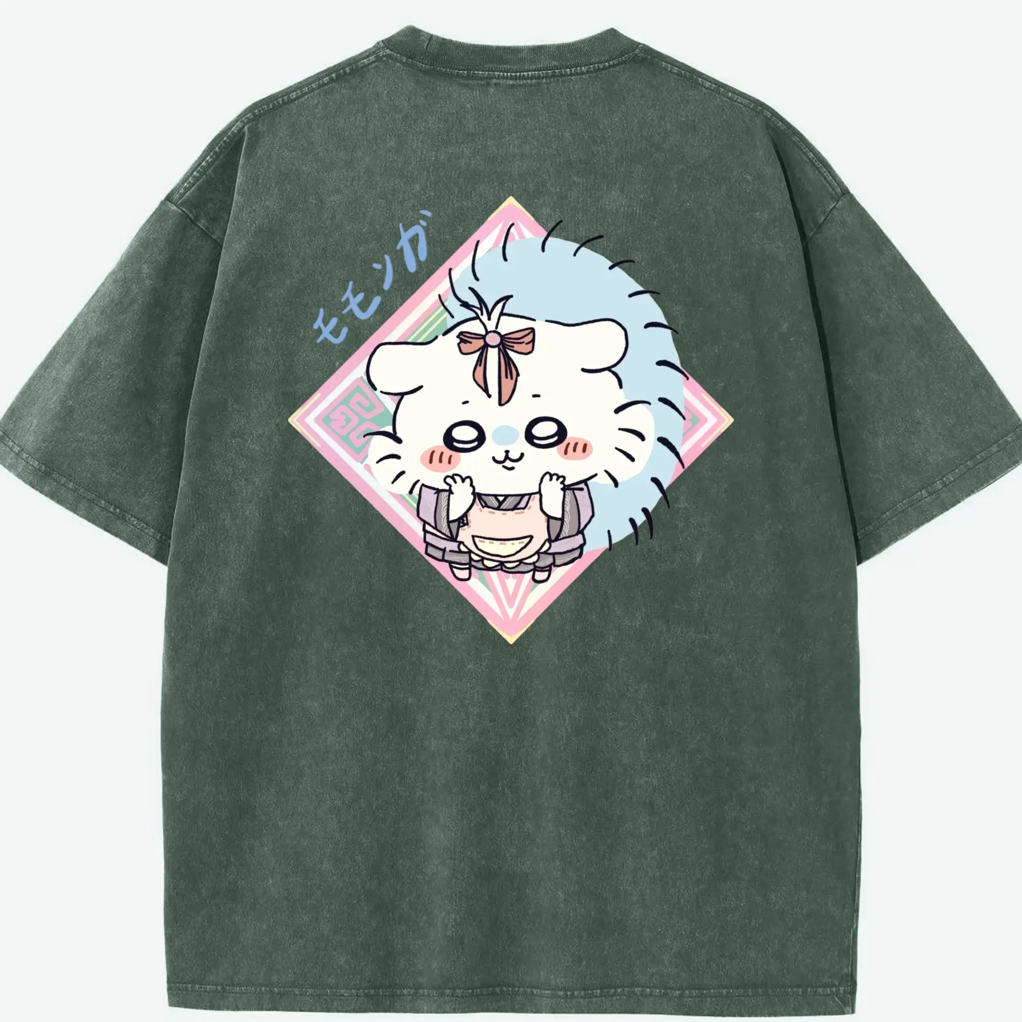 ちい が わ グッズ モモンガ - 綿100% ヴィンテージ風 半袖Tシャツ ・ フロントプリント ・ 柔らか肌触り ・ 通気性 快適 ・ スポーツ カジュアル 外出用