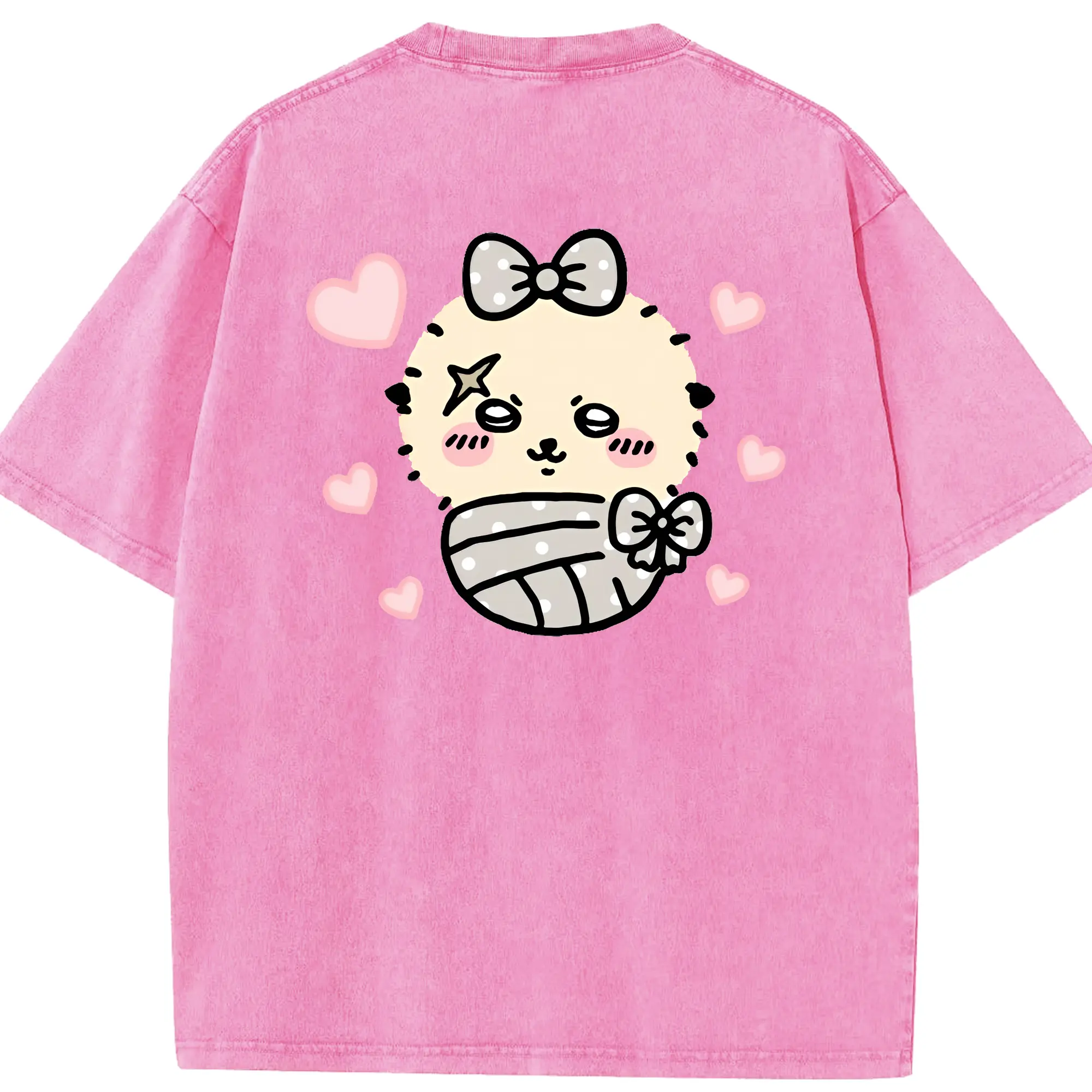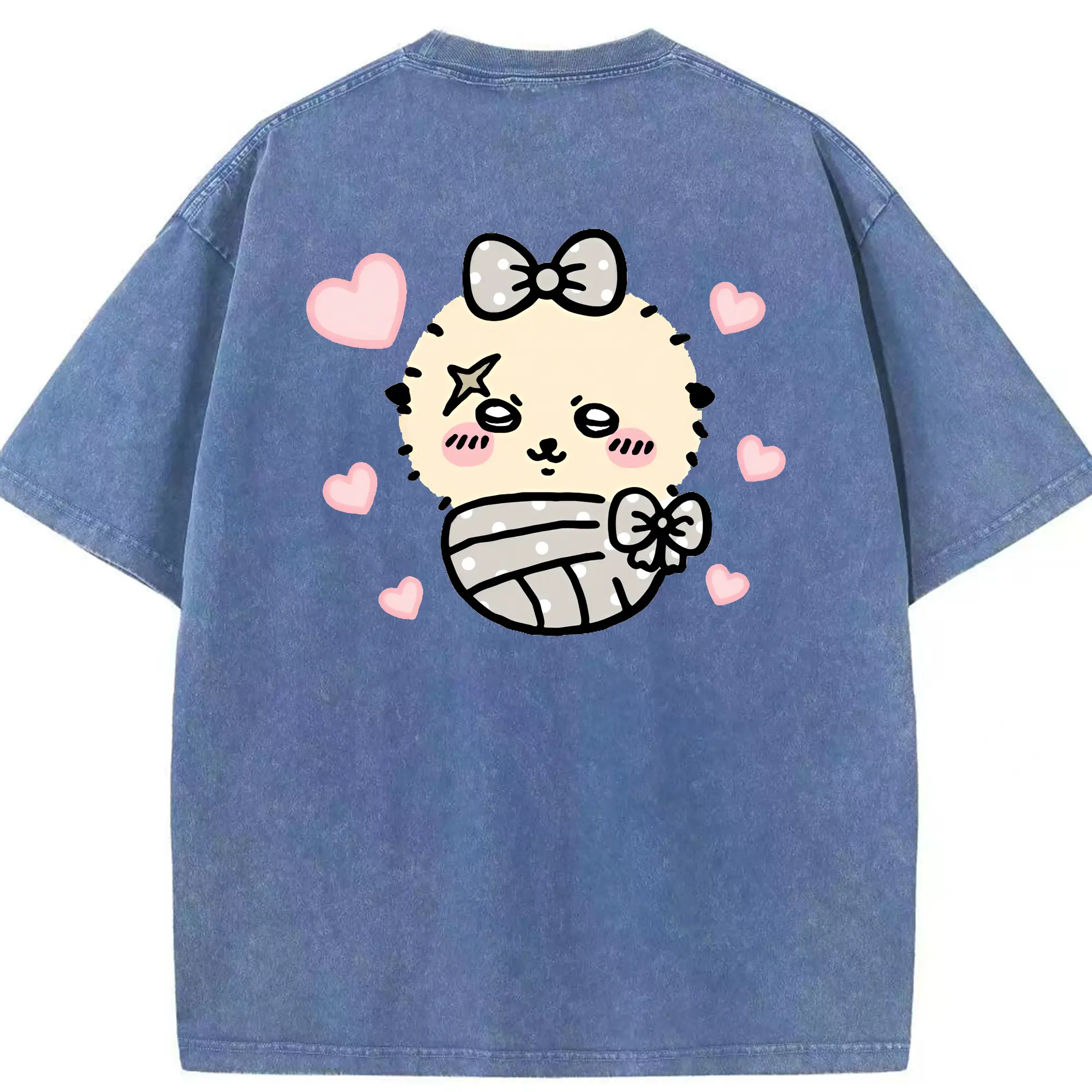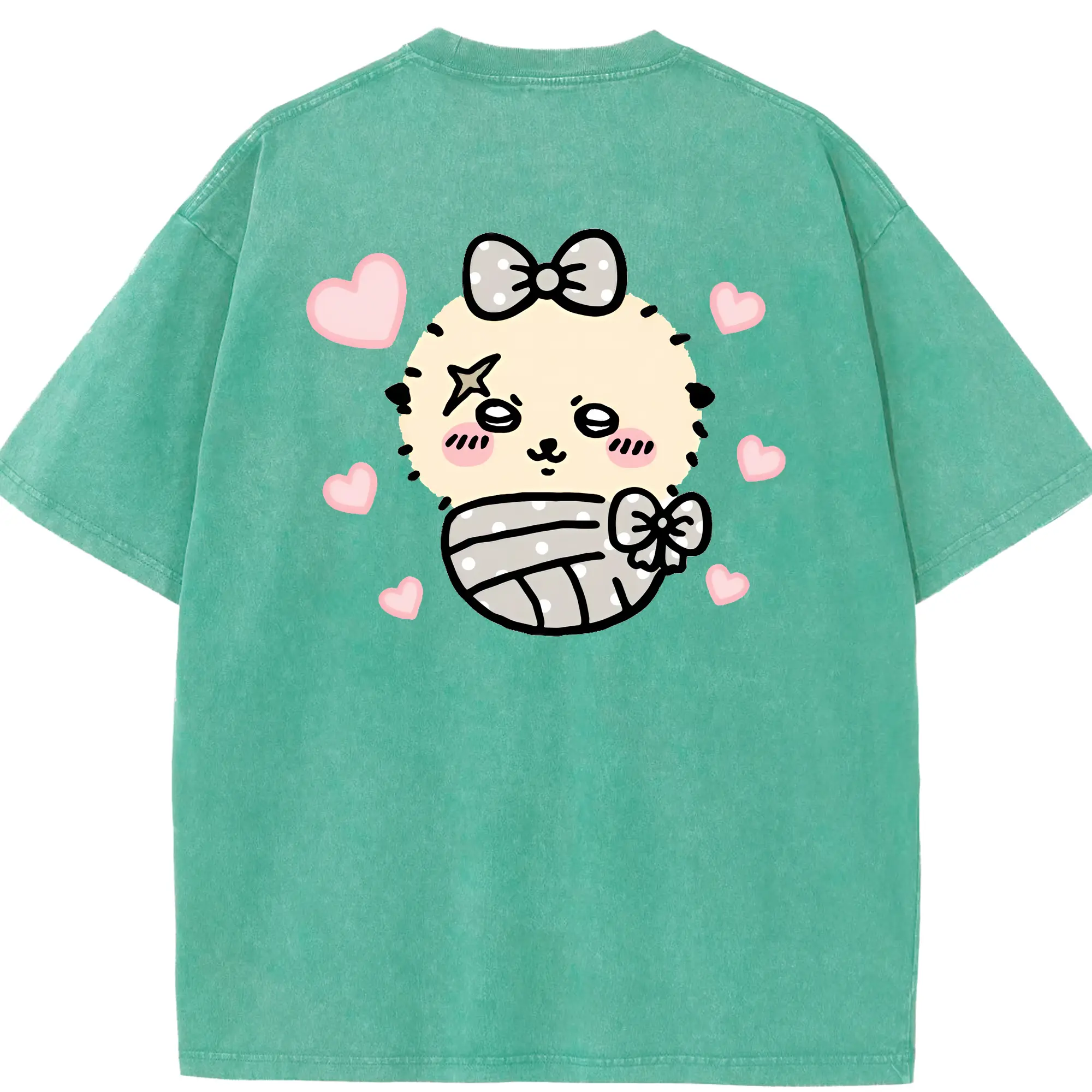 ちい が わ グッズ ラッコ - 綿100% ヴィンテージ風 半袖Tシャツ ・ フロントプリント ・ 柔らか肌触り ・ 通気性 快適 ・ スポーツ カジュアル 外出用