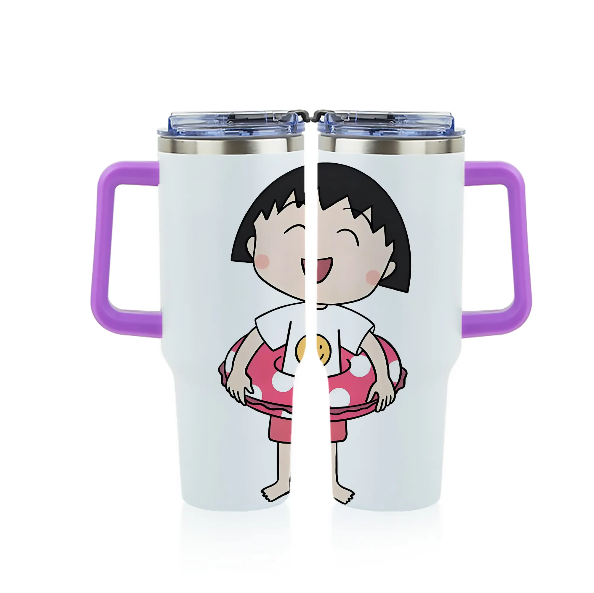 ちびまる子ちゃん グッズ さくら ももこ - 1200mL フルプリント車用タンブラー ・ 304ステンレス 内側 ・ 201ステンレス 外側 ・ 保温 保冷 ・ 通勤 ドライブ アウトドア用