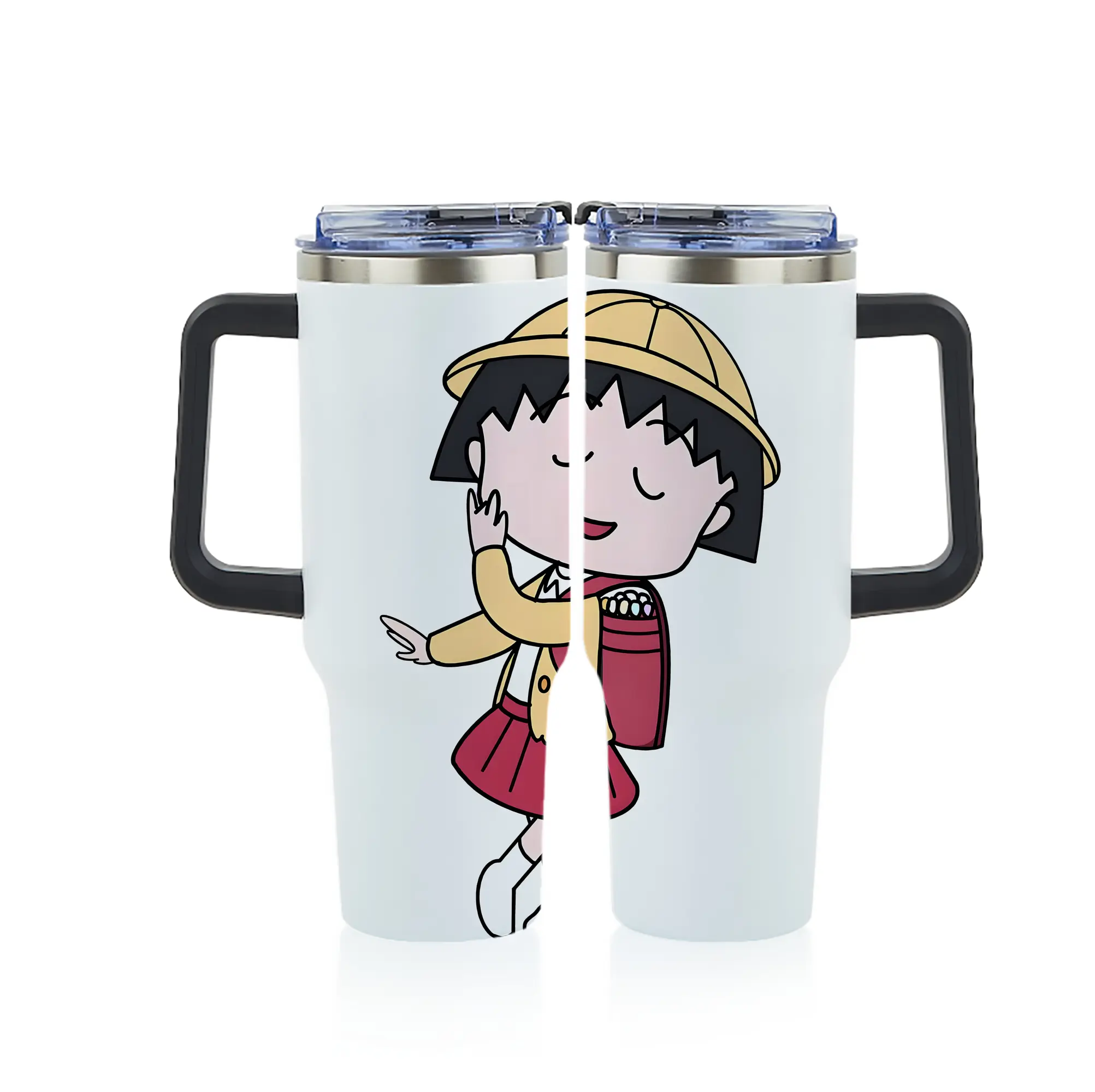 ちびまる子ちゃん グッズ さくら ももこ - 1200mL フルプリント車用タンブラー ・ 304ステンレス 内側 ・ 201ステンレス 外側 ・ 保温 保冷 ・ 通勤 ドライブ アウトドア用