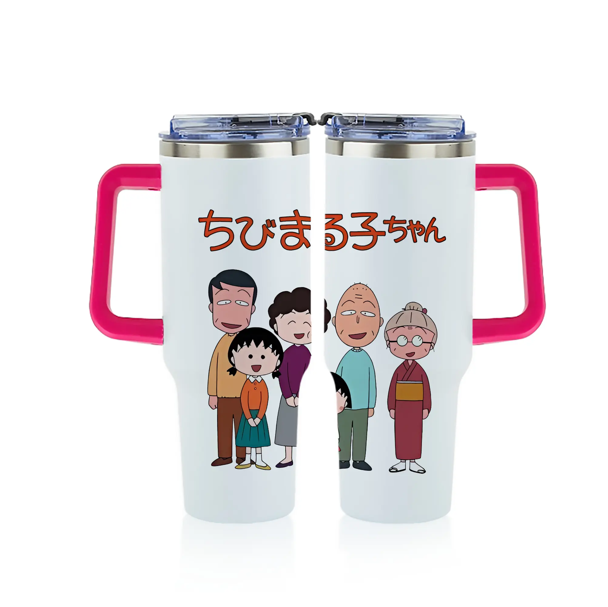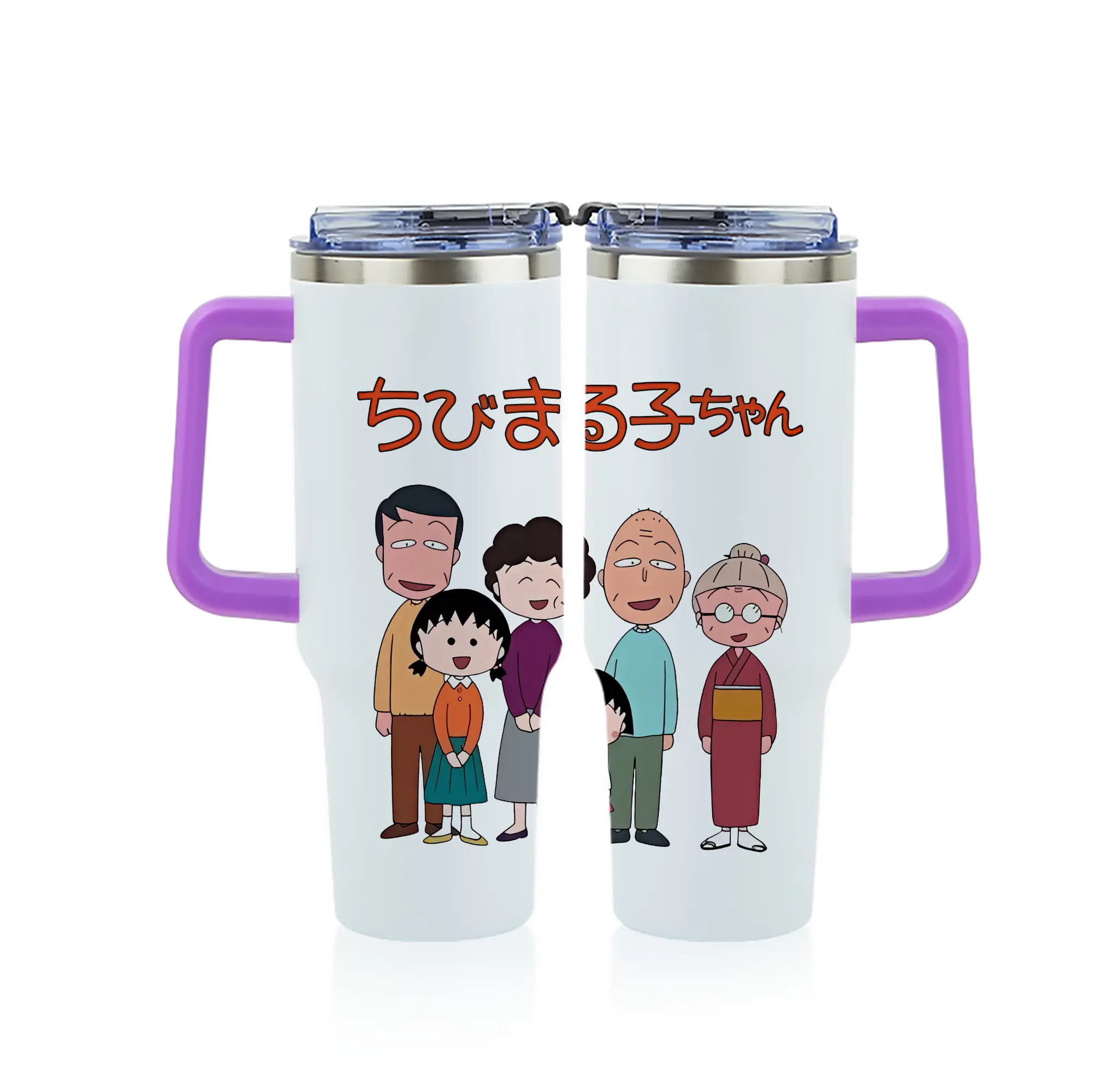 ちびまる子ちゃん グッズ さくら ももこ - 1200mL フルプリント車用タンブラー ・ 304ステンレス 内側 ・ 201ステンレス 外側 ・ 保温 保冷 ・ 通勤 ドライブ アウトドア用