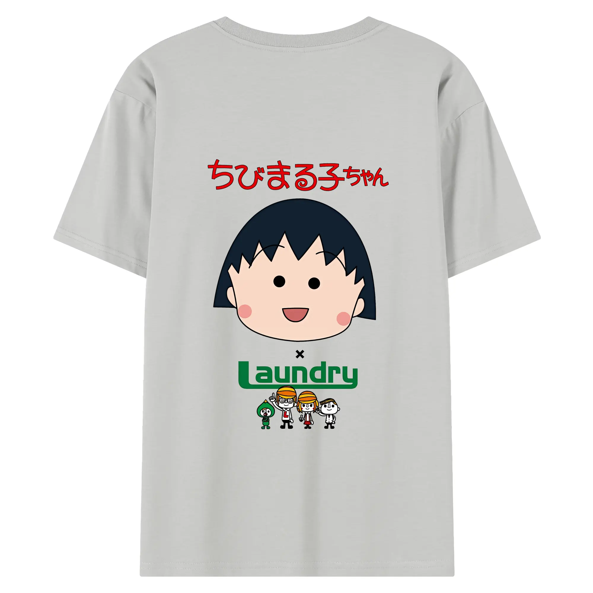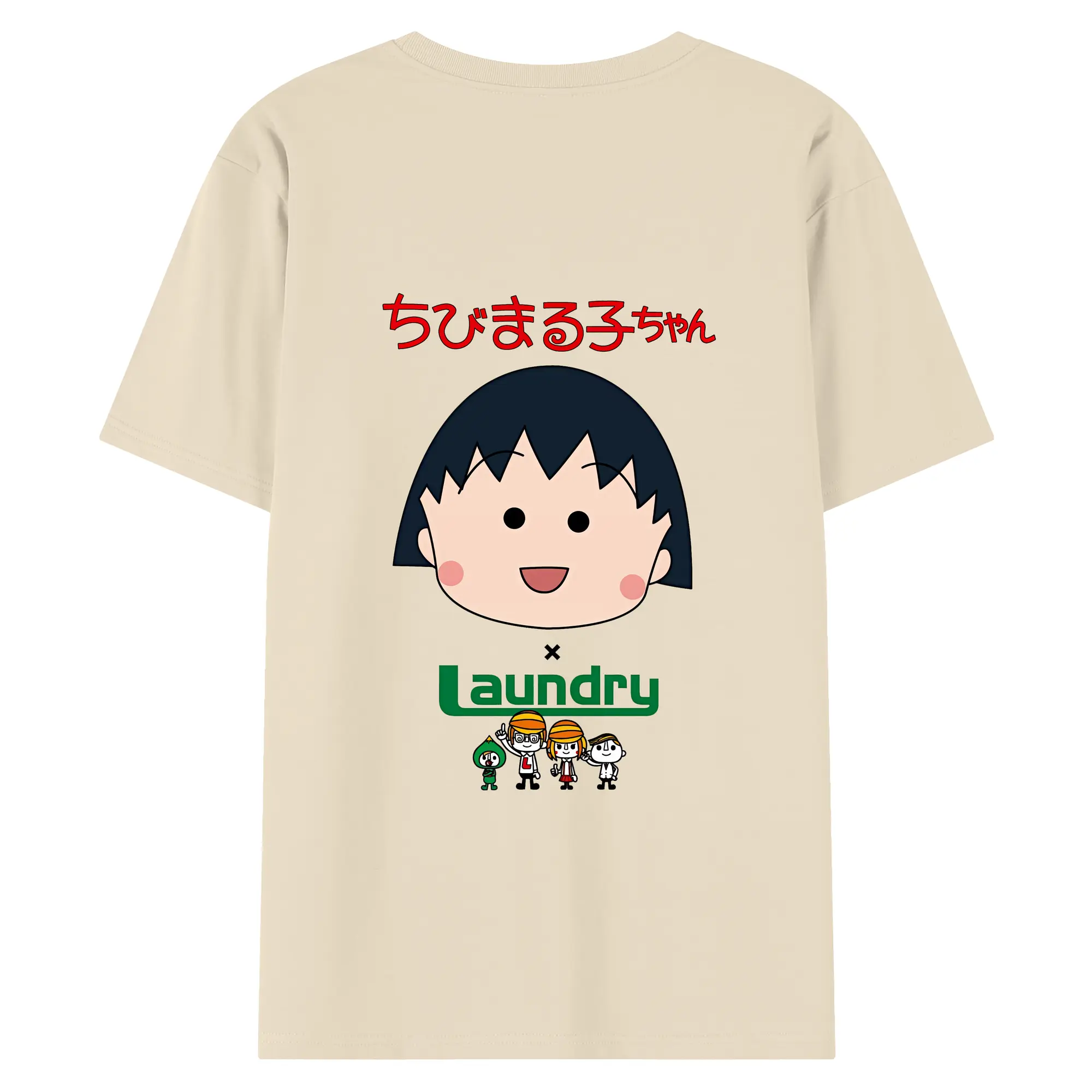 ちびまる子ちゃん グッズ さくら ももこ - 綿100% ヴィンテージ風 半袖Tシャツ ・ 背面プリント ・ 柔らか肌触り ・ 通気性 快適 ・ スポーツ カジュアル 外出用
