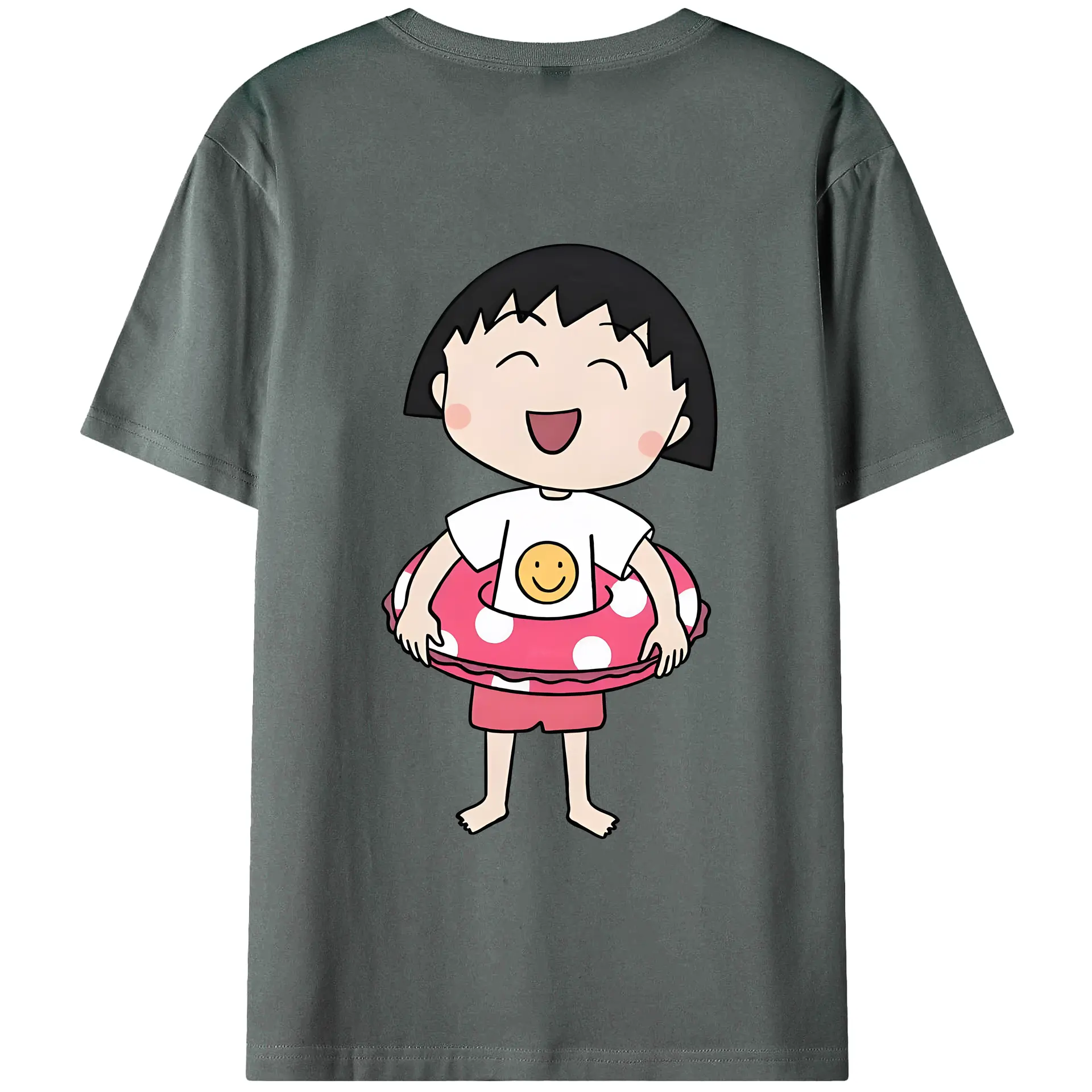 ちびまる子ちゃん グッズ さくら ももこ - 綿100% 半袖Tシャツ ・ フロントプリント ・ 快適 通気性 ・ 日常使い 散歩 スポーツ用