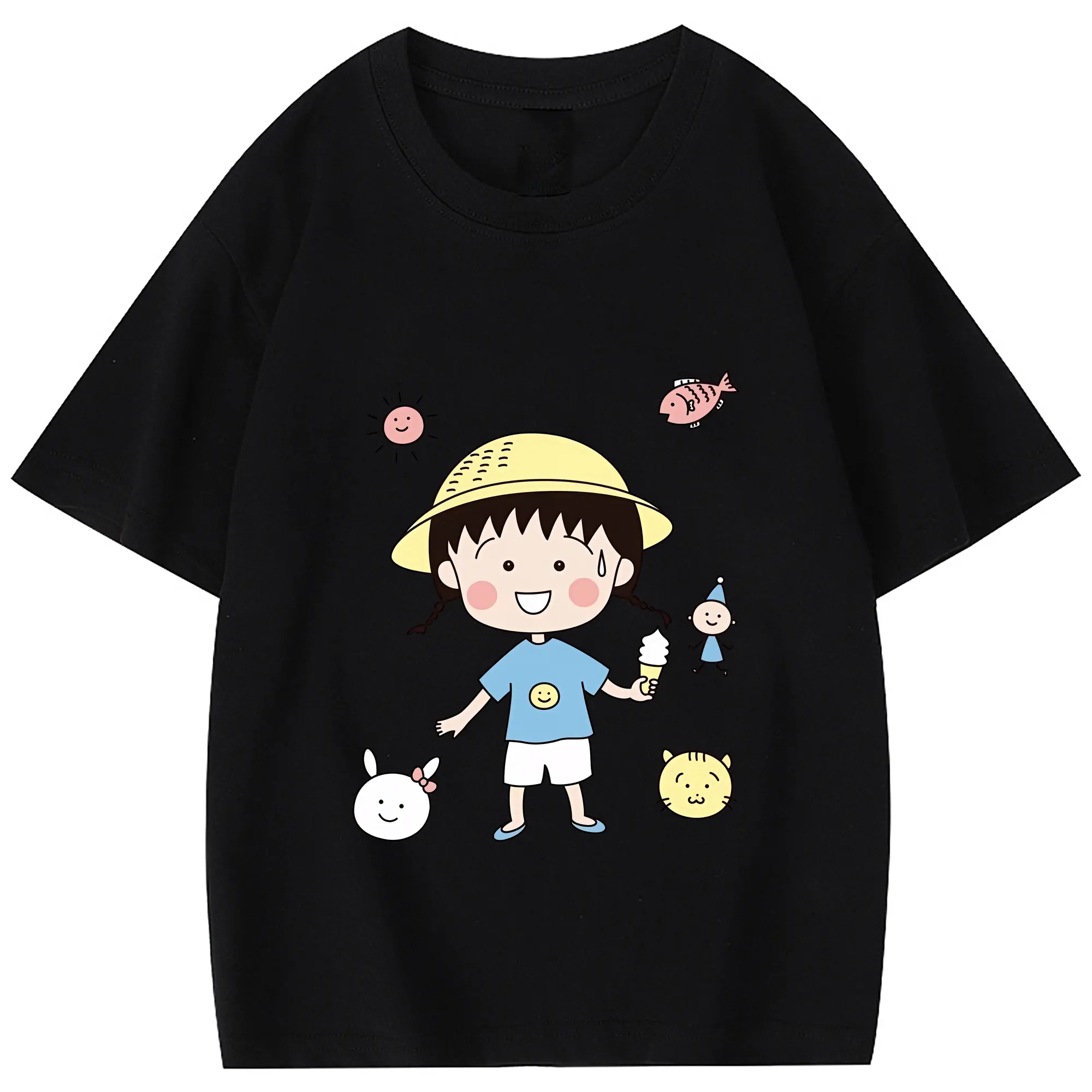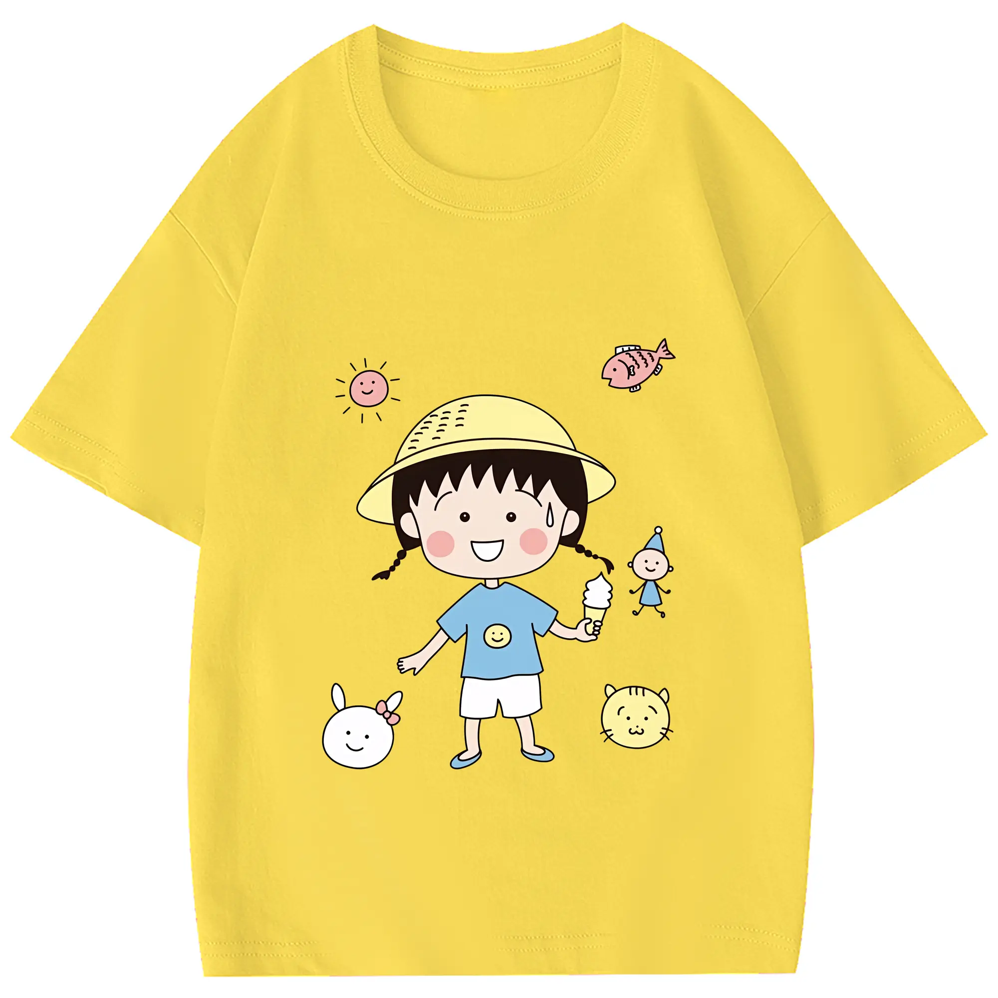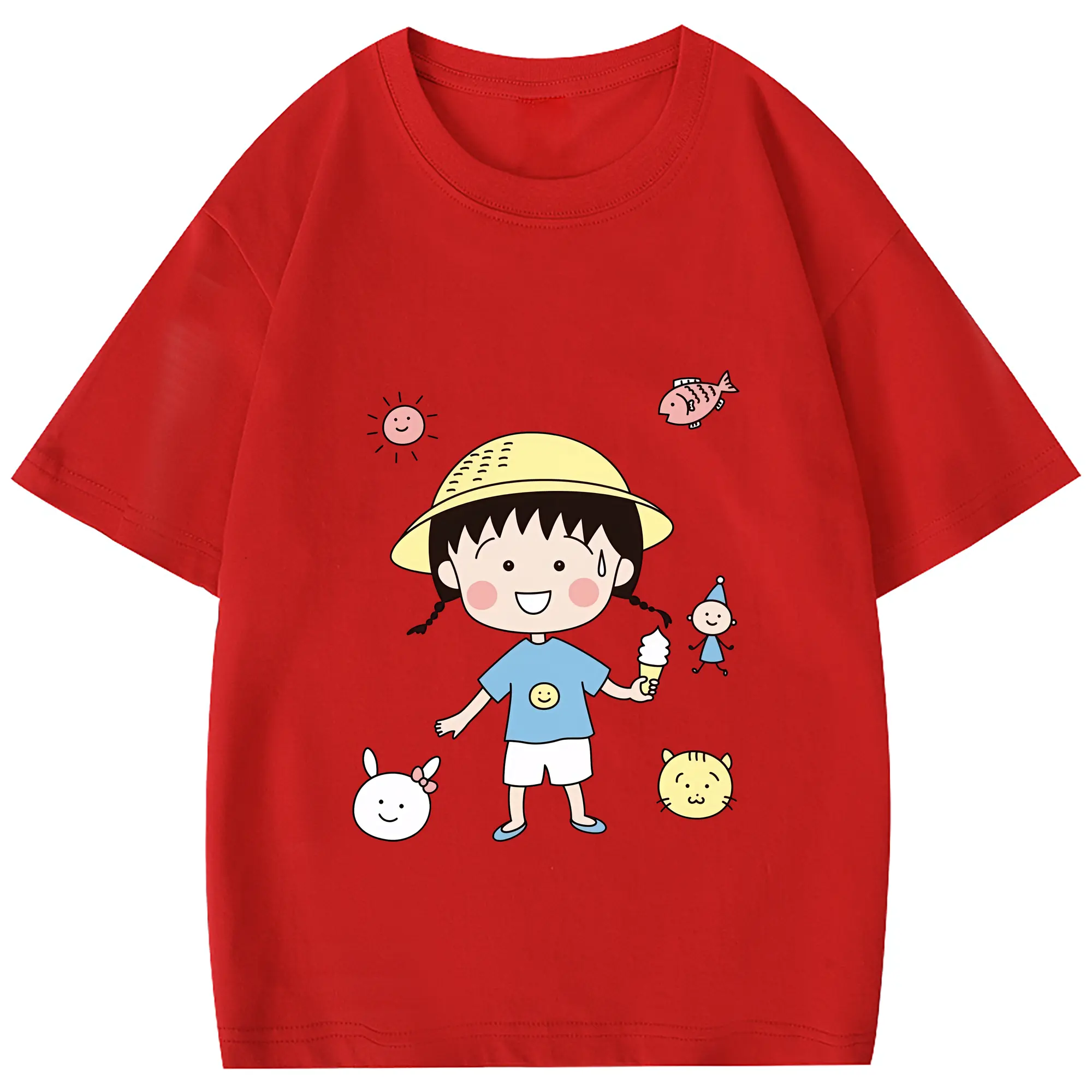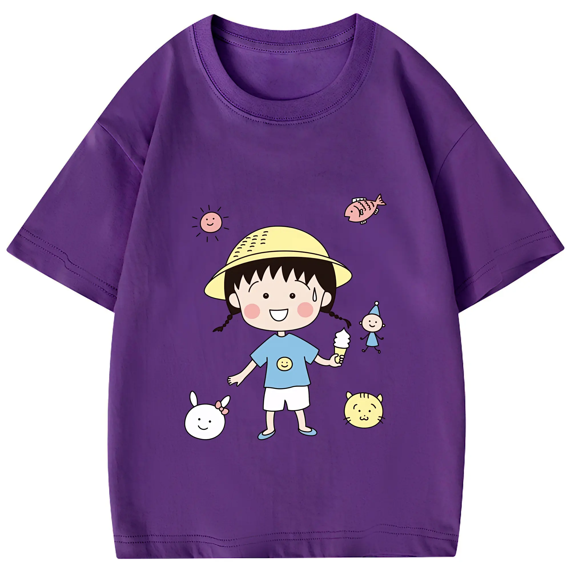 ちびまる子ちゃん グッズ さくら ももこ - 綿100% 半袖Tシャツ ・ フロントプリント ・ 快適 通気性 ・ 日常使い 散歩 スポーツ用