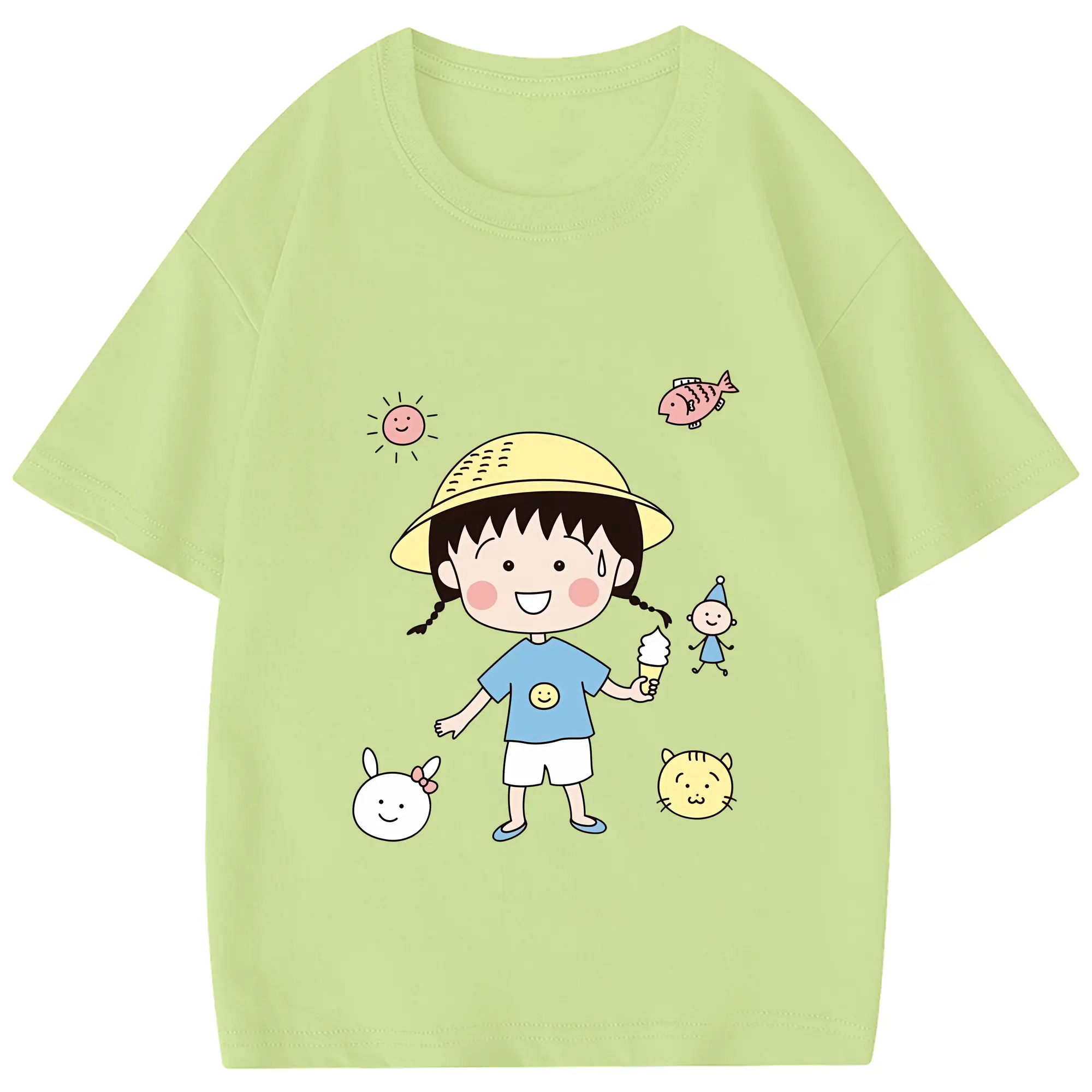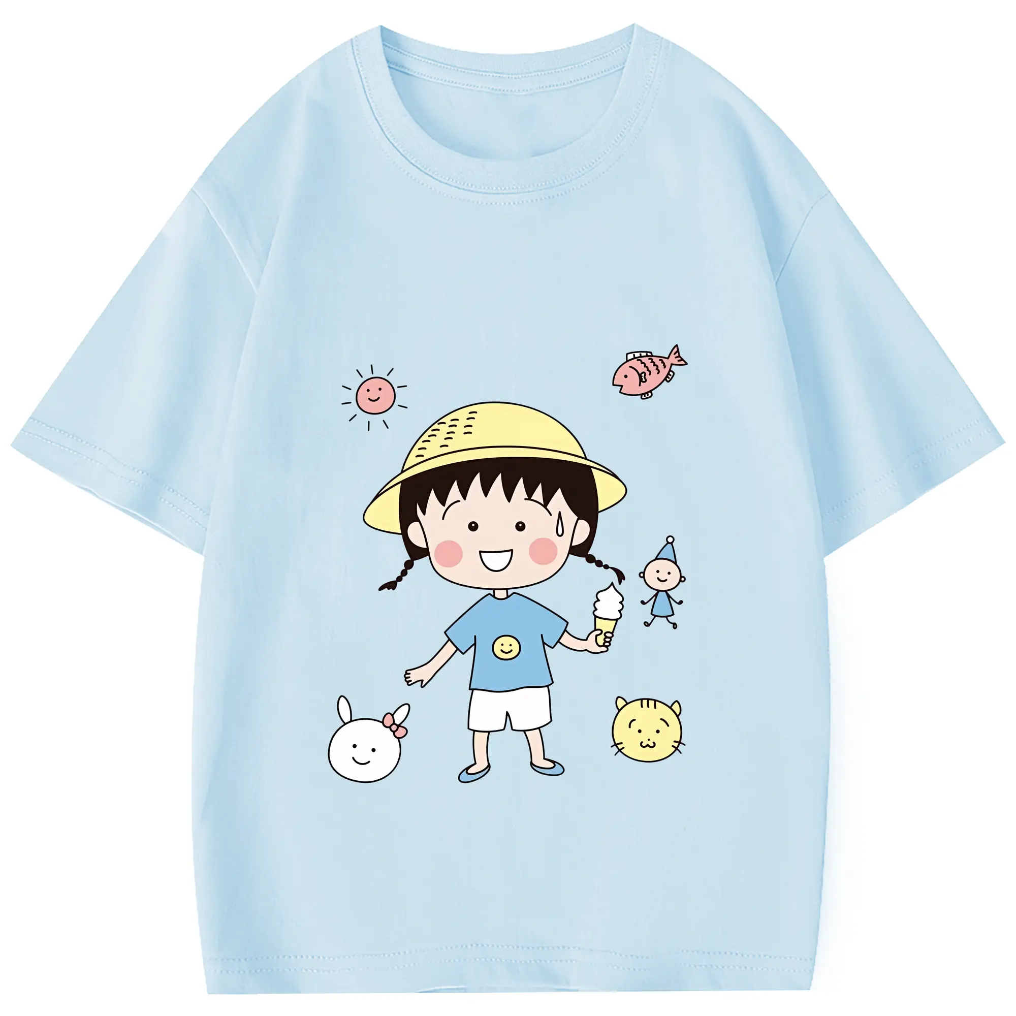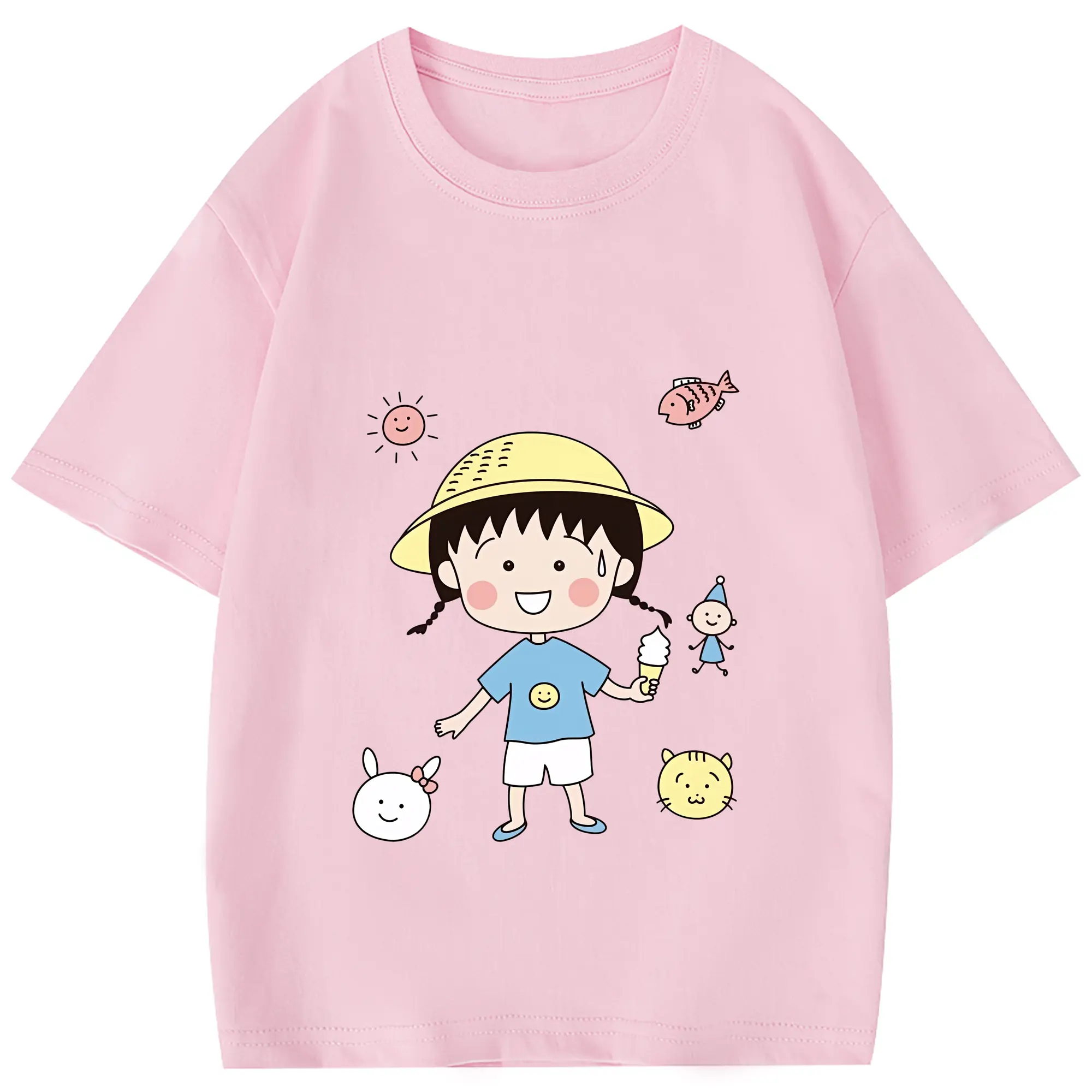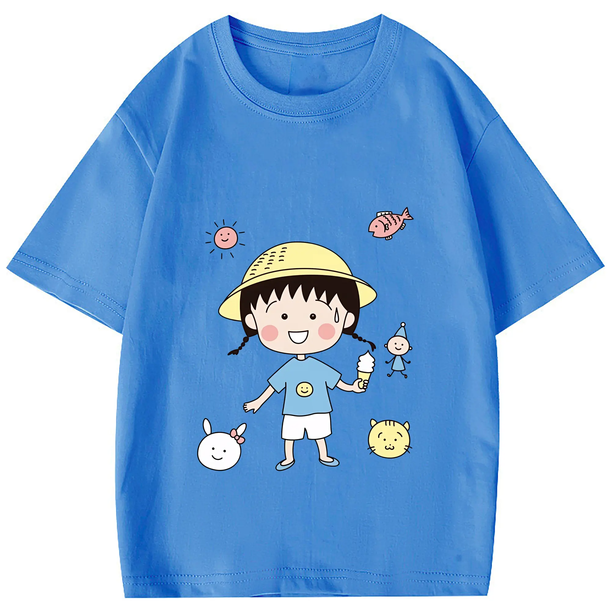ちびまる子ちゃん グッズ さくら ももこ - 綿100% 半袖Tシャツ ・ フロントプリント ・ 快適 通気性 ・ 日常使い 散歩 スポーツ用