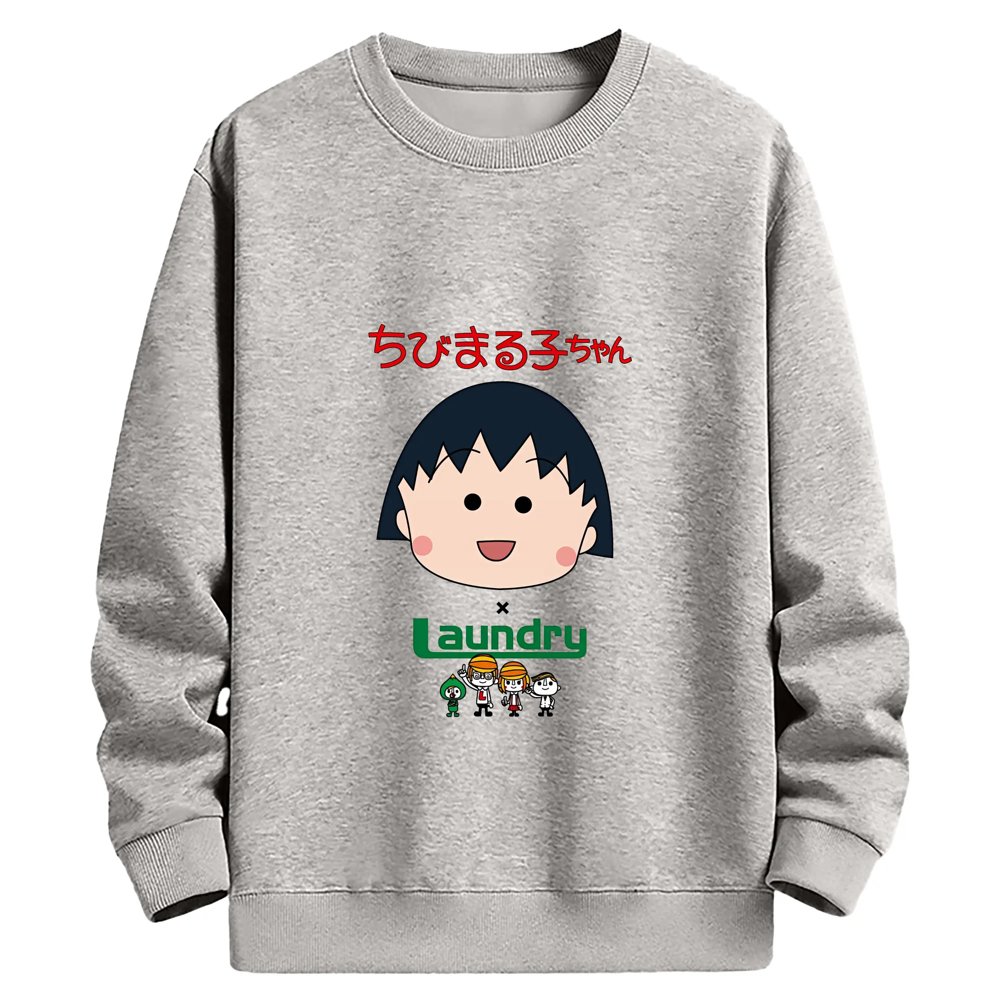 ちびまる子ちゃん グッズ さくら ももこ - 薄手 クルーネック スウェット 裏毛260g · ポリエステル 春秋向け カジュアル 男女兼用 · トレーナー デイリー スポーツ 散歩に最適
