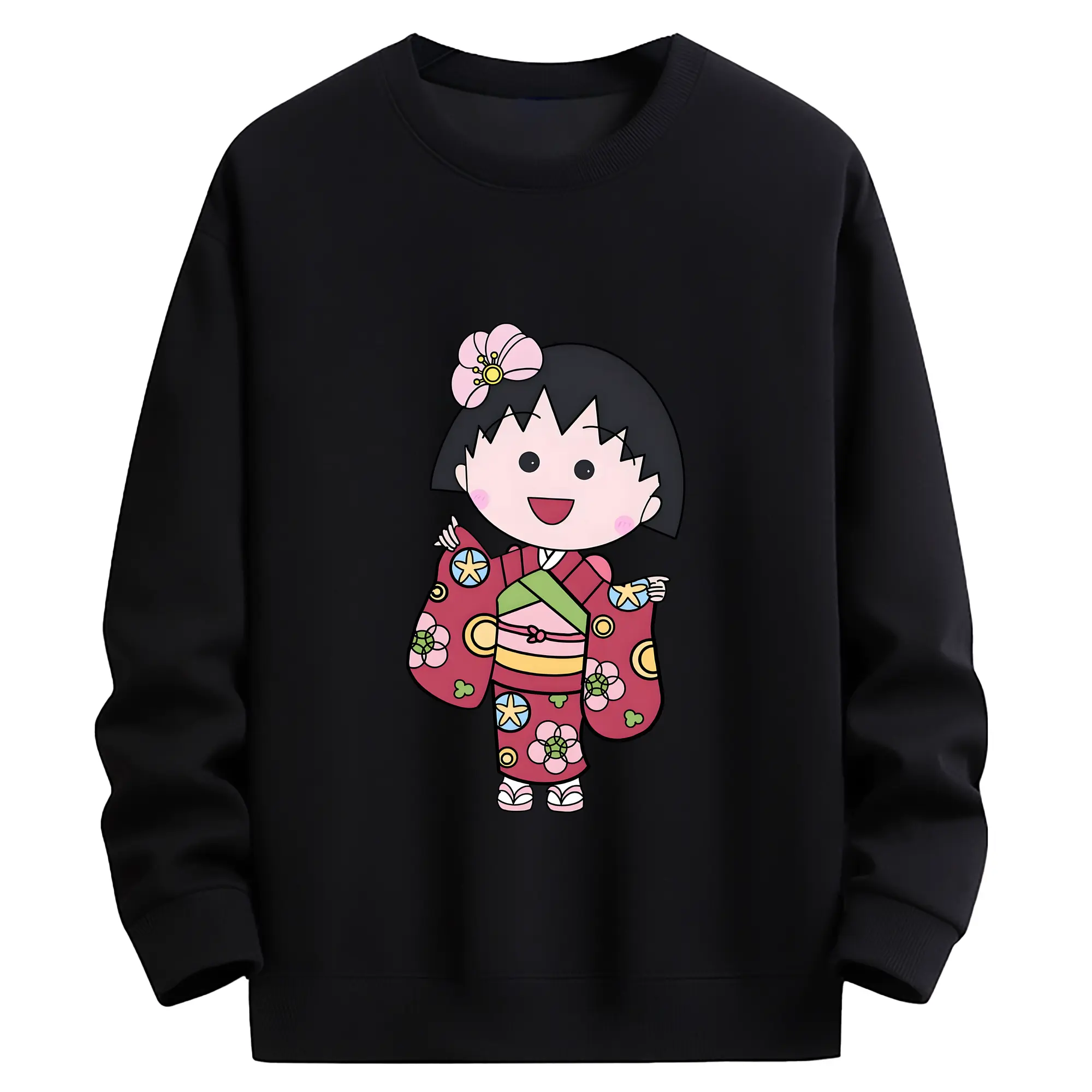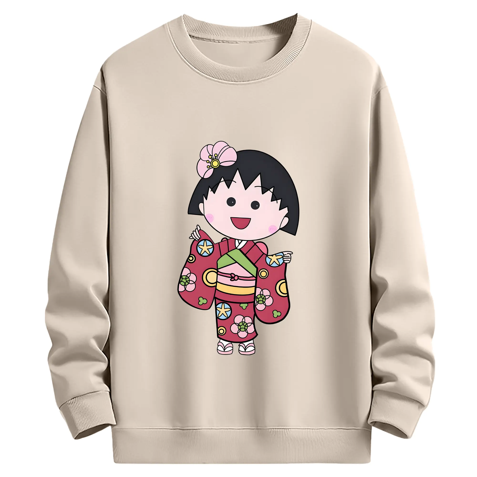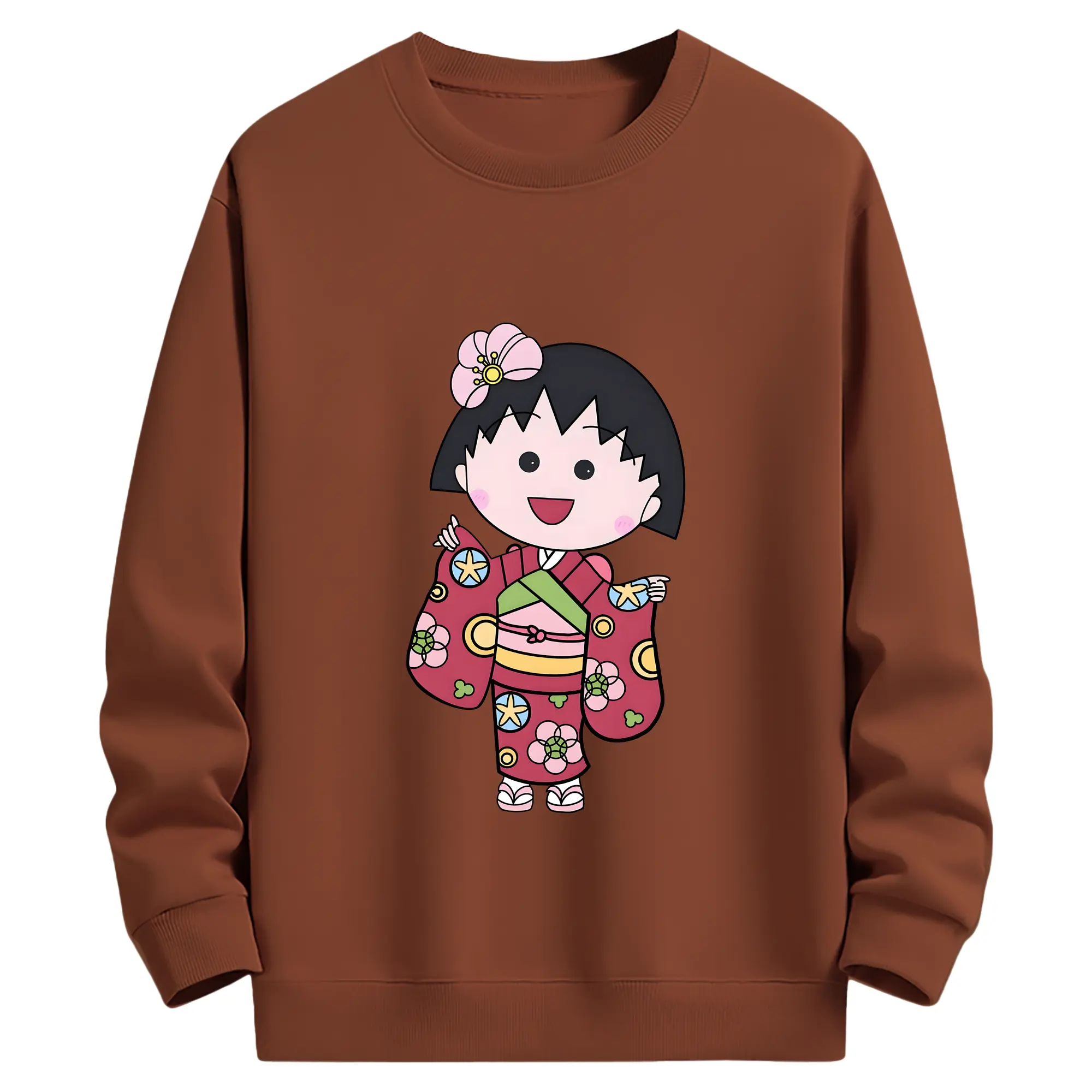 ちびまる子ちゃん グッズ さくら ももこ - 薄手 クルーネック スウェット 裏毛260g · ポリエステル 春秋向け カジュアル 男女兼用 · トレーナー デイリー スポーツ 散歩に最適