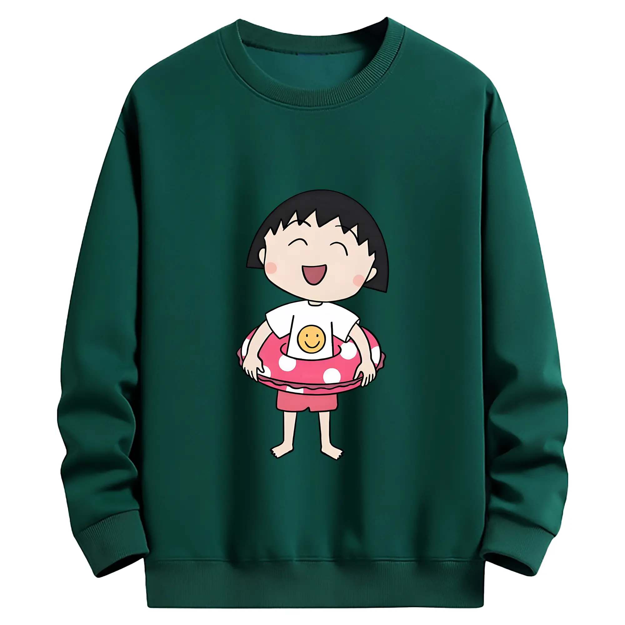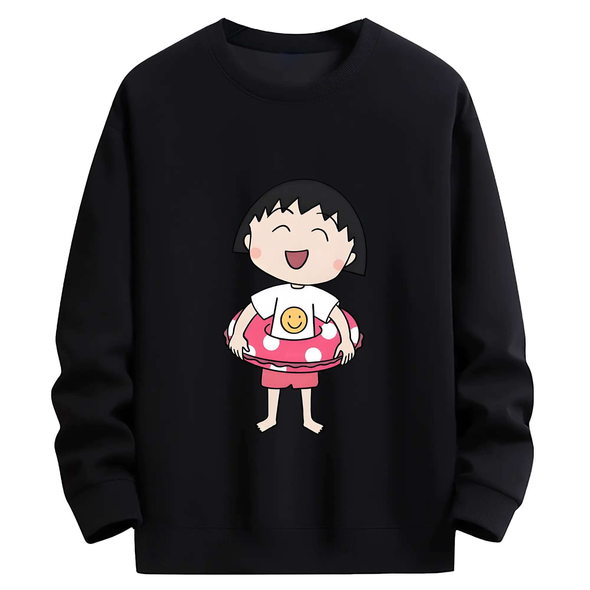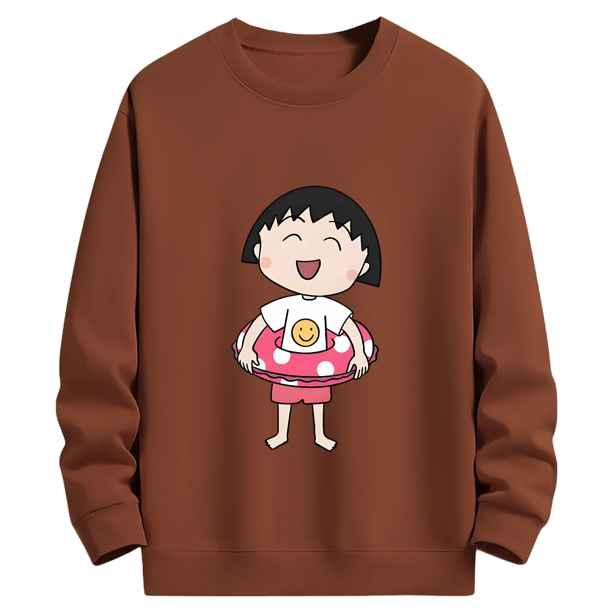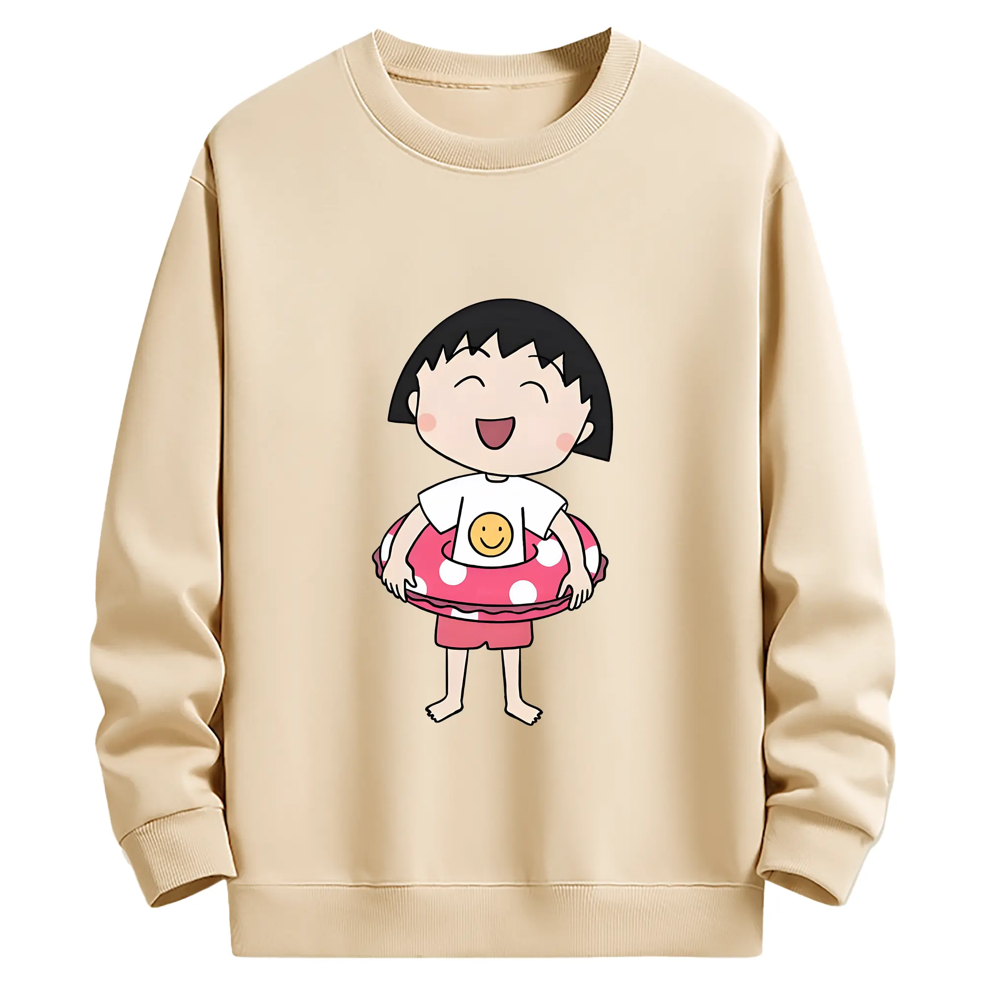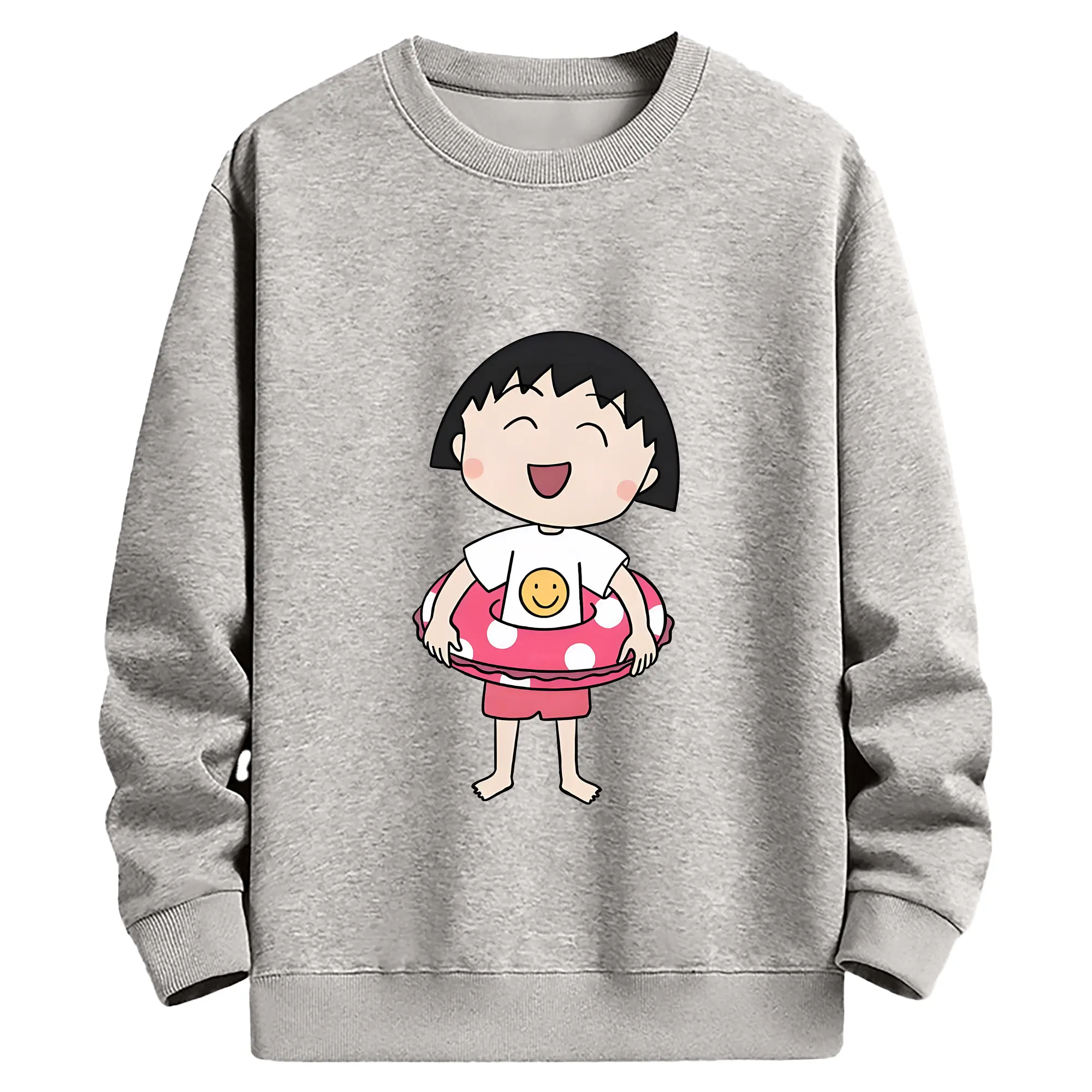 ちびまる子ちゃん グッズ さくら ももこ - 薄手 クルーネック スウェット 裏毛260g · ポリエステル 春秋向け カジュアル 男女兼用 · トレーナー デイリー スポーツ 散歩に最適