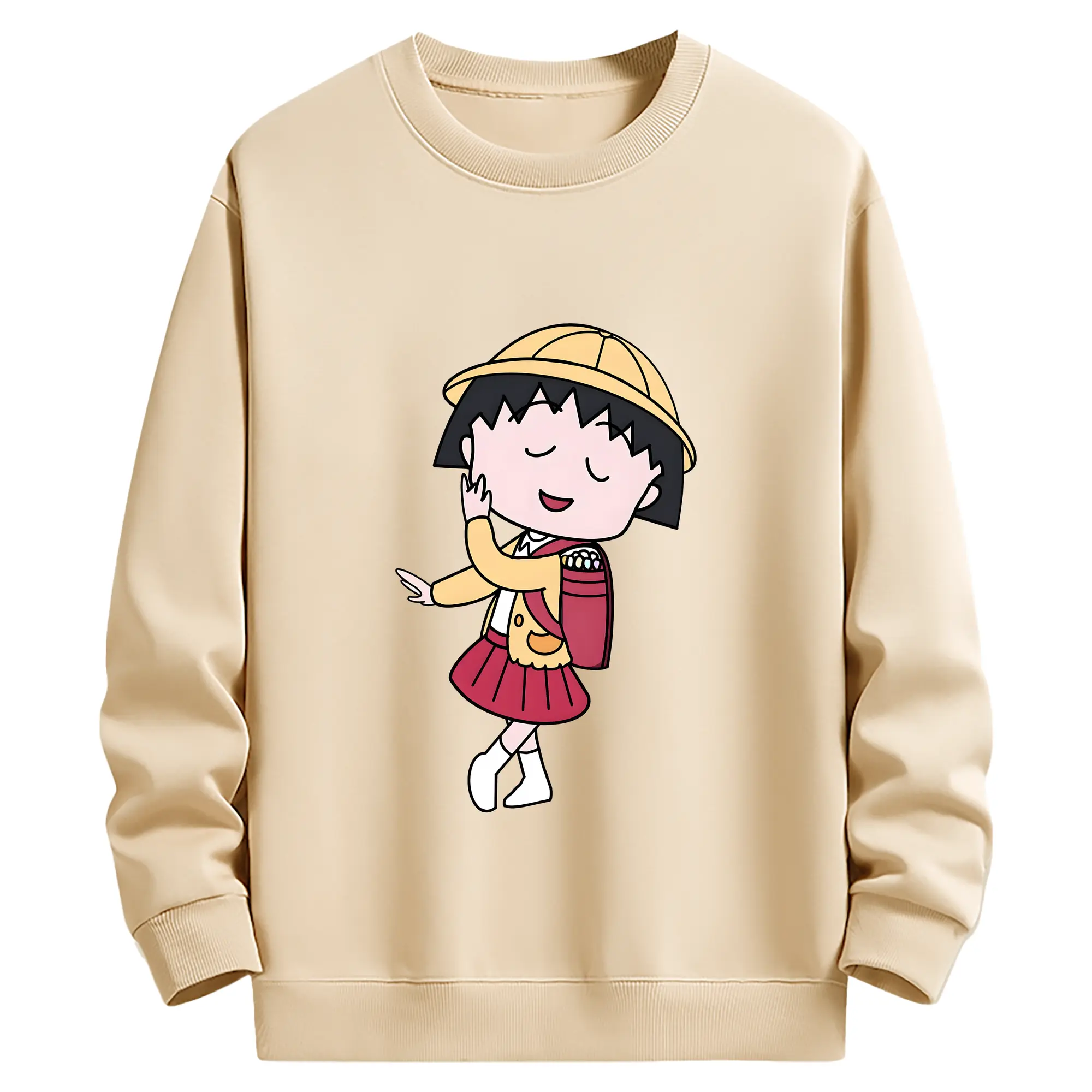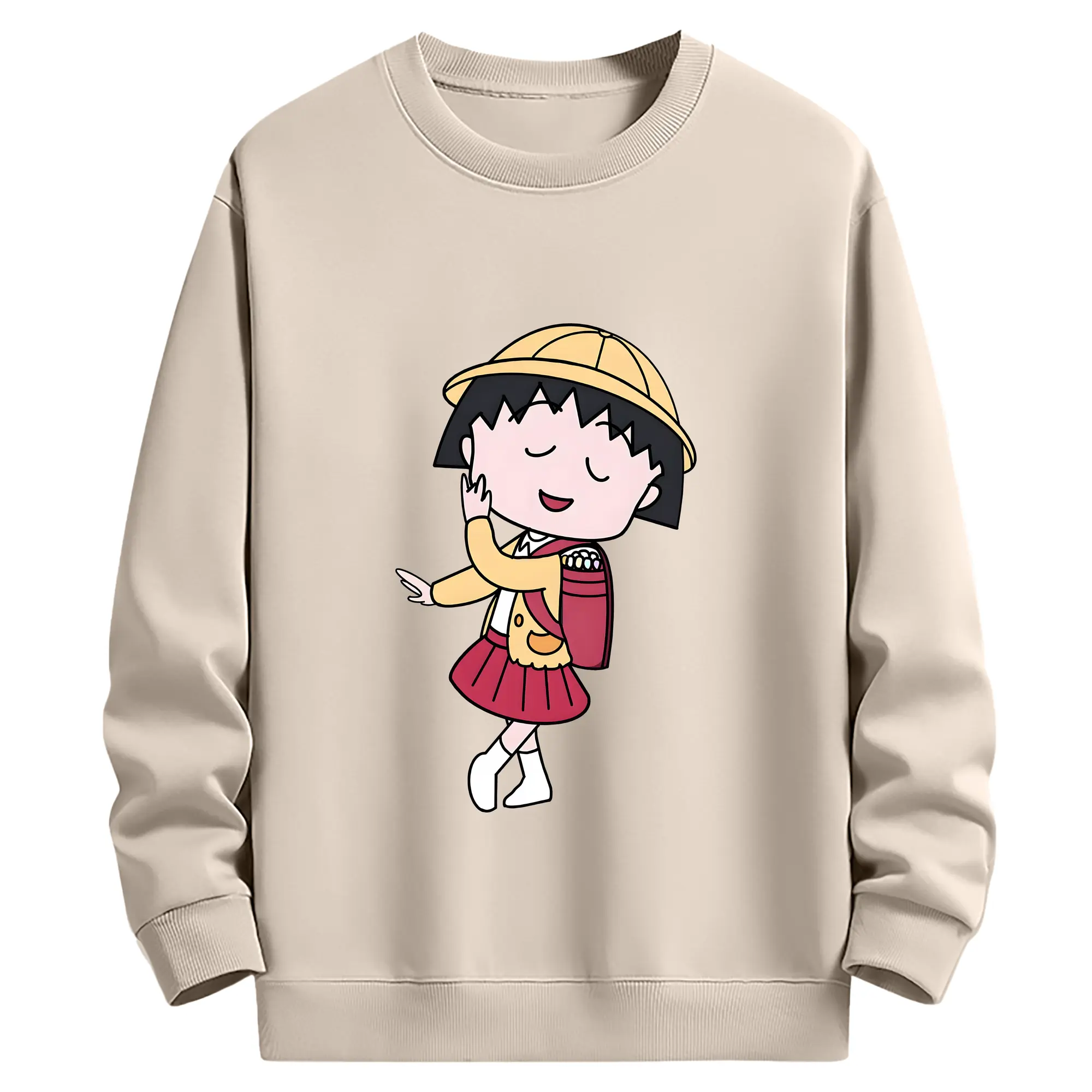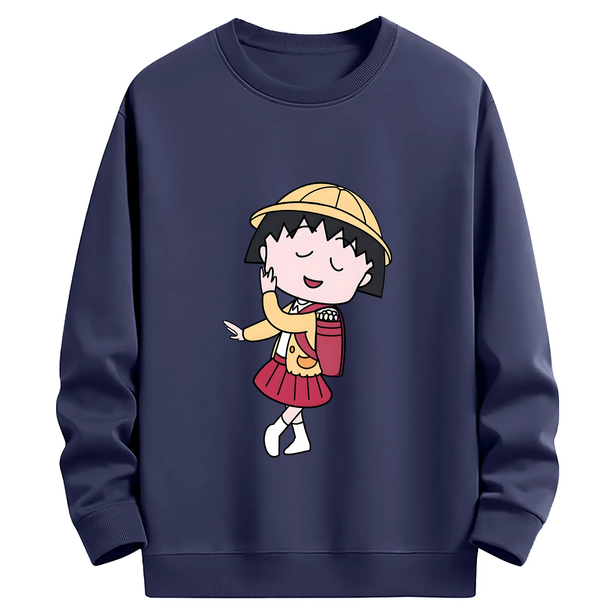 ちびまる子ちゃん グッズ さくら ももこ - 薄手 クルーネック スウェット 裏毛260g · ポリエステル 春秋向け カジュアル 男女兼用 · トレーナー デイリー スポーツ 散歩に最適