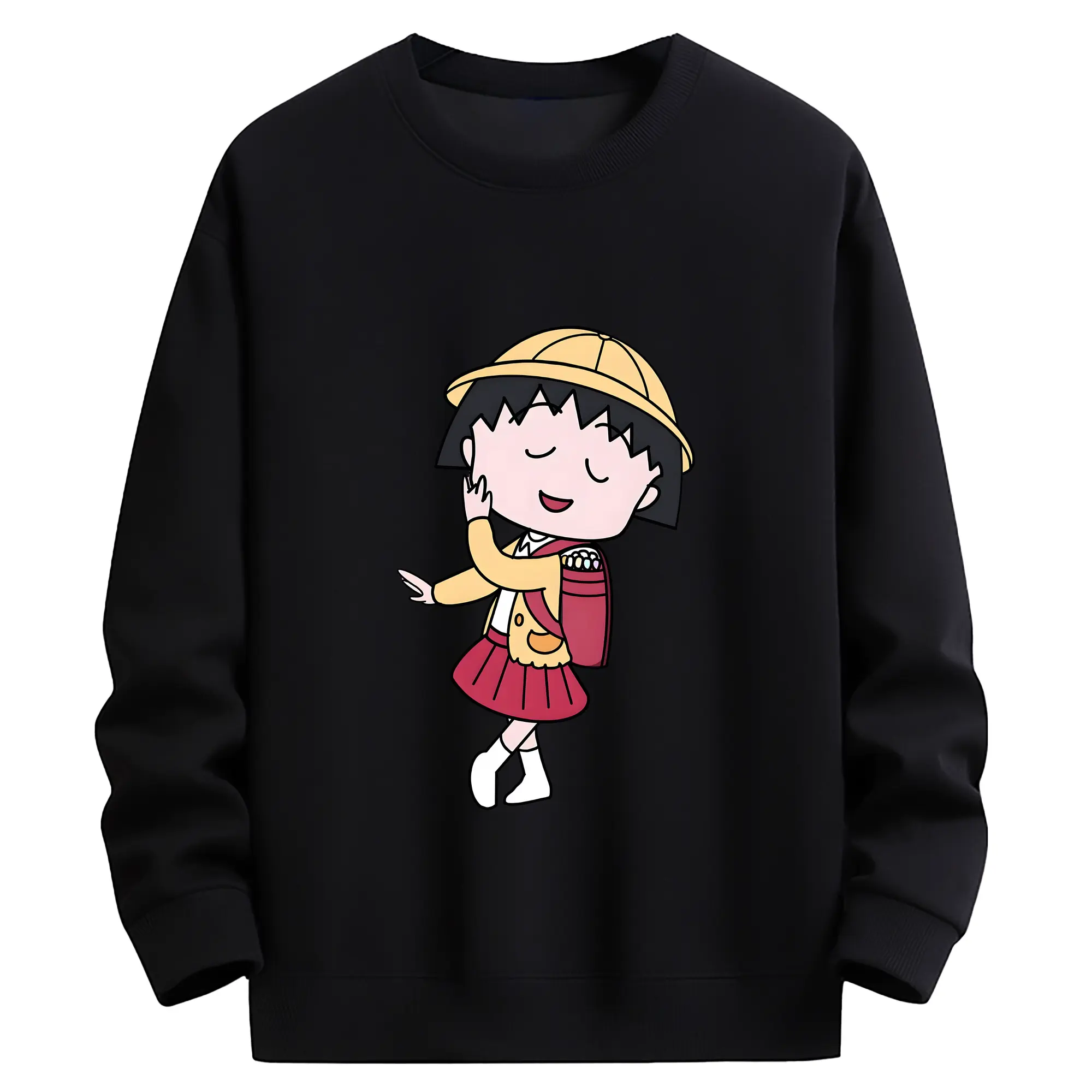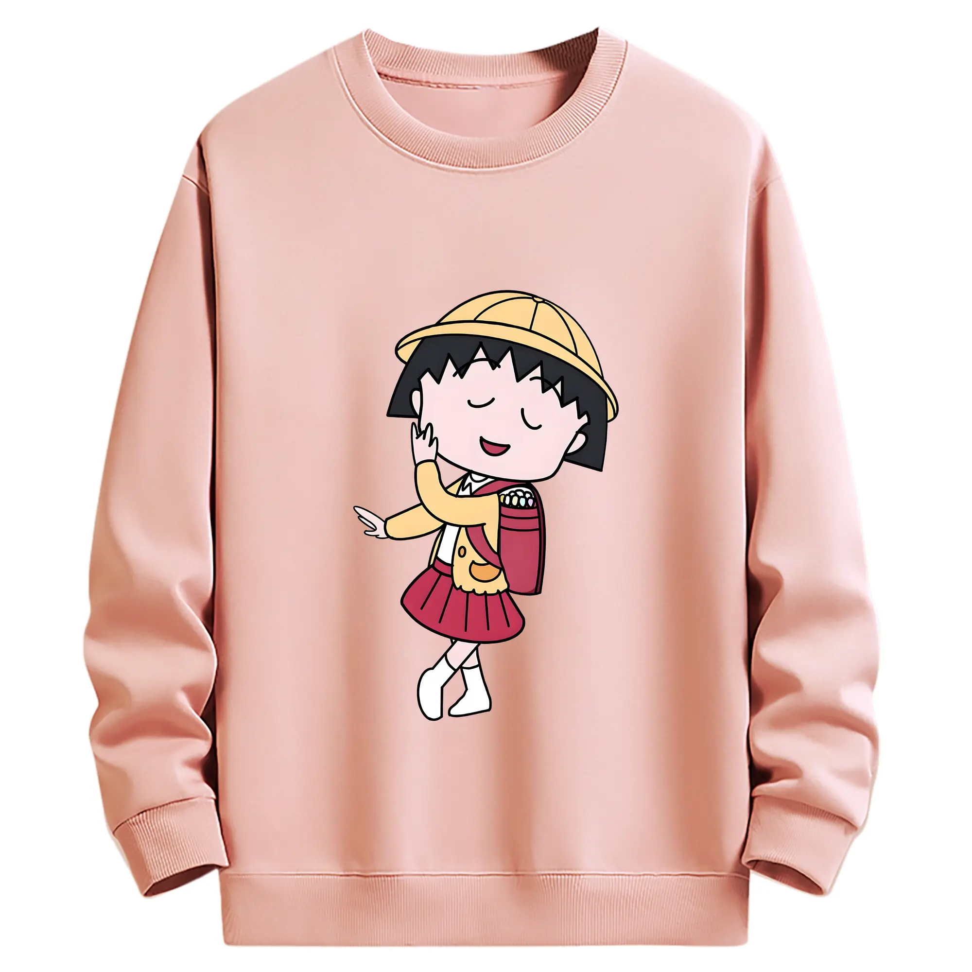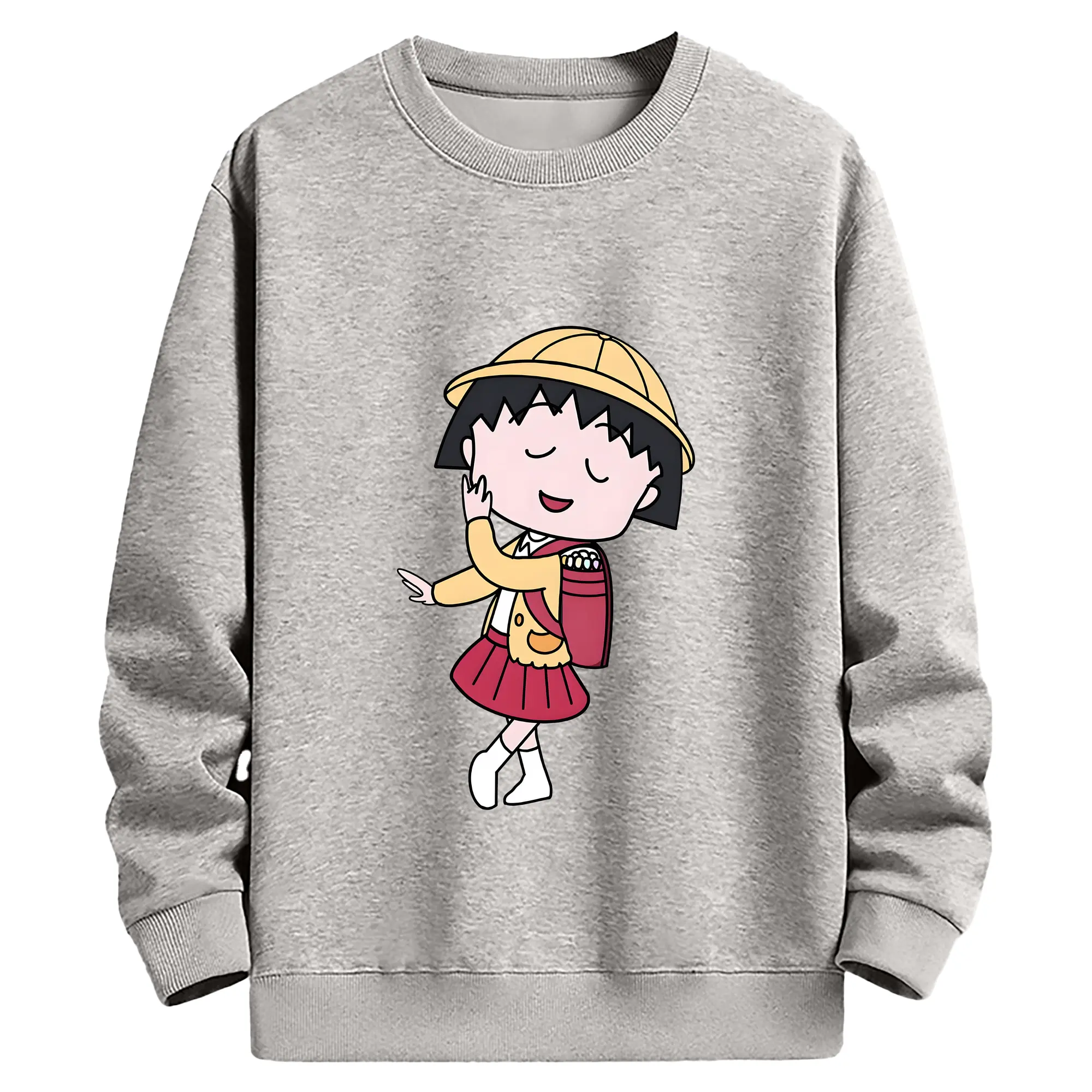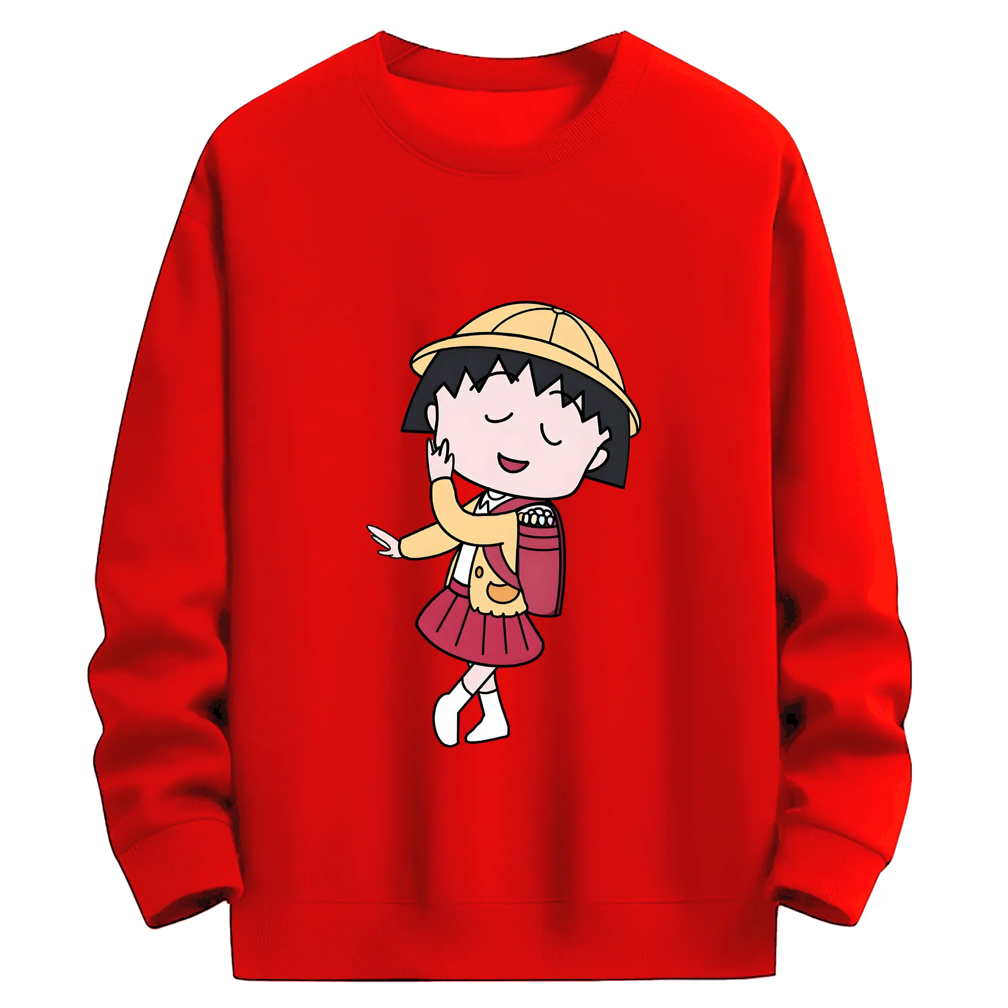 ちびまる子ちゃん グッズ さくら ももこ - 薄手 クルーネック スウェット 裏毛260g · ポリエステル 春秋向け カジュアル 男女兼用 · トレーナー デイリー スポーツ 散歩に最適