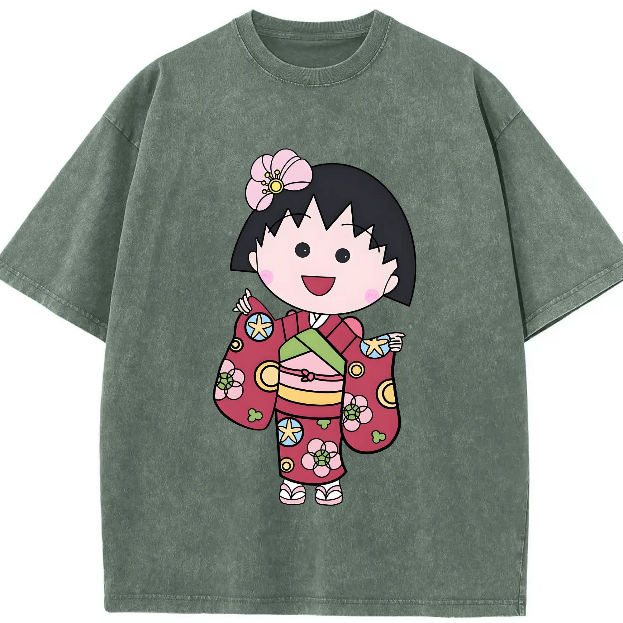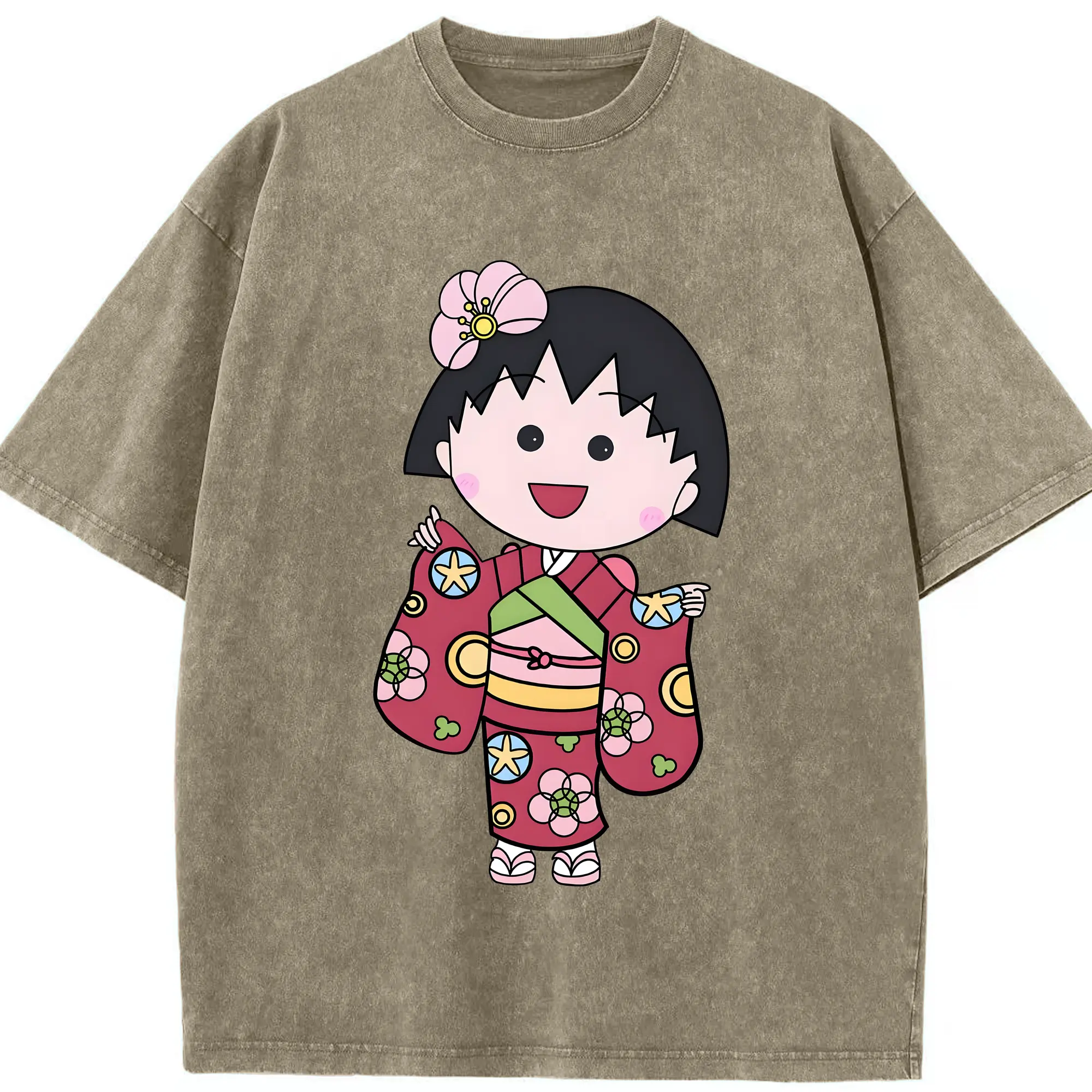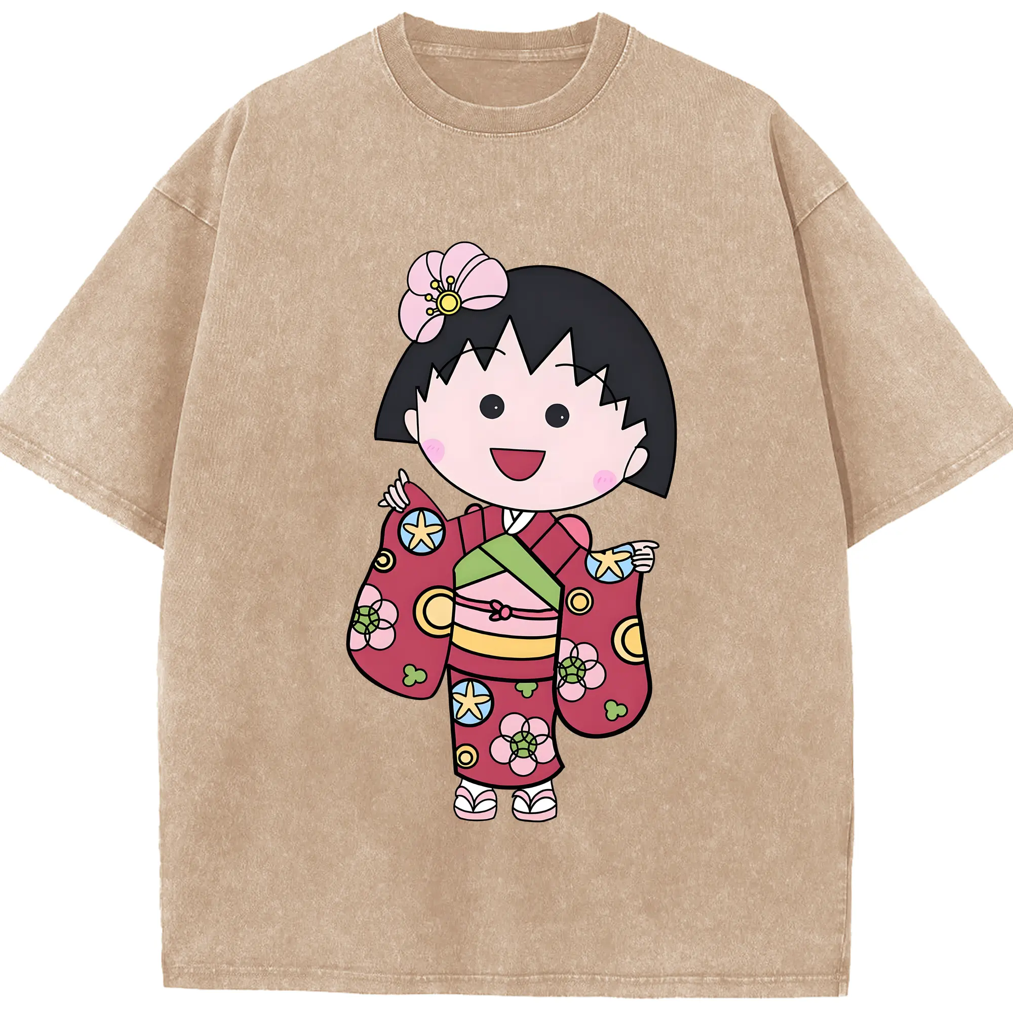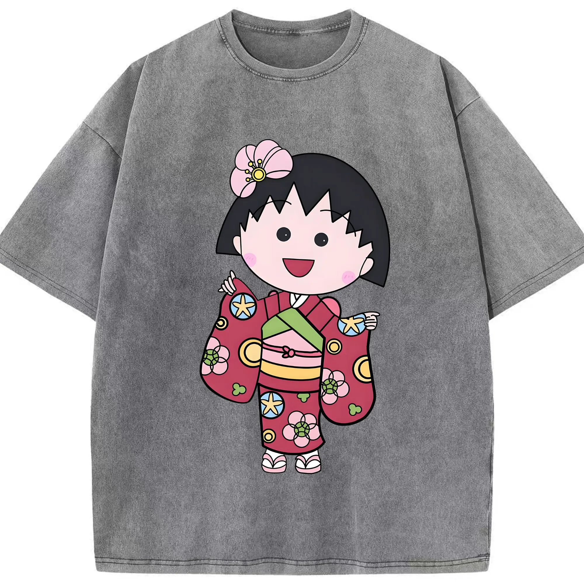 ちびまる子ちゃん グッズ さくら ももこ - 綿100% ヴィンテージ風 半袖Tシャツ ・ 背面プリント ・ 柔らか肌触り ・ 通気性 快適 ・ スポーツ カジュアル 外出用