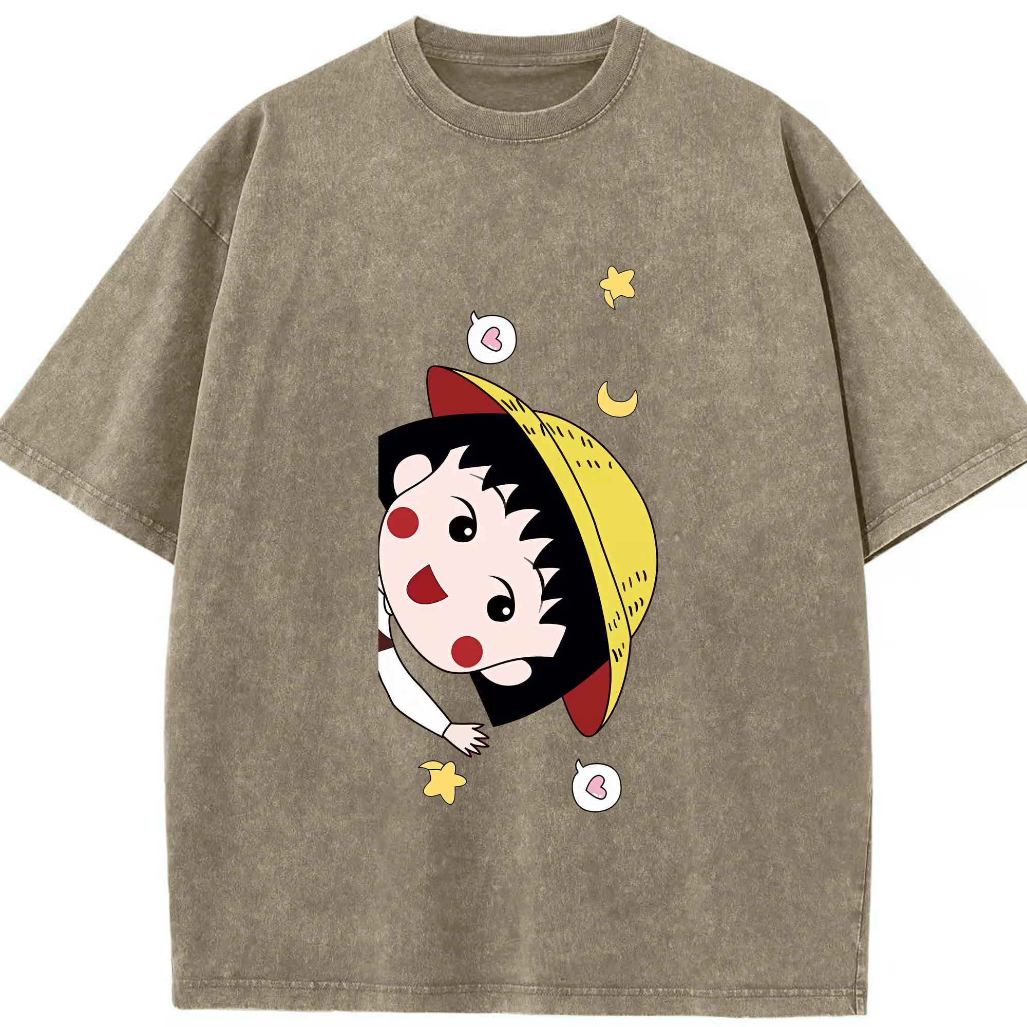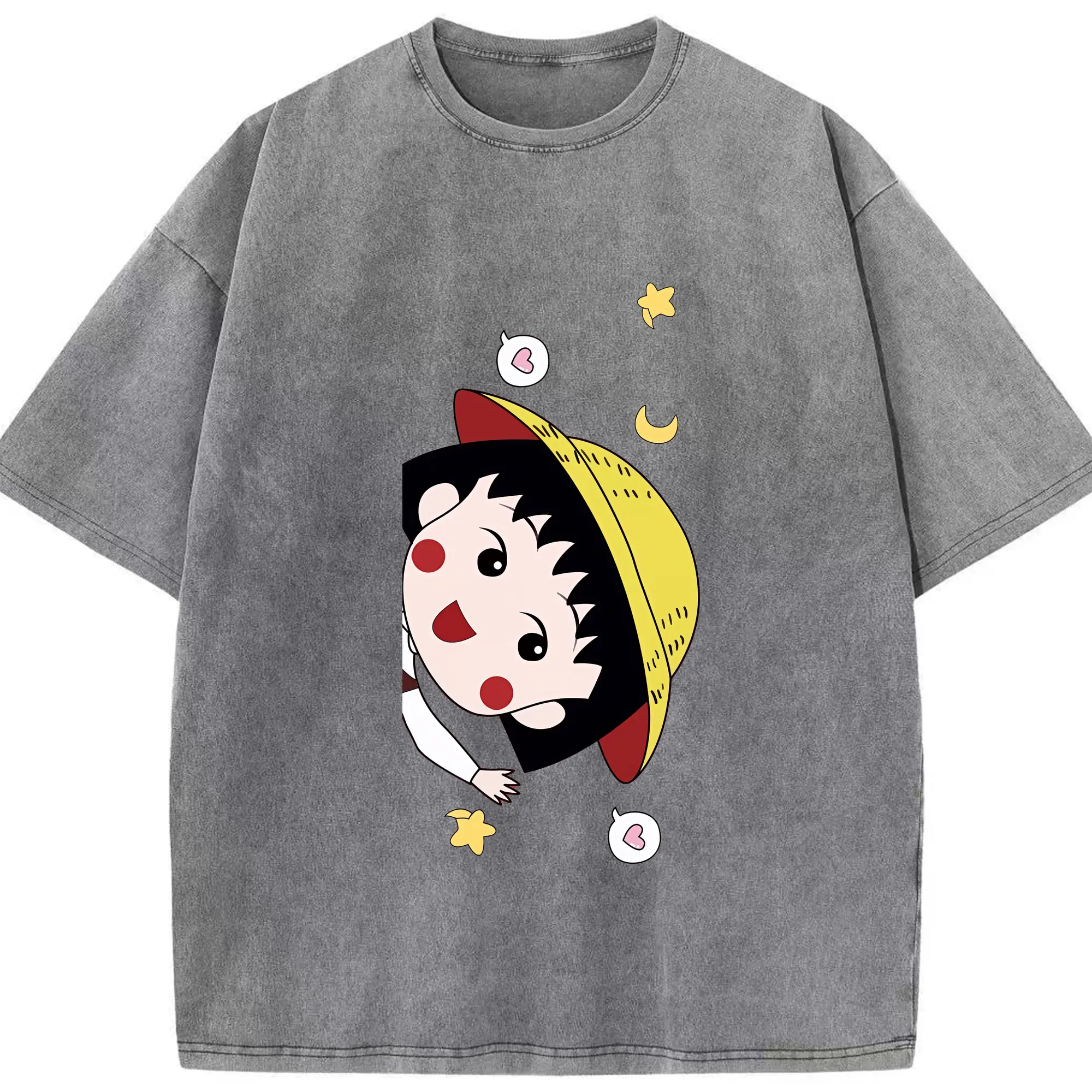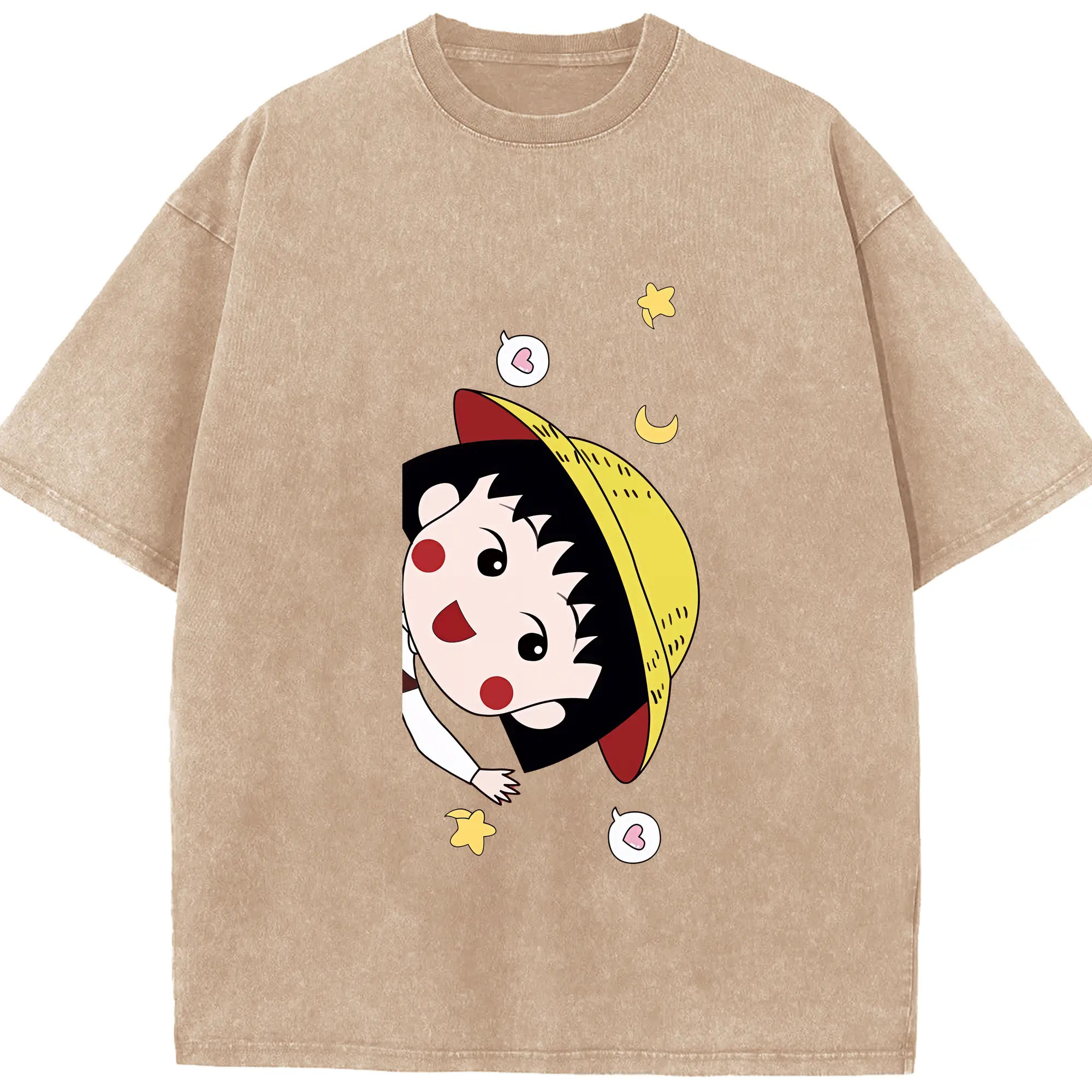 ちびまる子ちゃん グッズ さくら ももこ - 綿100% ヴィンテージ風 半袖Tシャツ ・ 背面プリント ・ 柔らか肌触り ・ 通気性 快適 ・ スポーツ カジュアル 外出用
