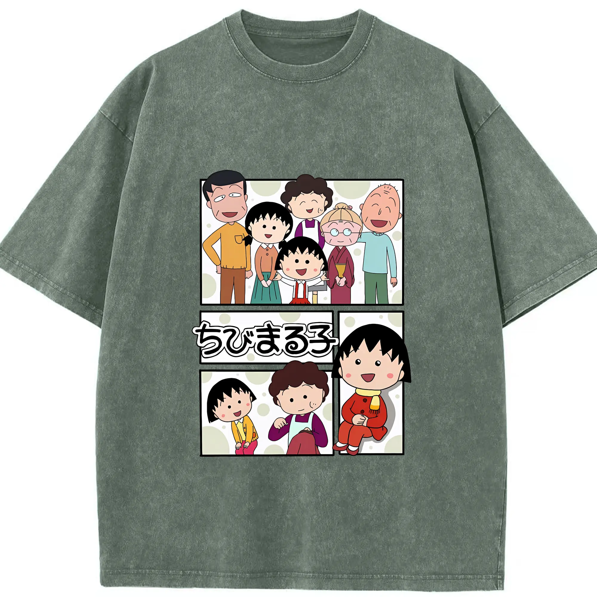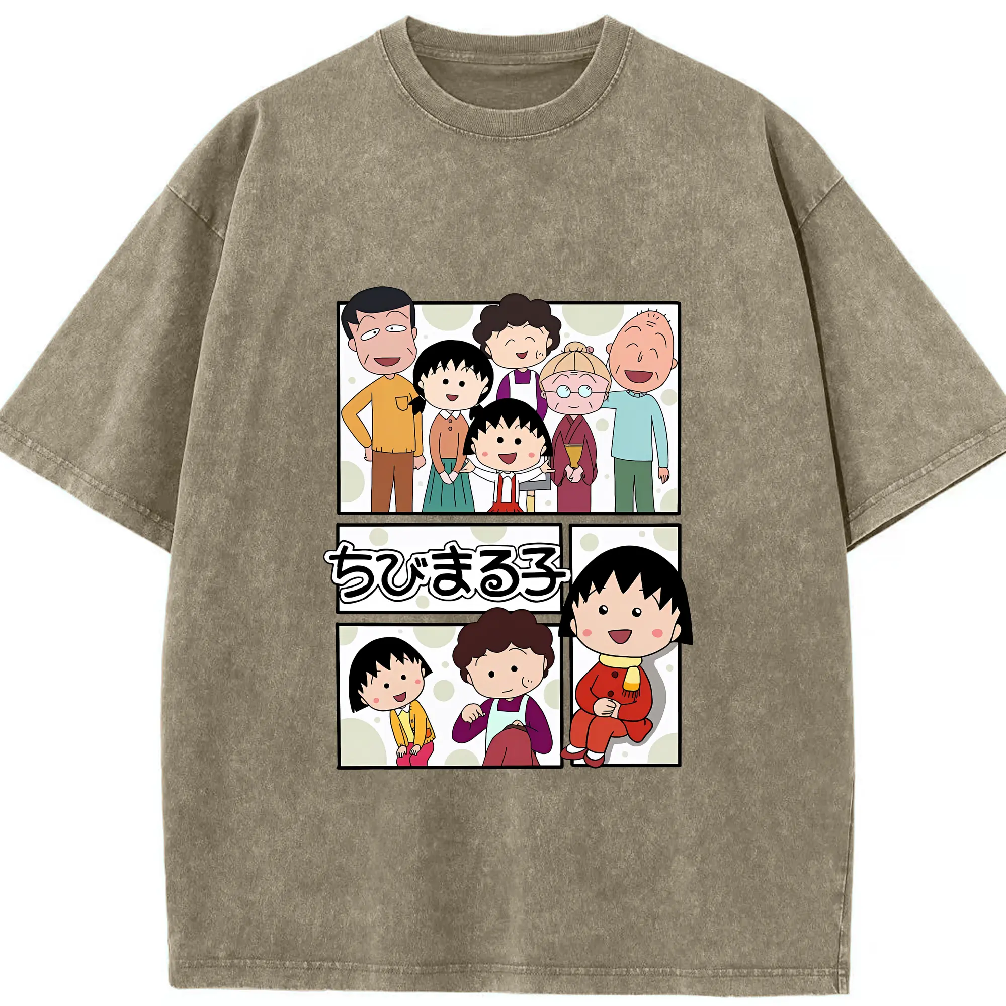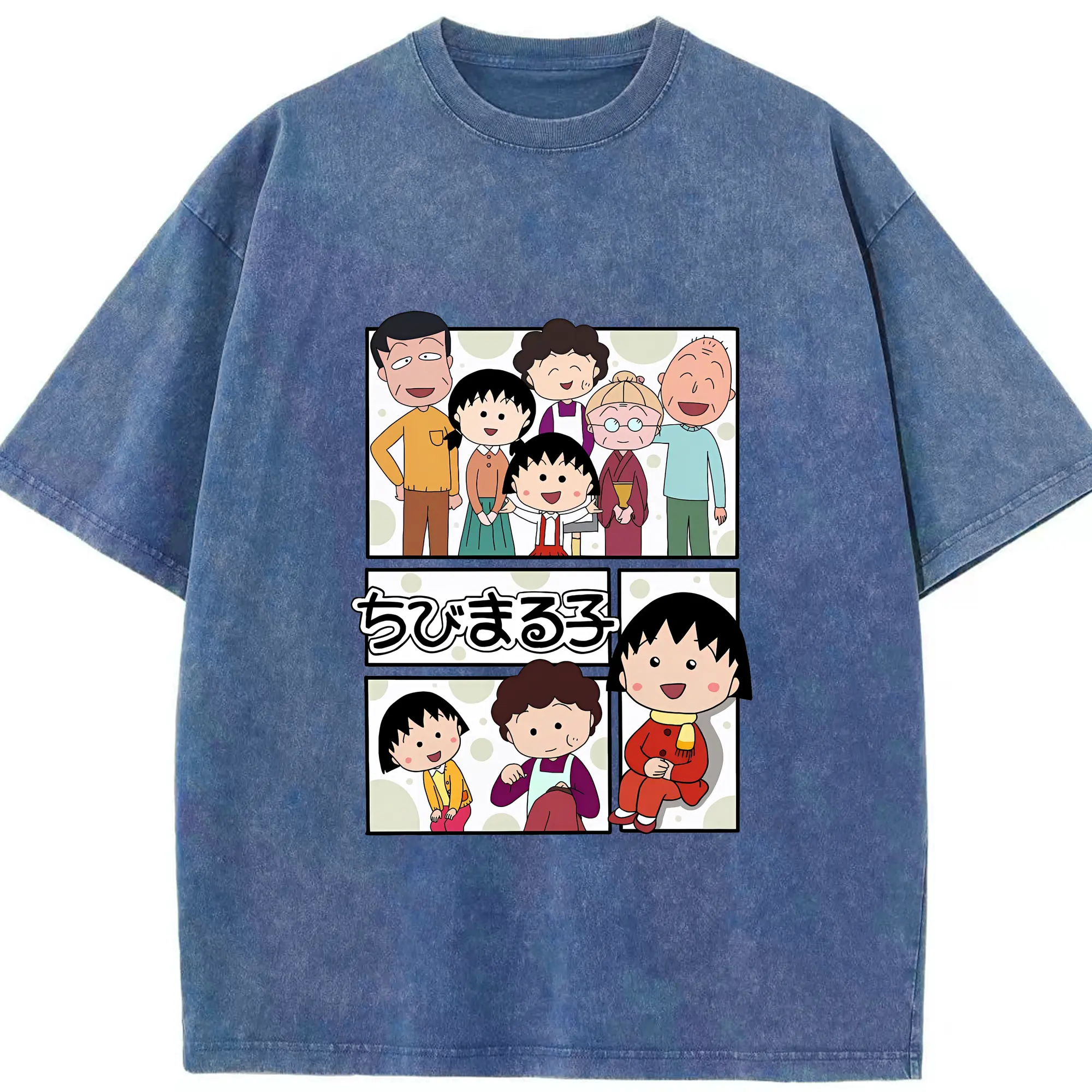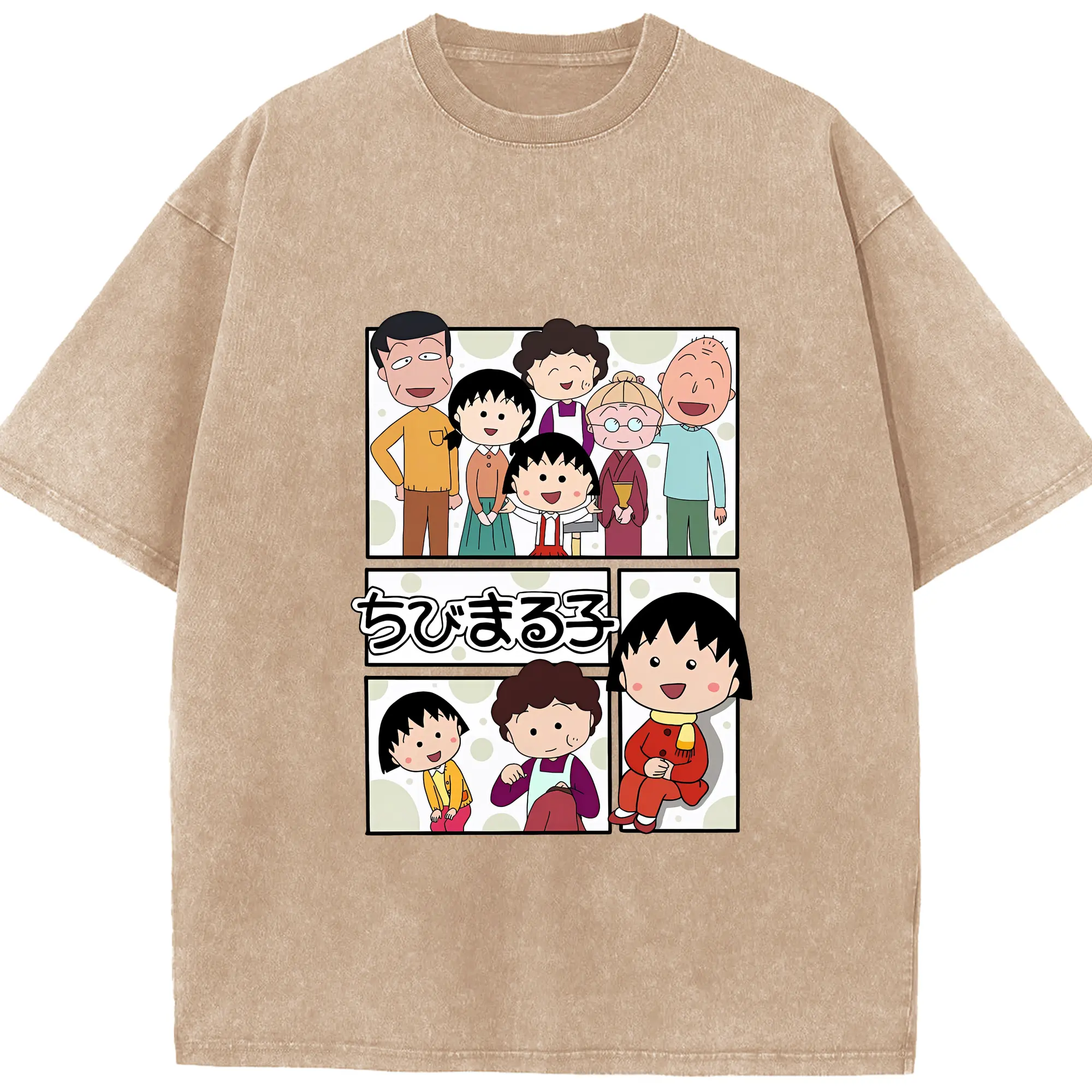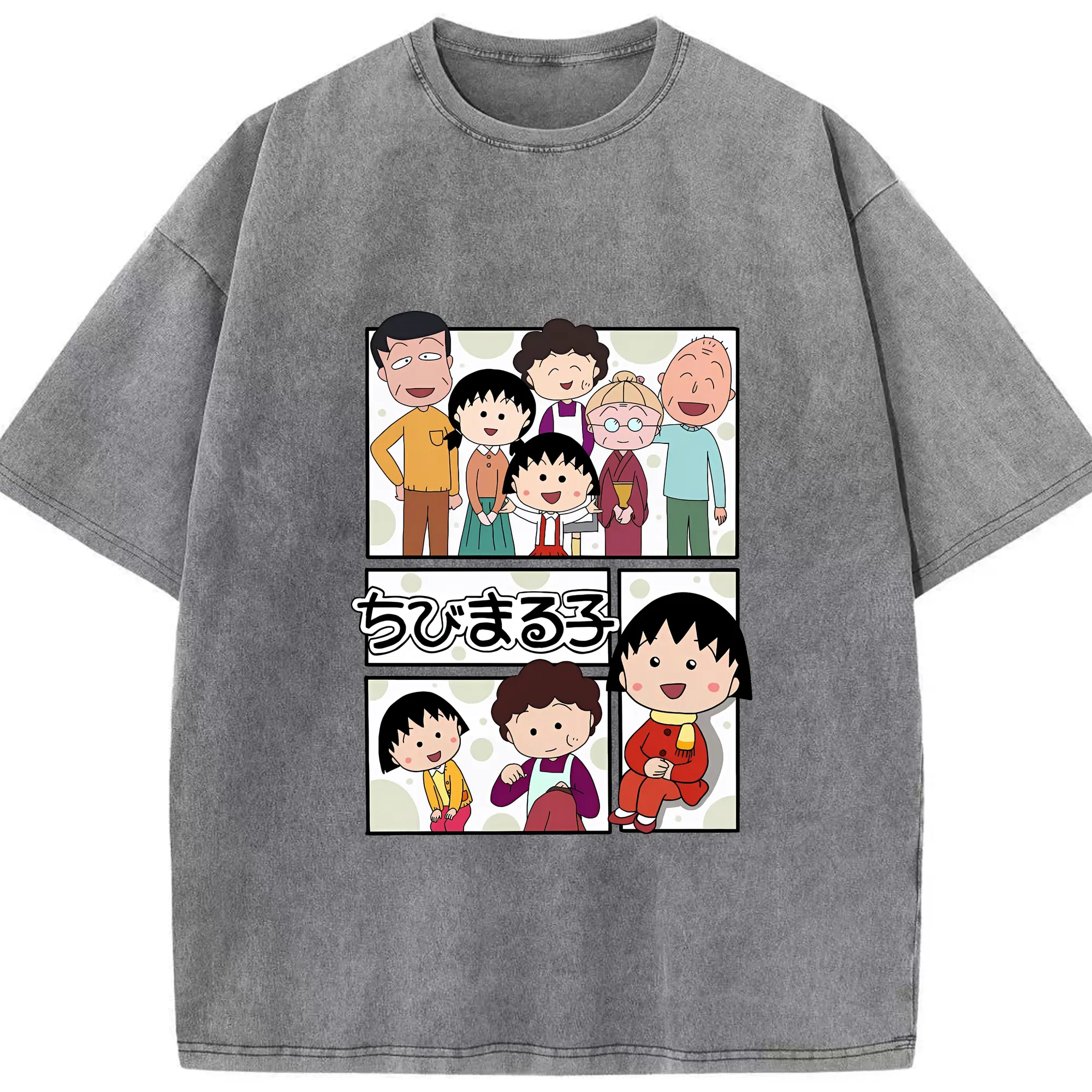 ちびまる子ちゃん グッズ さくら ももこ - 綿100% ヴィンテージ風 半袖Tシャツ ・ 背面プリント ・ 柔らか肌触り ・ 通気性 快適 ・ スポーツ カジュアル 外出用