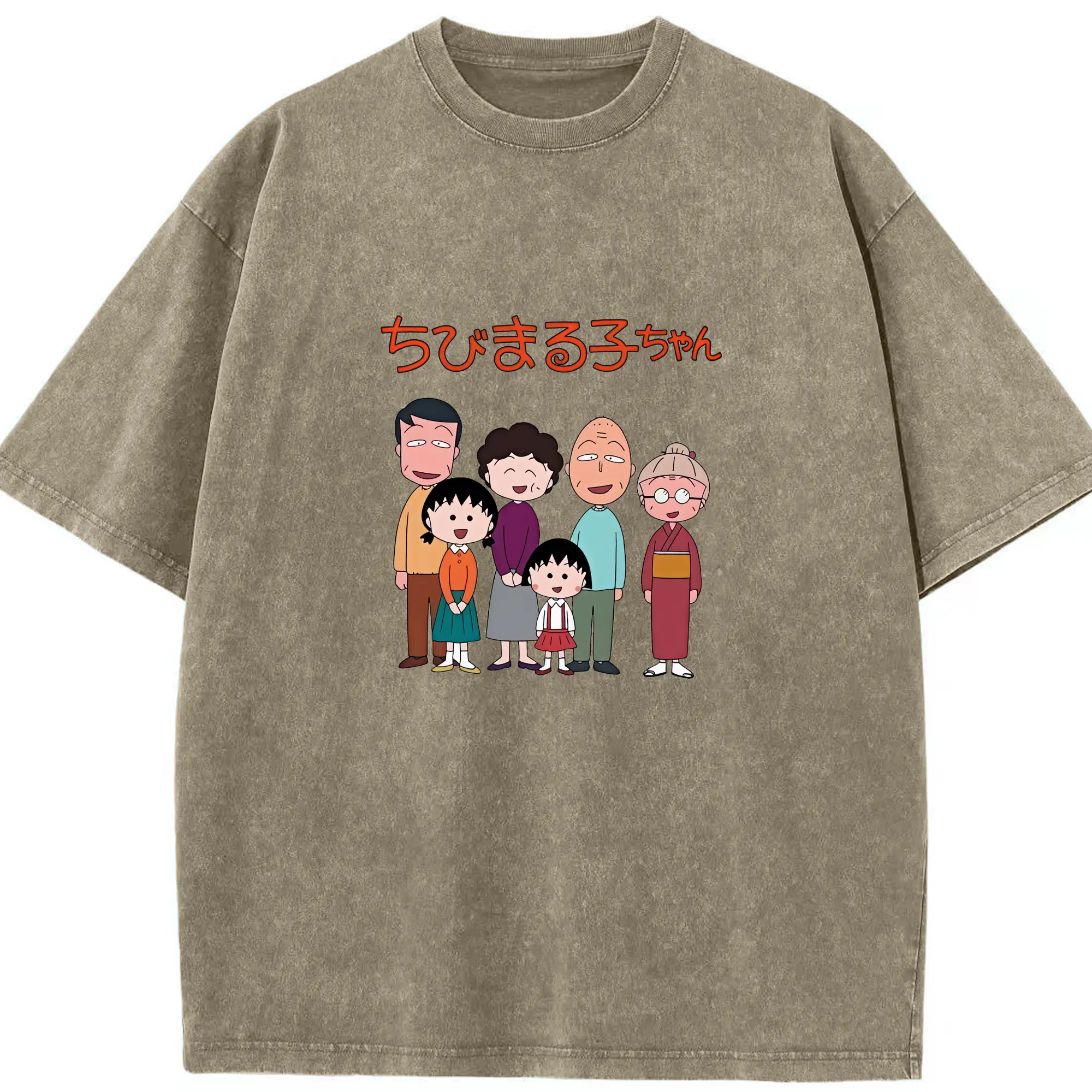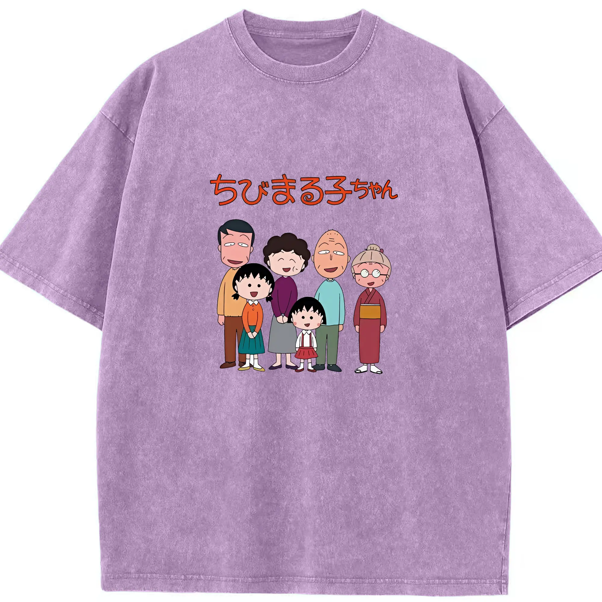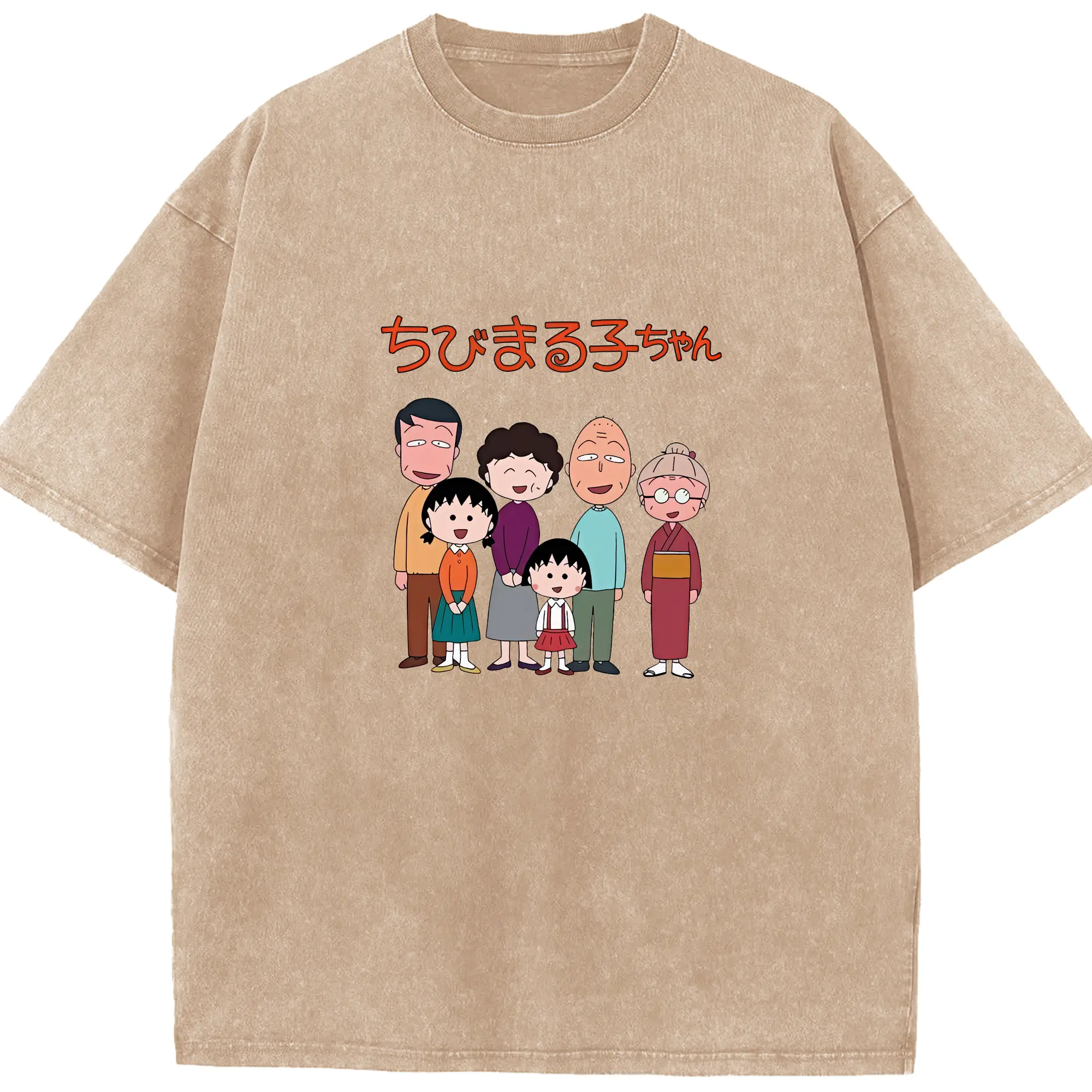 ちびまる子ちゃん グッズ さくら ももこ - 綿100% ヴィンテージ風 半袖Tシャツ ・ 背面プリント ・ 柔らか肌触り ・ 通気性 快適 ・ スポーツ カジュアル 外出用