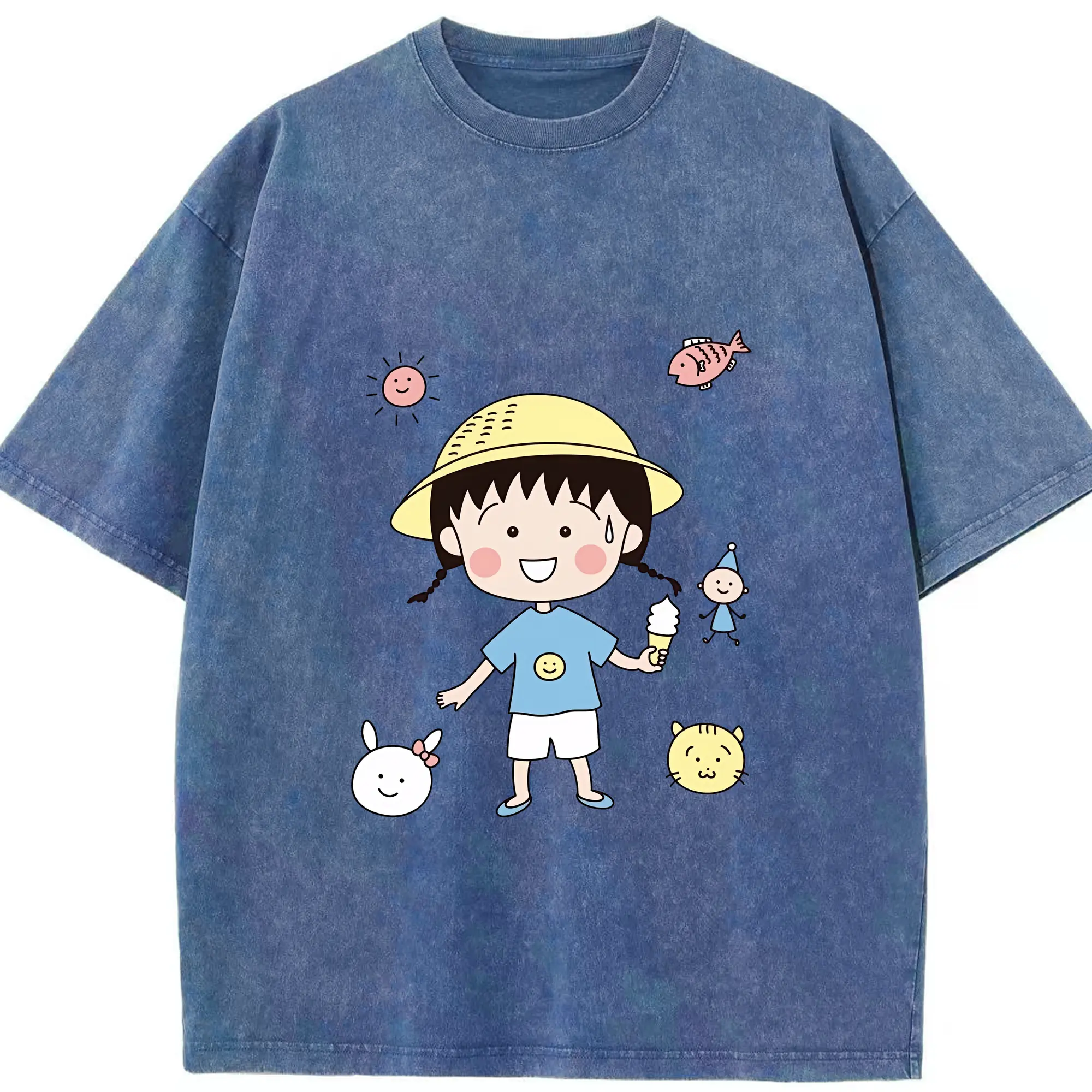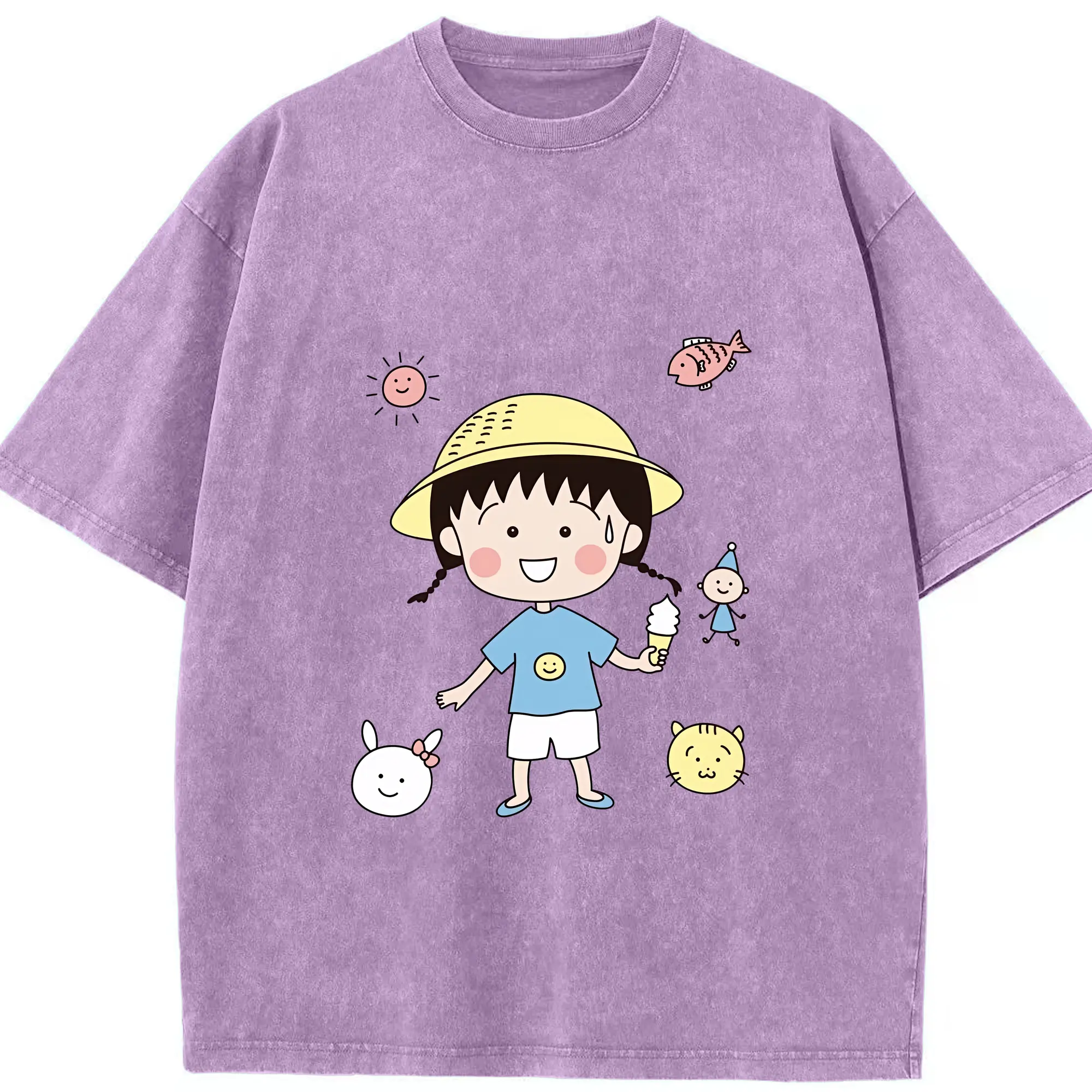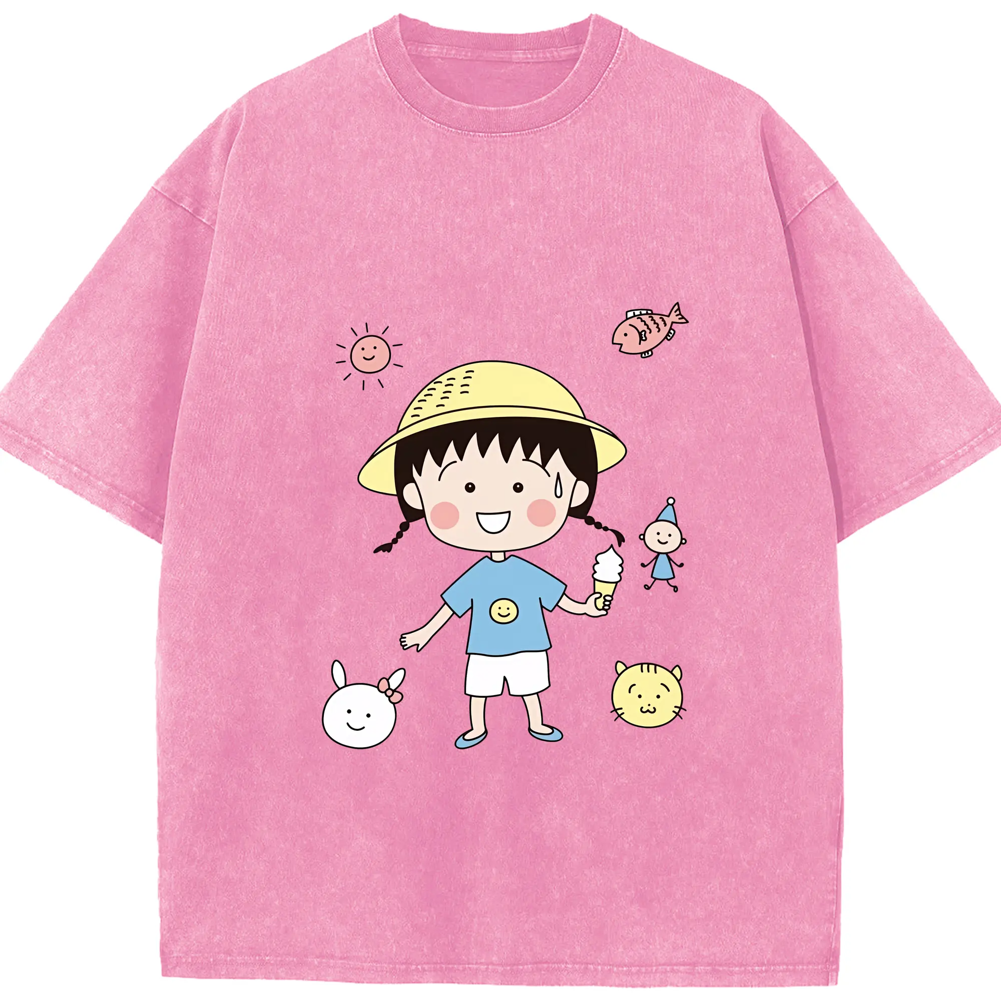 ちびまる子ちゃん グッズ さくら ももこ - 綿100% 半袖Tシャツ ・ フロントプリント ・ 快適 通気性 ・ 日常使い 散歩 スポーツ用