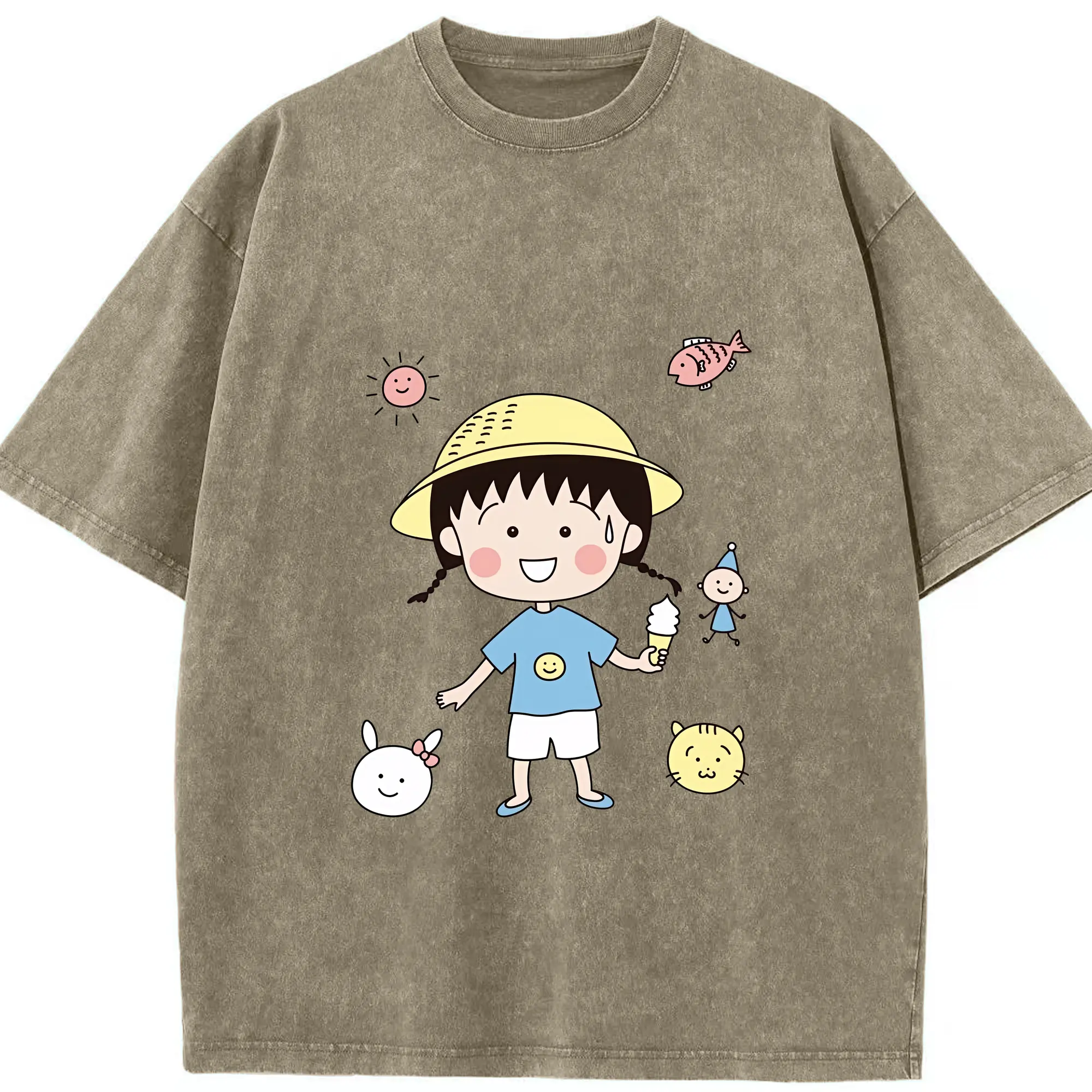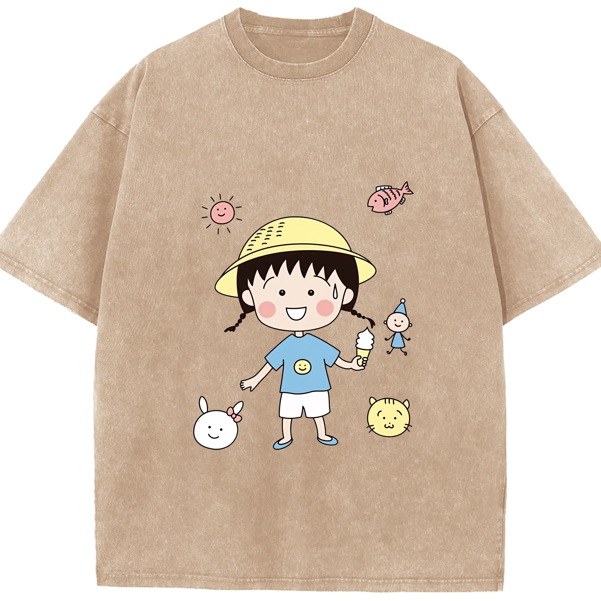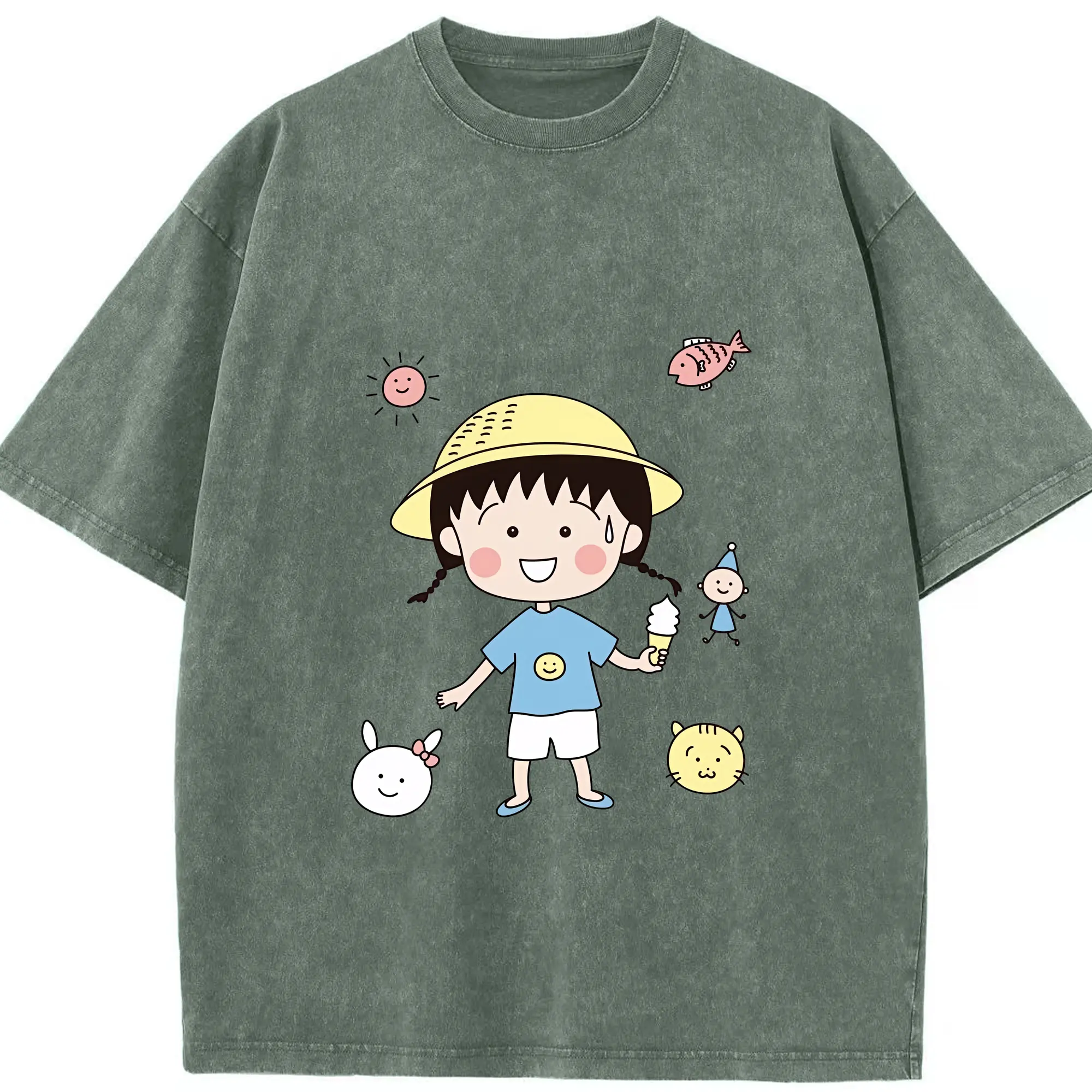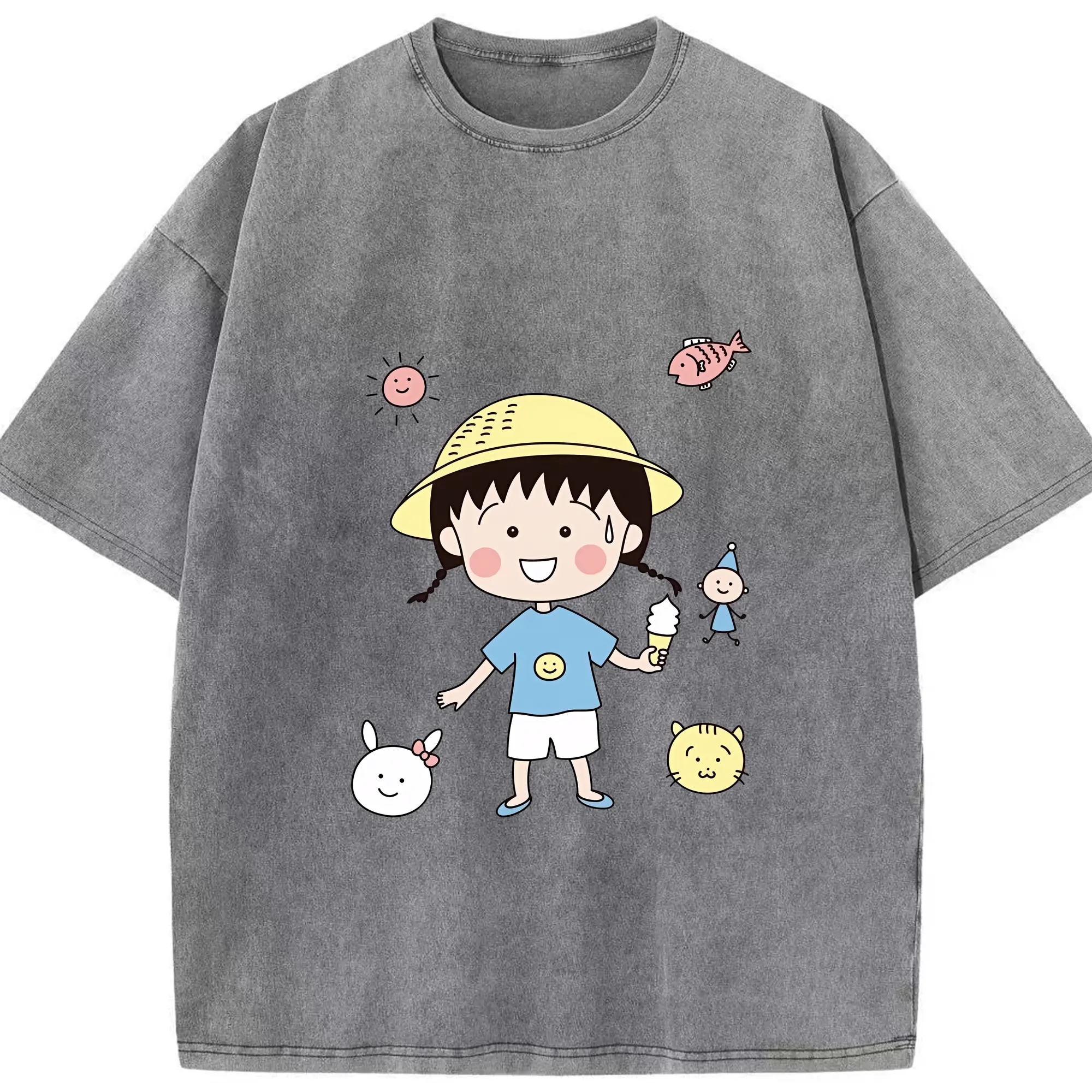 ちびまる子ちゃん グッズ さくら ももこ - 綿100% 半袖Tシャツ ・ フロントプリント ・ 快適 通気性 ・ 日常使い 散歩 スポーツ用