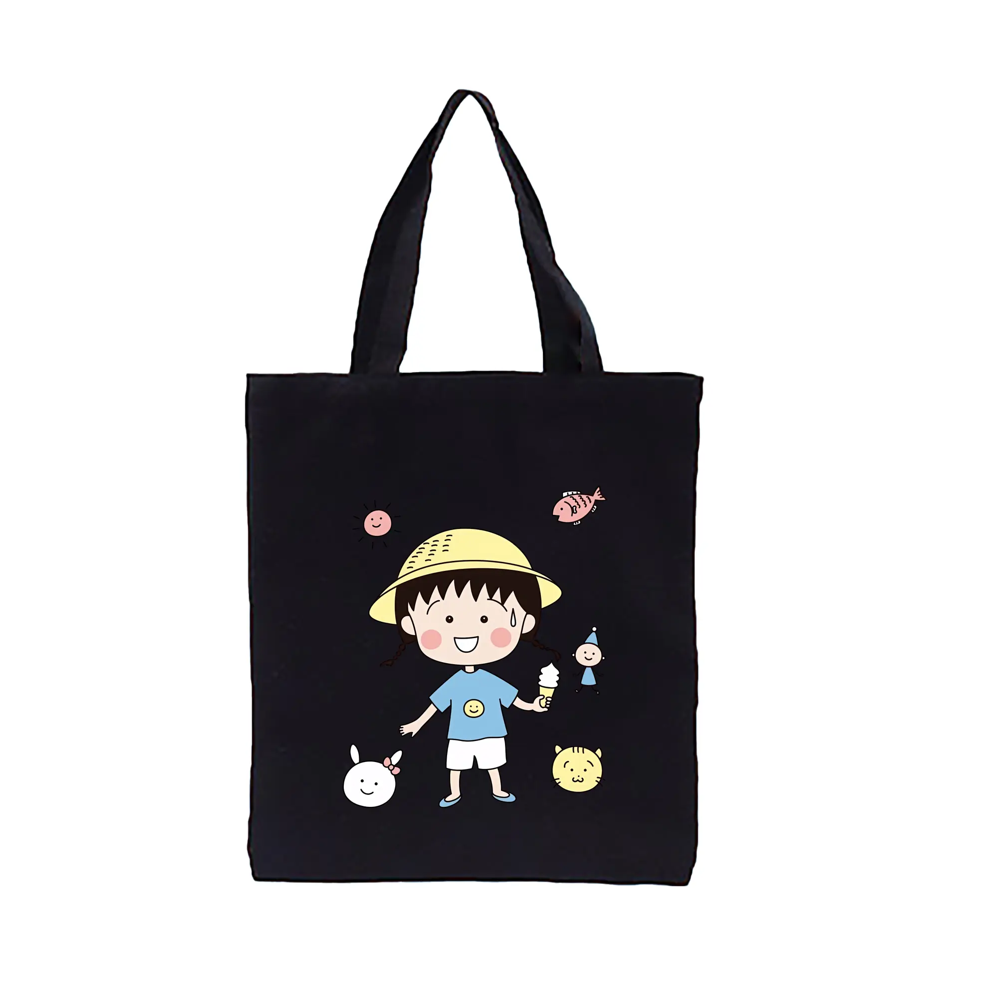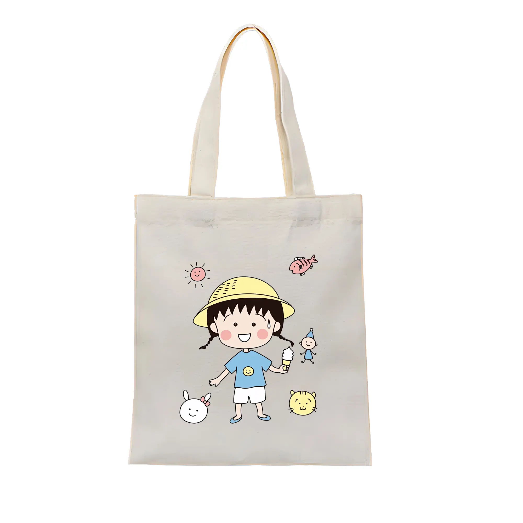 ちびまる子ちゃん グッズ さくら ももこ - 縦型キャンバス手提げバッグ(トートバッグ) ・ キャンバス素材 ・ ショッピング用 ・ 軽量 丈夫 お手入れ簡単