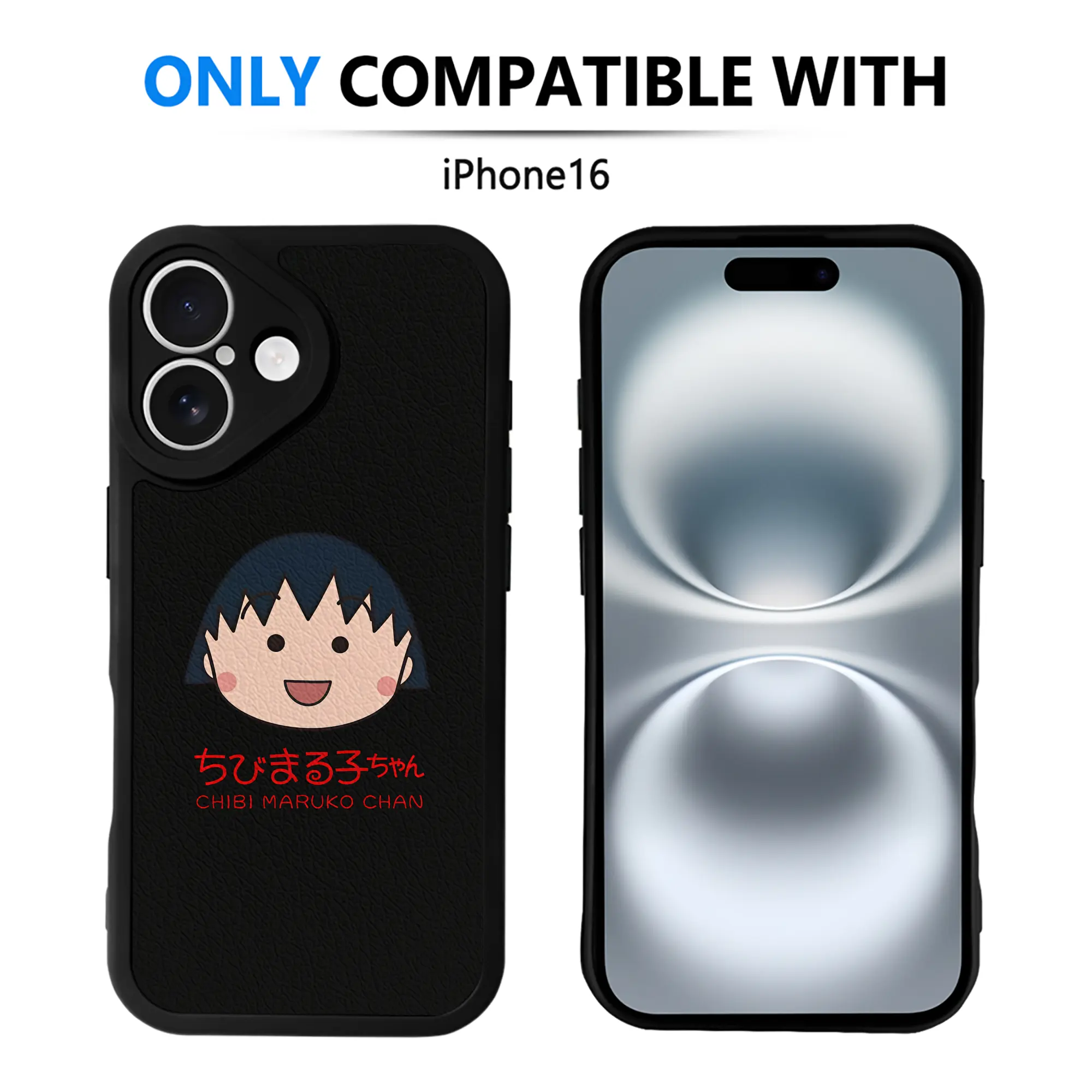 ちびまる子ちゃん グッズ さくら ももこ - IPhone 16シリーズ対応 ・ シリコンスマホケース ・ レザー調 ・ 高精度フィット ・ 耐衝撃 ・ ワイヤレス充電対応 ・ 精密カット