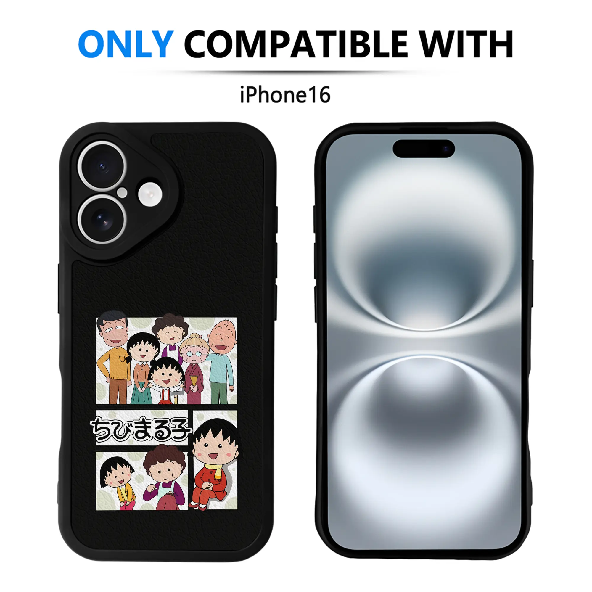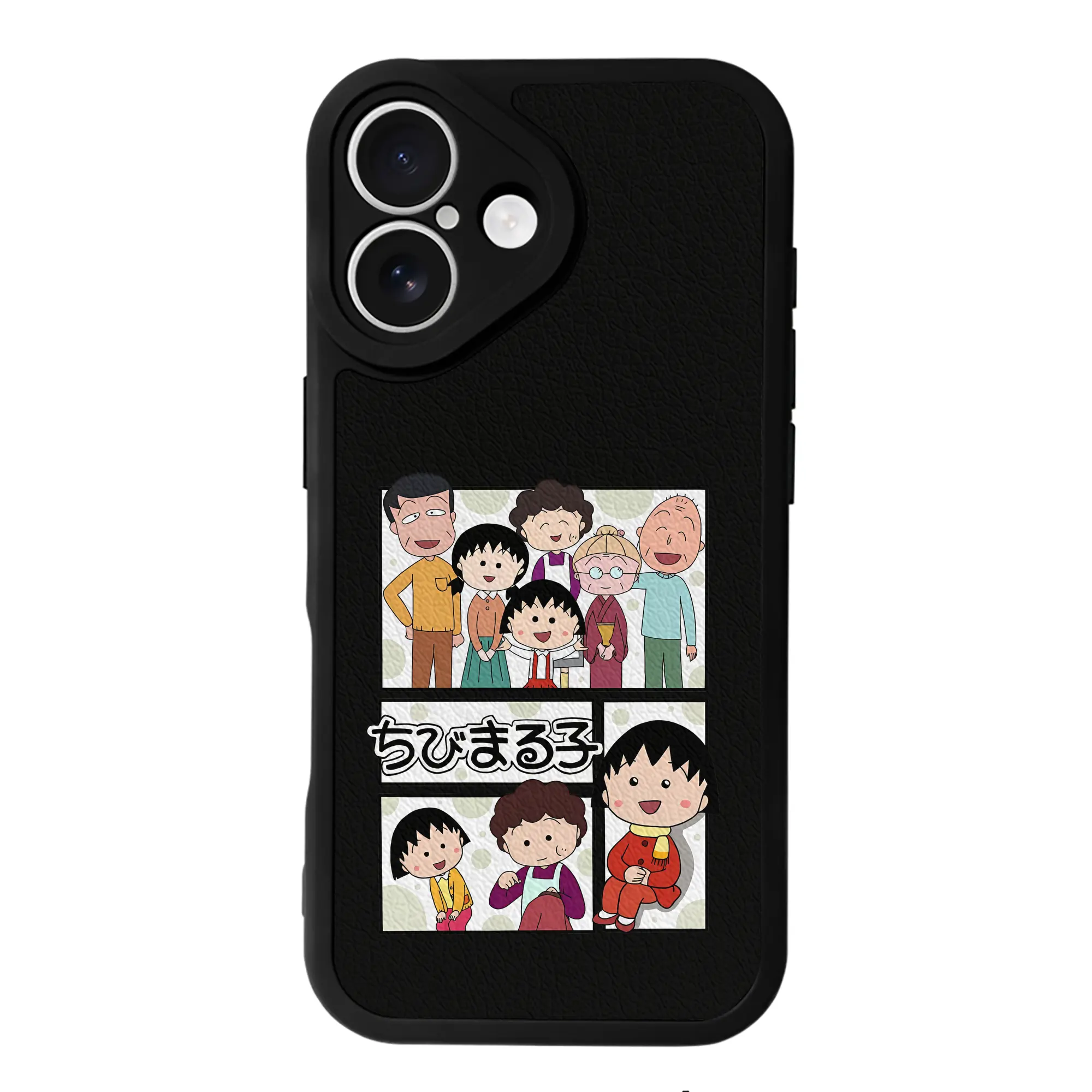 ちびまる子ちゃん グッズ さくら ももこ - IPhone 16シリーズ対応 ・ シリコンスマホケース ・ レザー調 ・ 高精度フィット ・ 耐衝撃 ・ ワイヤレス充電対応 ・ 精密カット