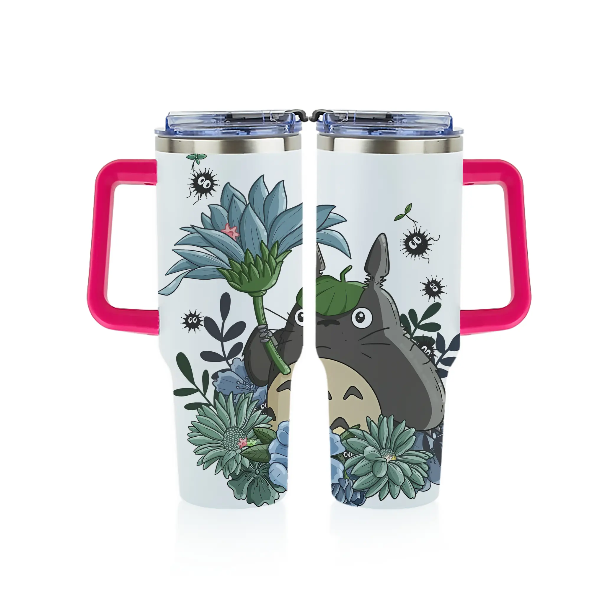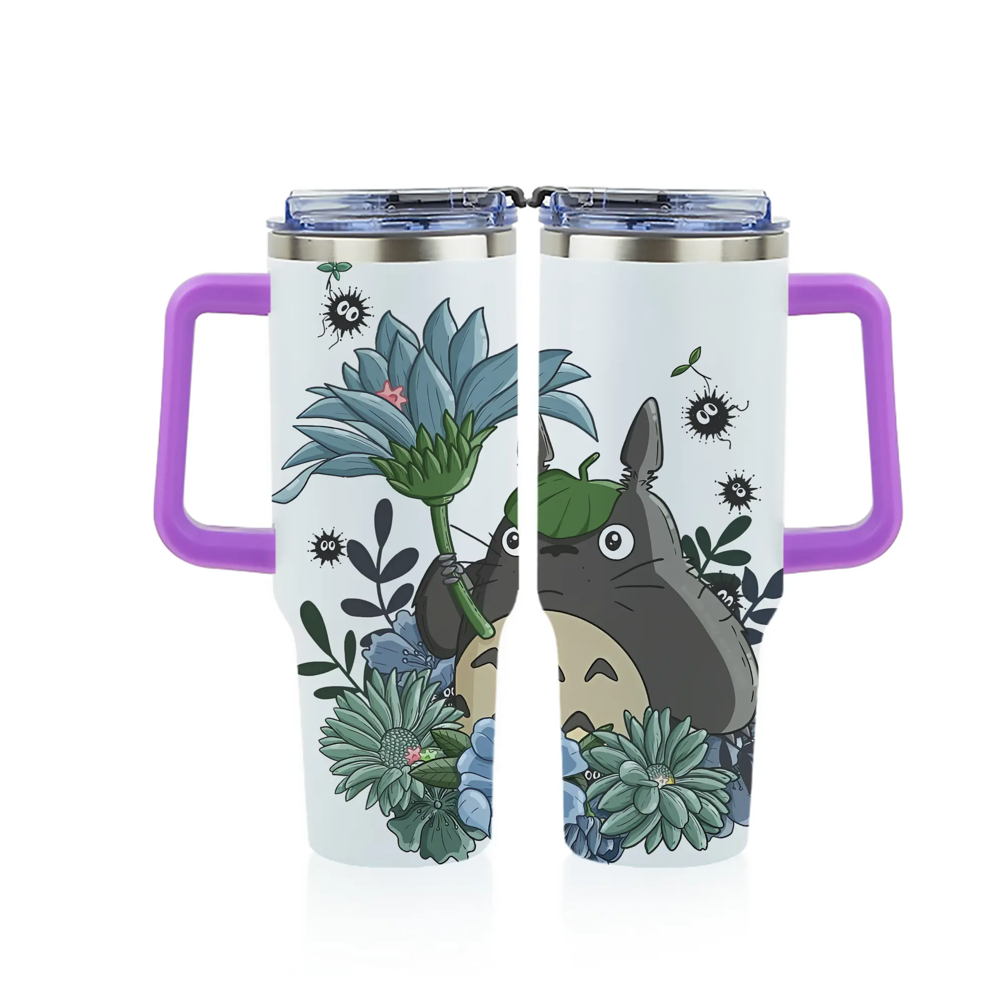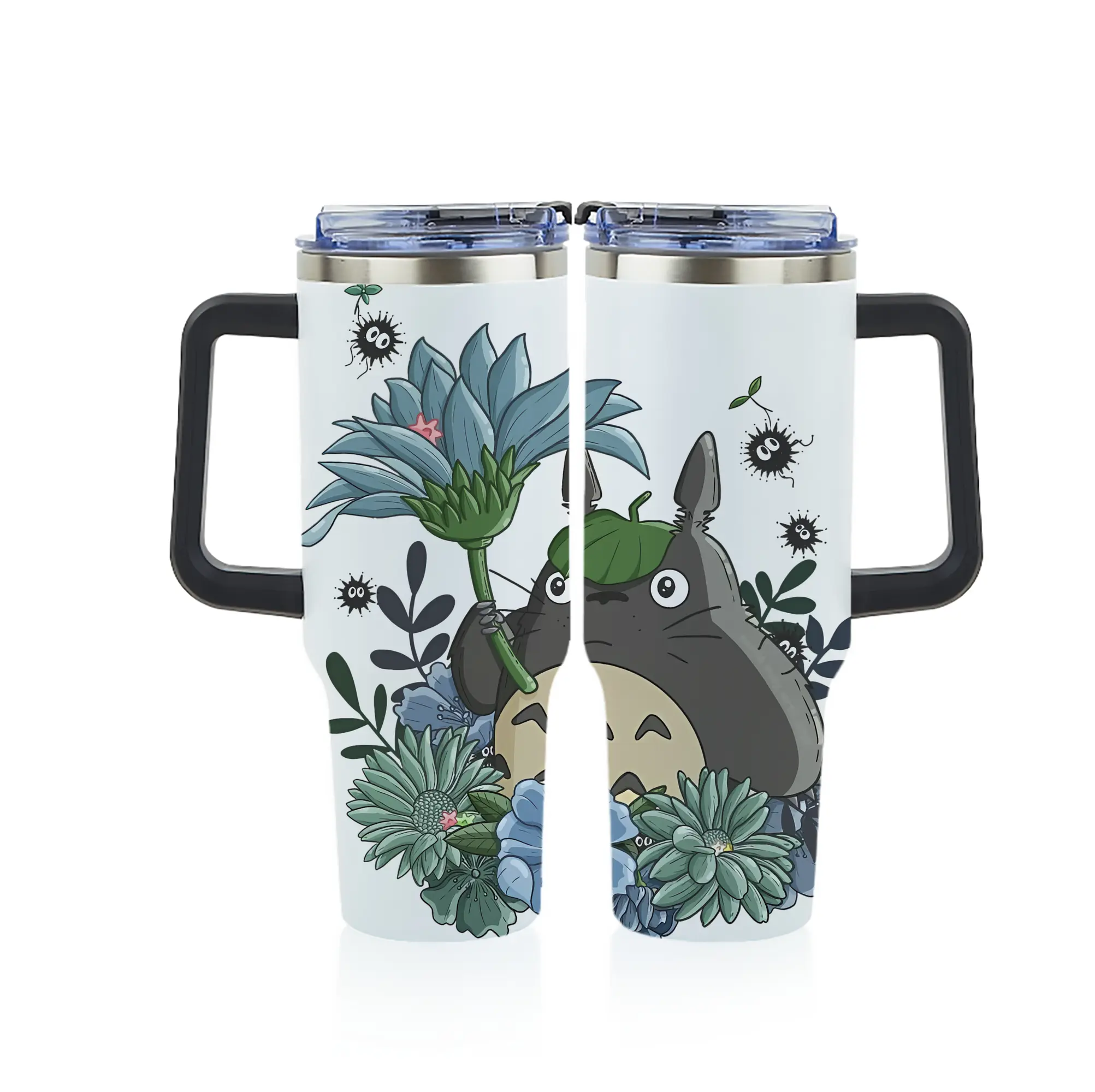 となりのトトロ グッズ トトロ - 1200mL フルプリント車用タンブラー ・ 304ステンレス 内側 ・ 201ステンレス 外側 ・ 保温 保冷 ・ 通勤 ドライブ アウトドア用