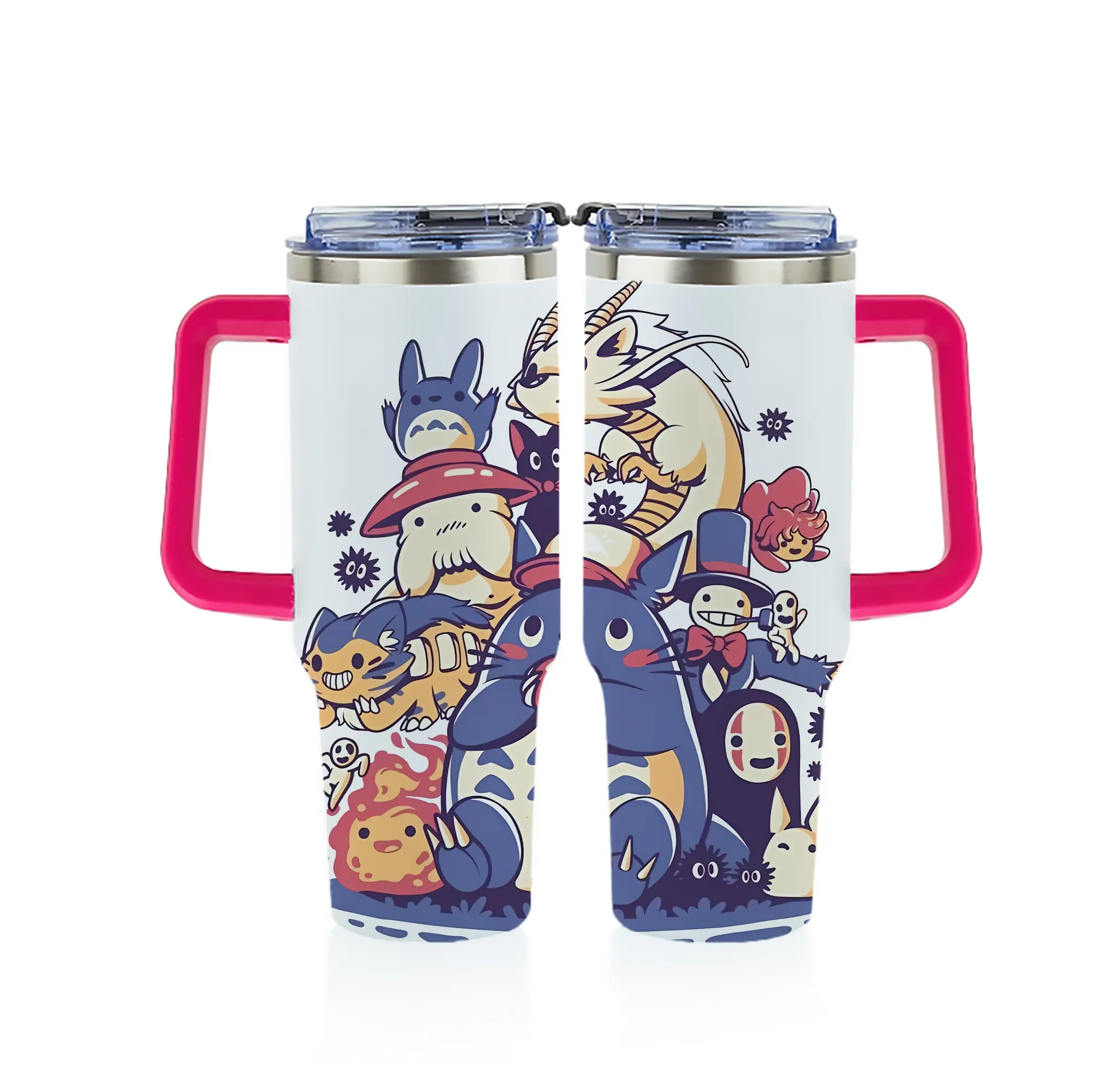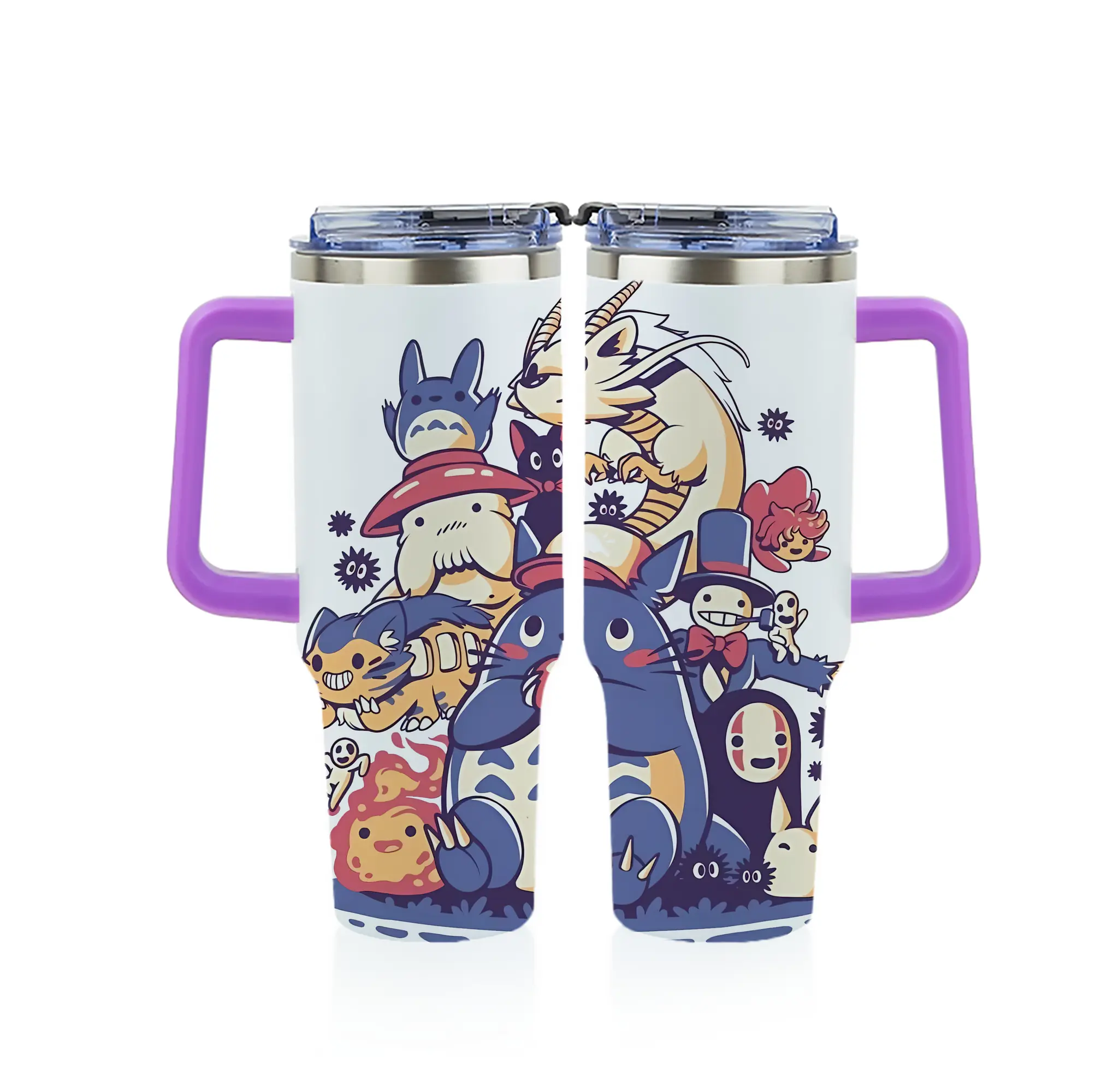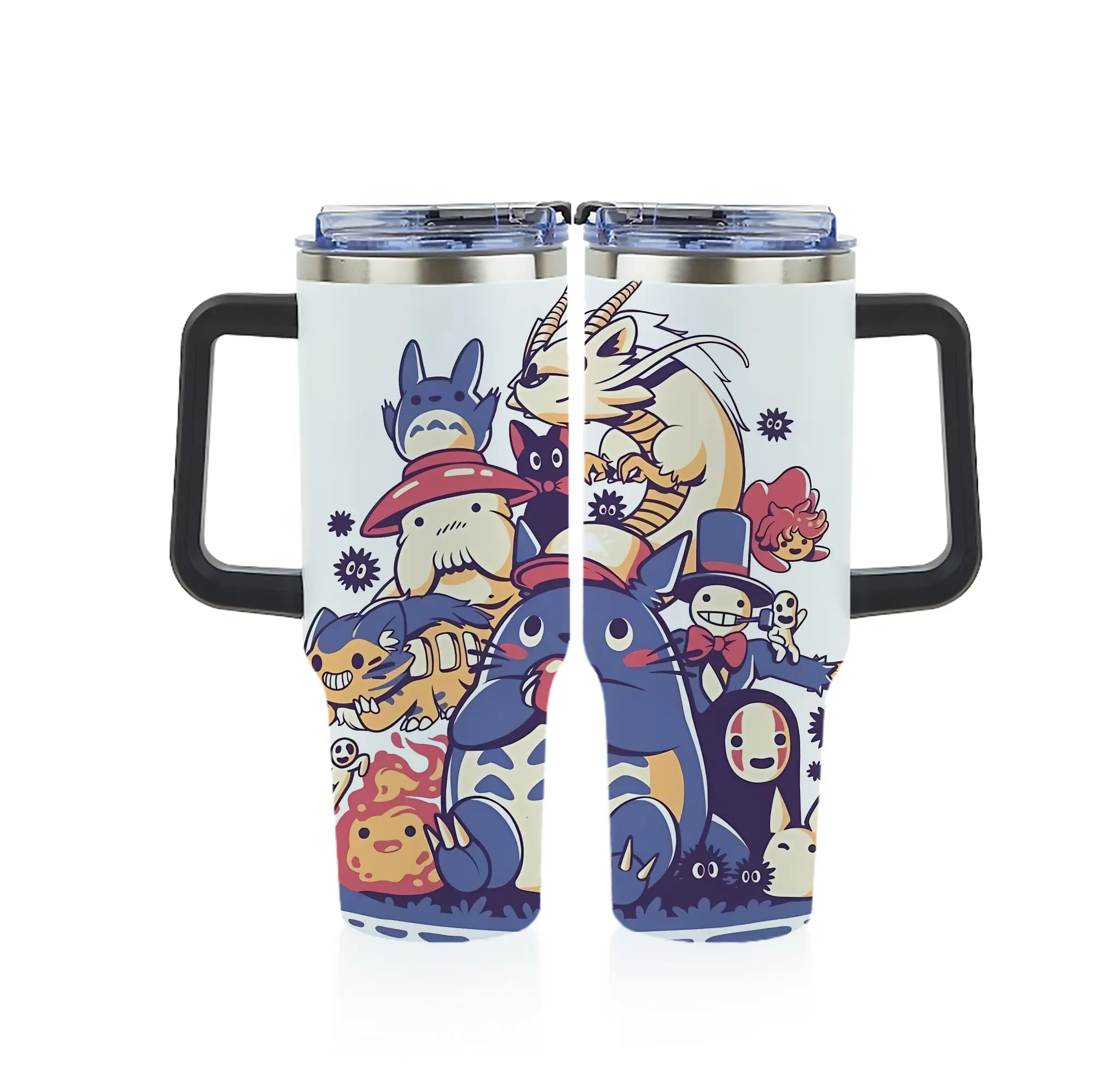 となりのトトロ グッズ トトロ - 1200mL フルプリント車用タンブラー ・ 304ステンレス 内側 ・ 201ステンレス 外側 ・ 保温 保冷 ・ 通勤 ドライブ アウトドア用
