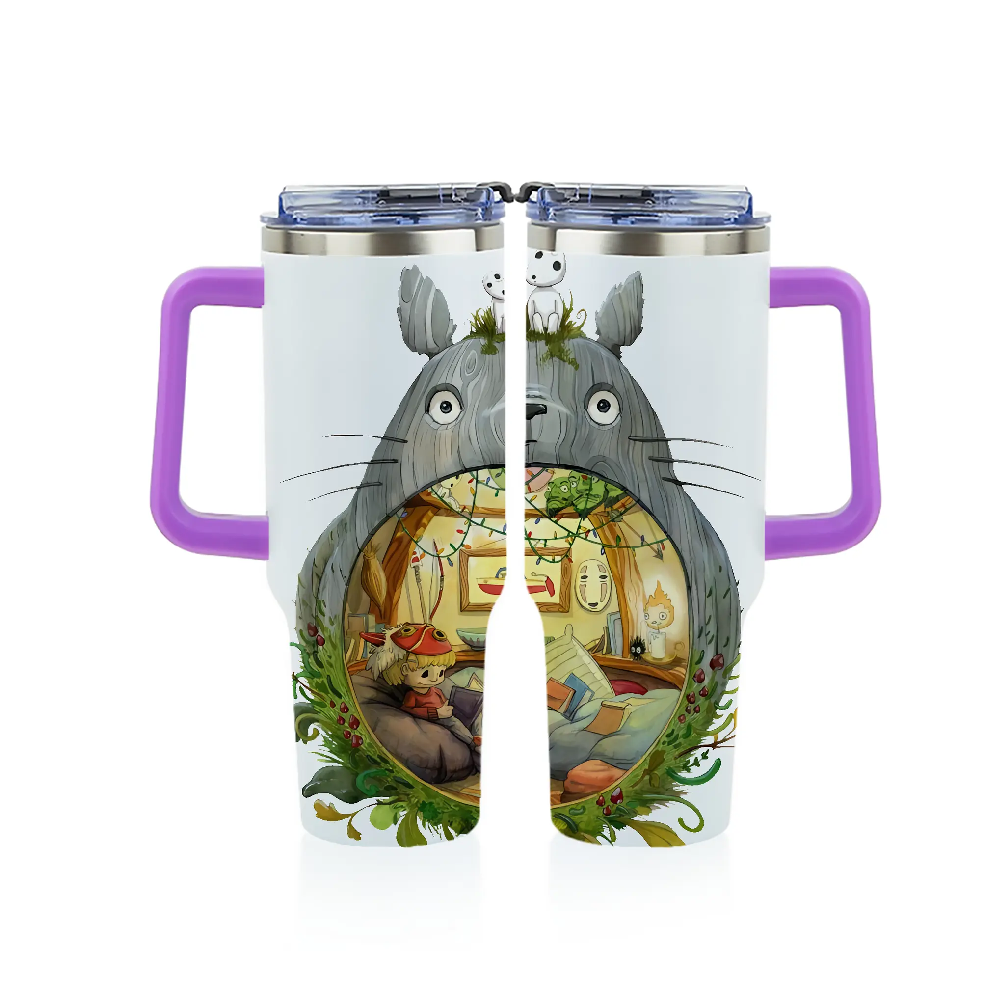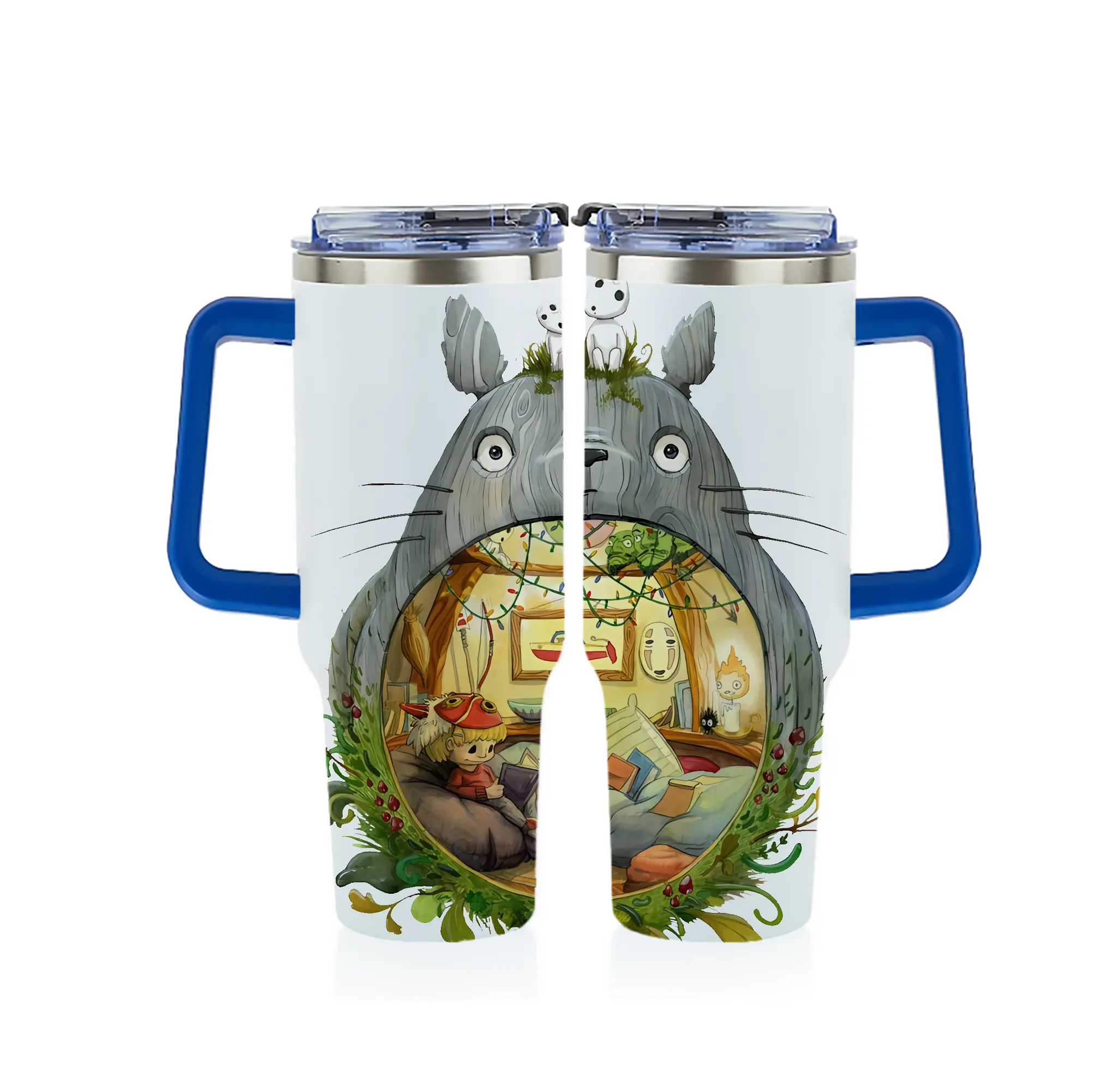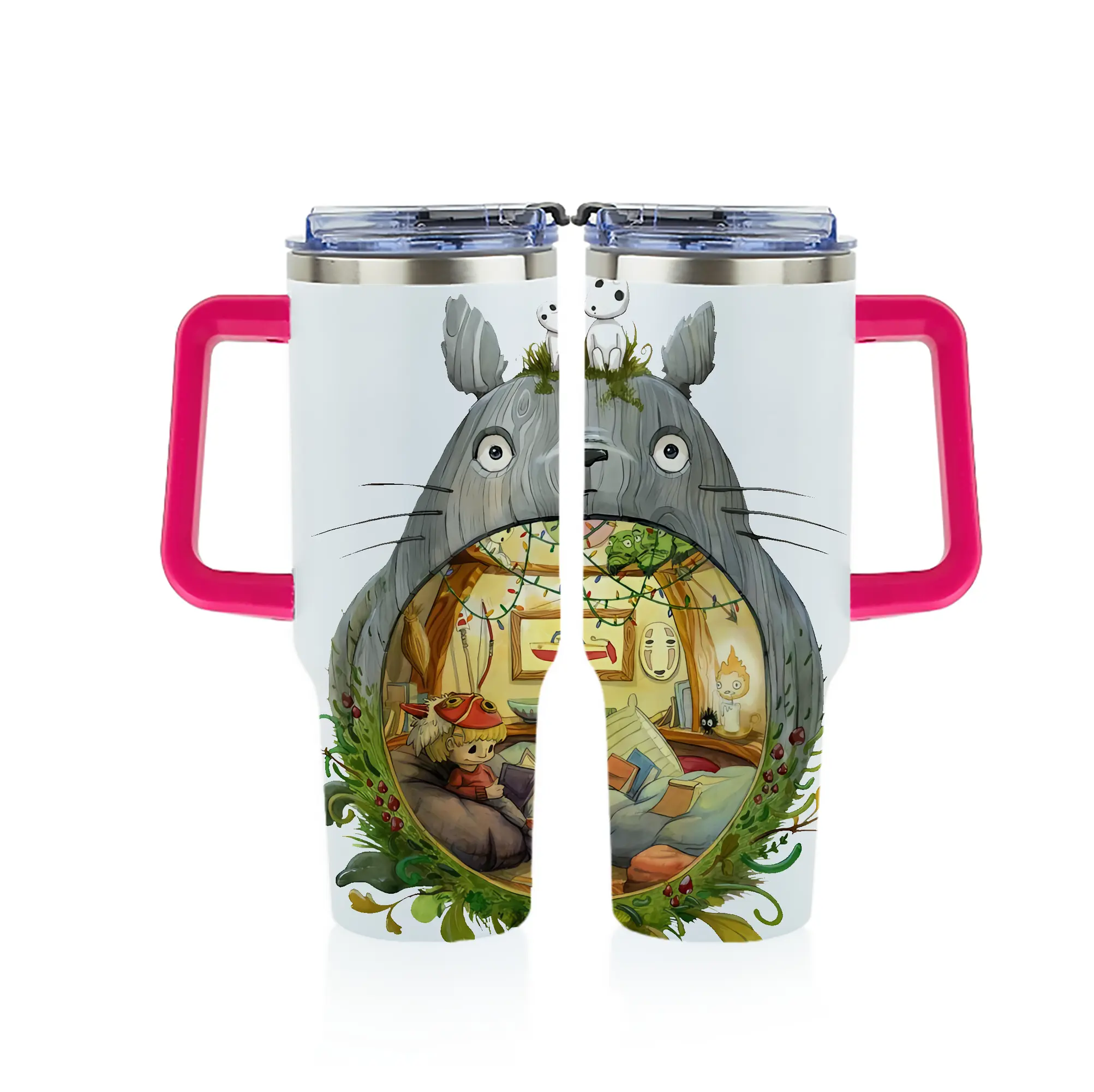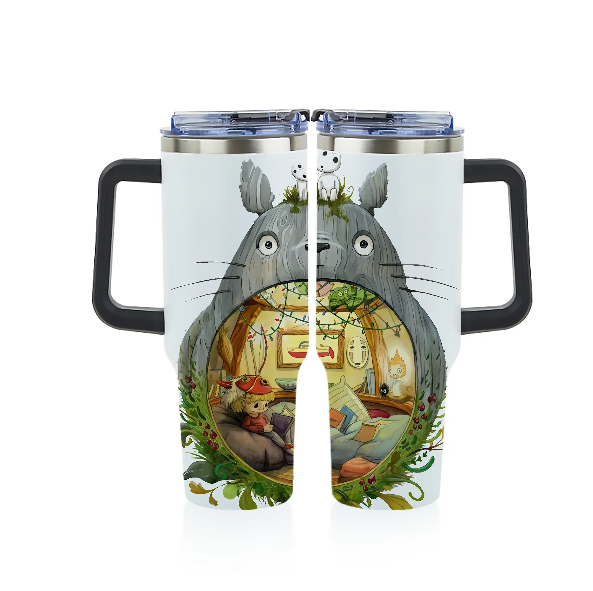 となりのトトロ グッズ トトロ - 1200mL フルプリント車用タンブラー ・ 304ステンレス 内側 ・ 201ステンレス 外側 ・ 保温 保冷 ・ 通勤 ドライブ アウトドア用