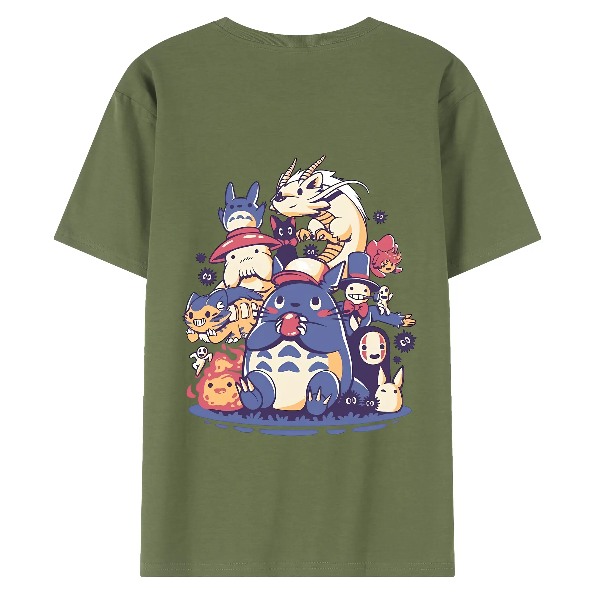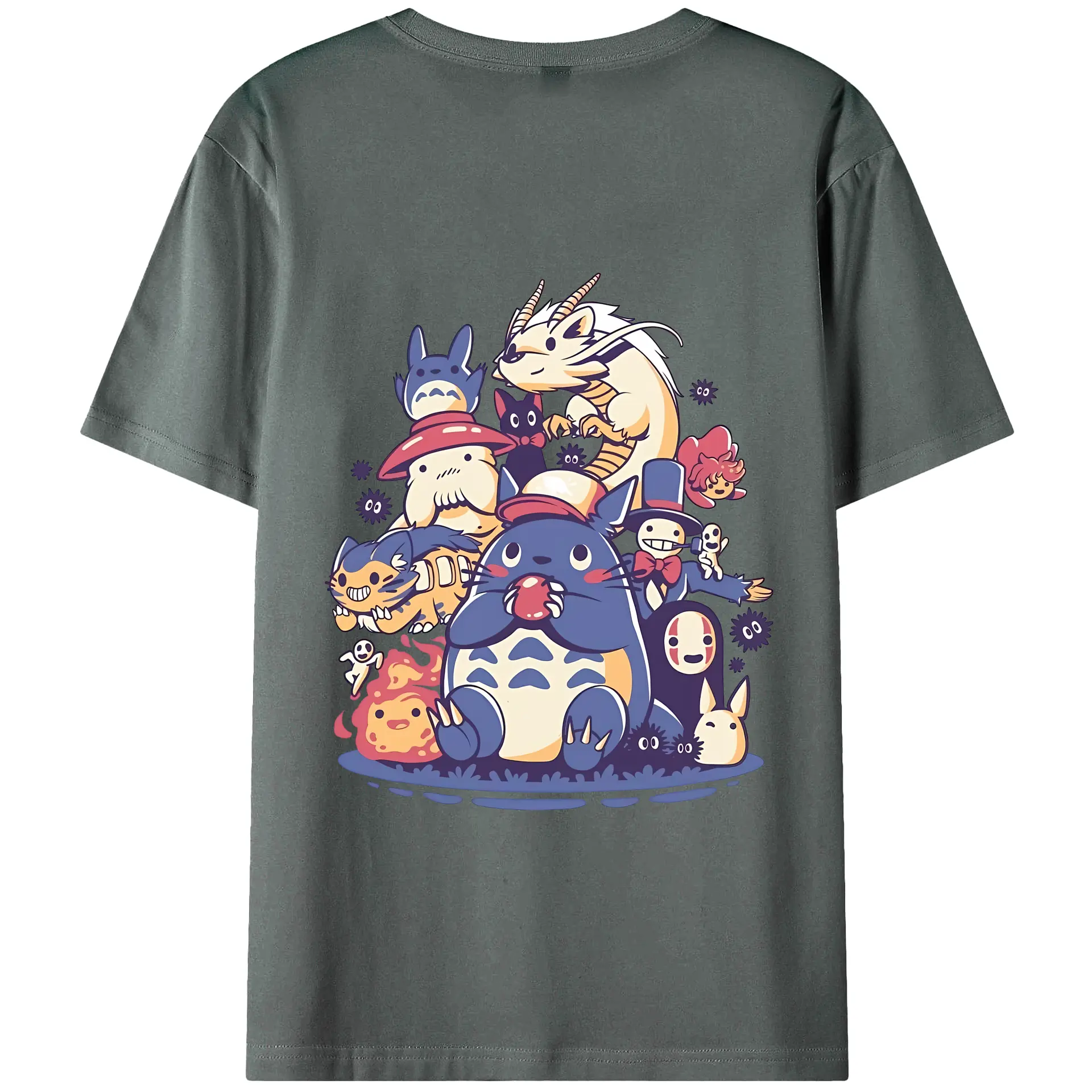 となりのトトロ グッズ トトロ - 綿100% 半袖Tシャツ ・ フロントプリント ・ 快適 通気性 ・ 日常使い 散歩 スポーツ用