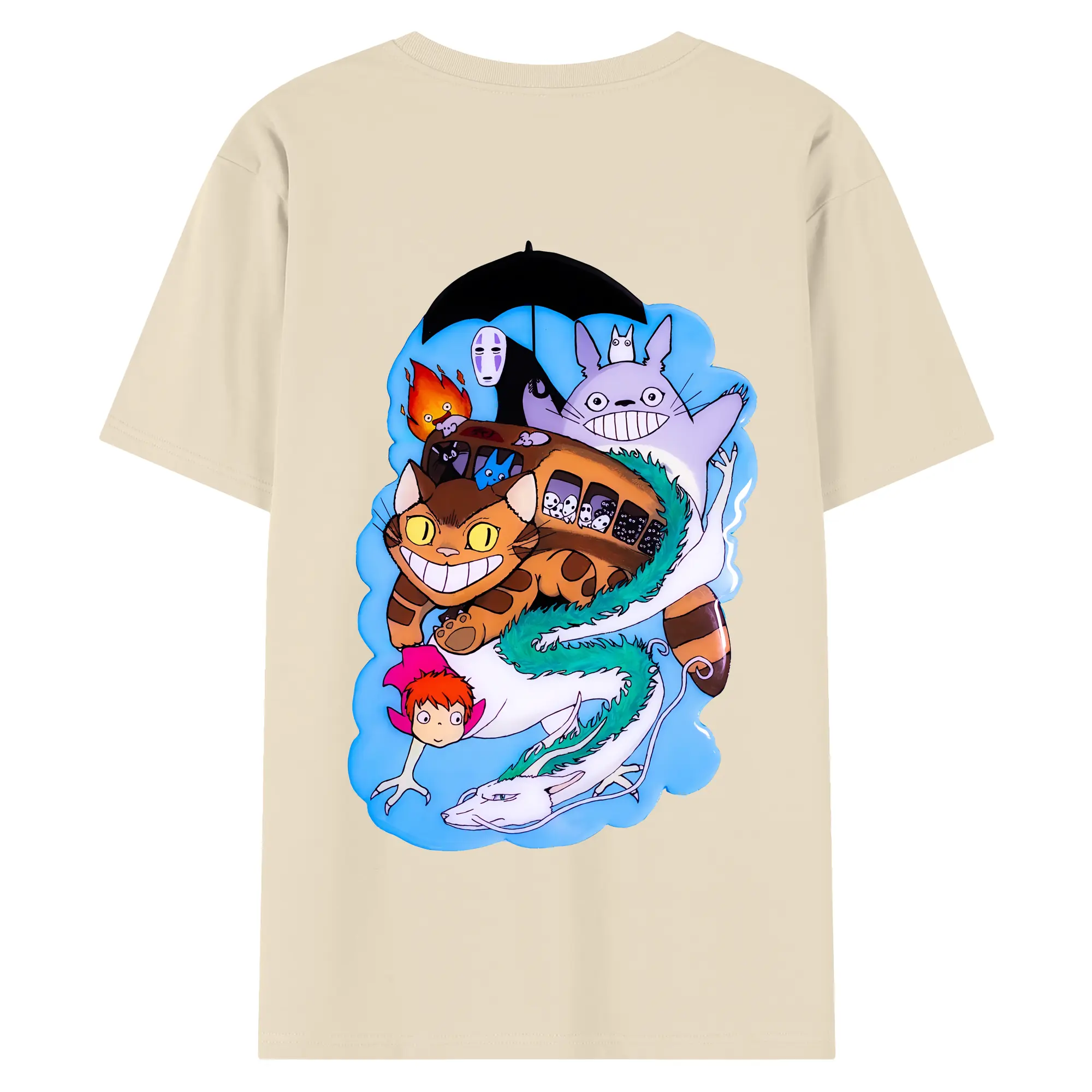 となりのトトロ グッズ トトロ - 綿100% 半袖Tシャツ ・ フロントプリント ・ 快適 通気性 ・ 日常使い 散歩 スポーツ用